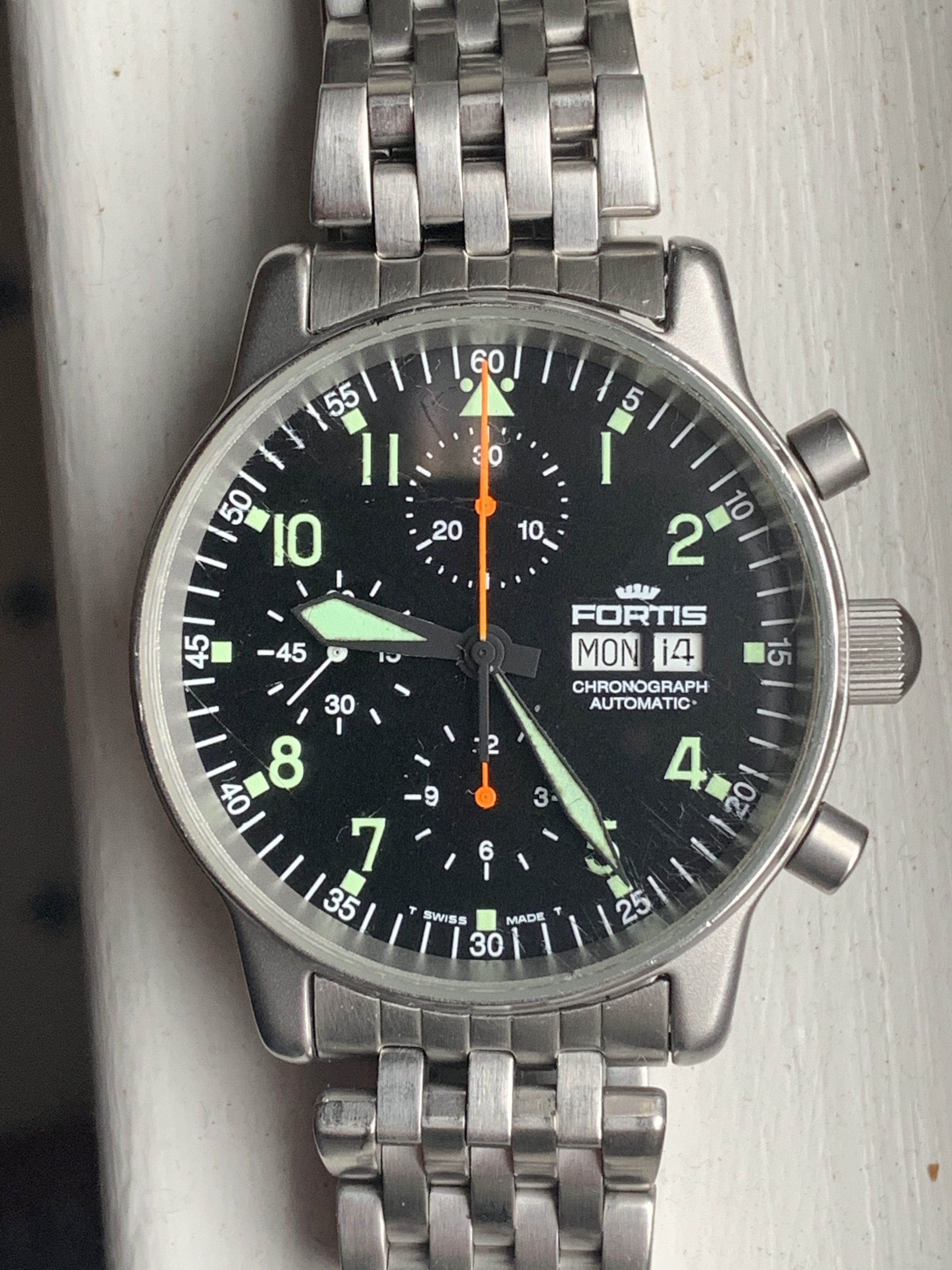 ·Thinking of selling a few of the watches I don't wear anymore. This one I don't have any idea of its value. It's an odd one, has the normal chronograph functions with date, but also has a 24hour GMT fourth dial that can be set separately. I believe that it is a Valjoux 7750 but not sure. Running and functioning but probably could use a service. Any idea of value with box and all paperwork including the chronometer certificate?