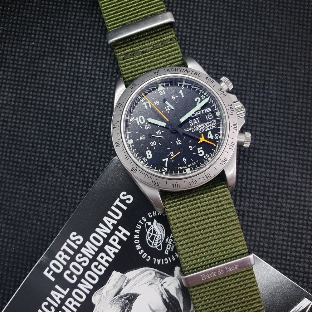 It comes with the Fortis manual, the military NATO and a black parachute elastic band as shown on the pics, and is located in France.