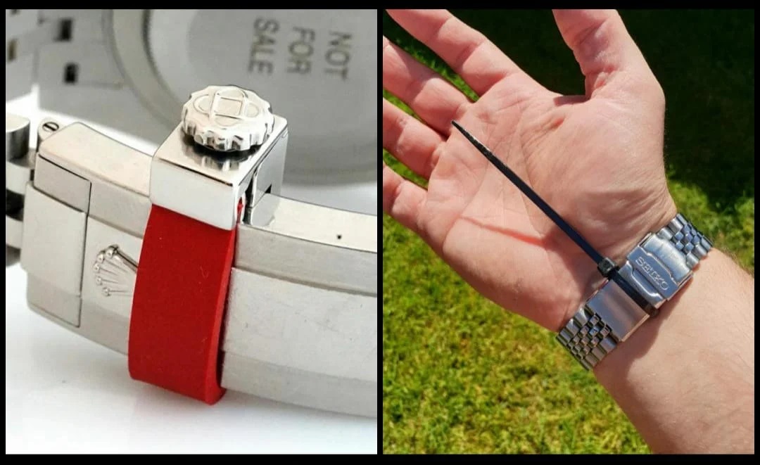 "I got one of these for my platinum daytona. Last week, a ruffian pulled a knife on me on the metro and demanded I hand it over. I stepped up to him, an inch away from his face, and said "It's locked to my wrist. What are you gonna do about it?" His lip quivered and his eyes teared up, before he dropped the knife and ran away. Everyone clapped, and that's how I met my wife."