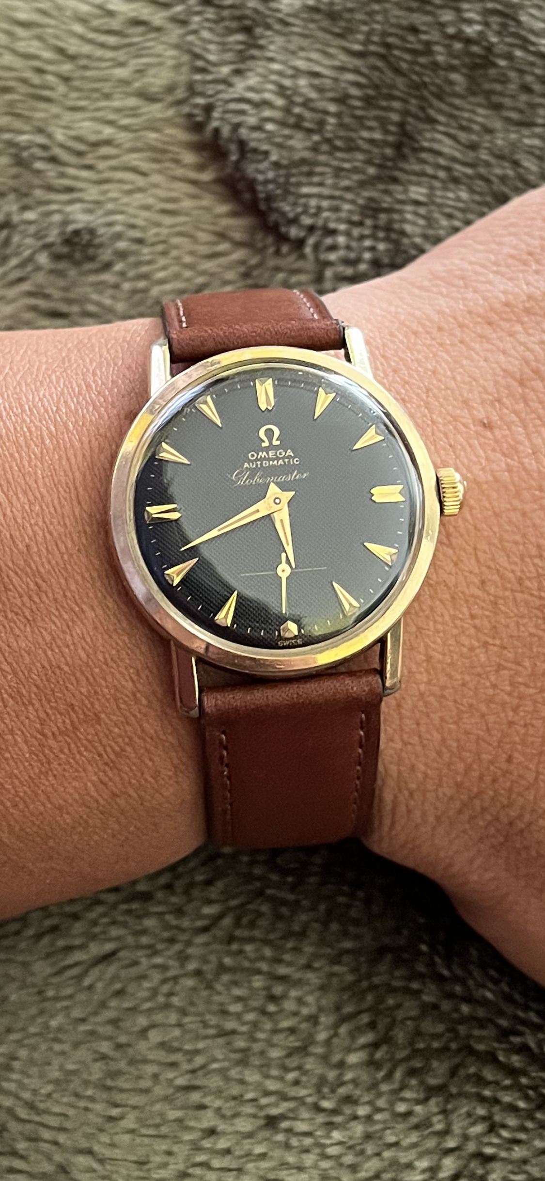 ·Most of the images of the 1950’s Globemaster’s on the internet have 3-6-9 numerals… I was fortunate enough to pick up this particular model sans numerals as in the one in the catalogue. These black waffle dials are really hard to take photos of by the way lol. Does anyone know the correct omega buckles that were used during this time? Thanks in advance! Happy Saturday!