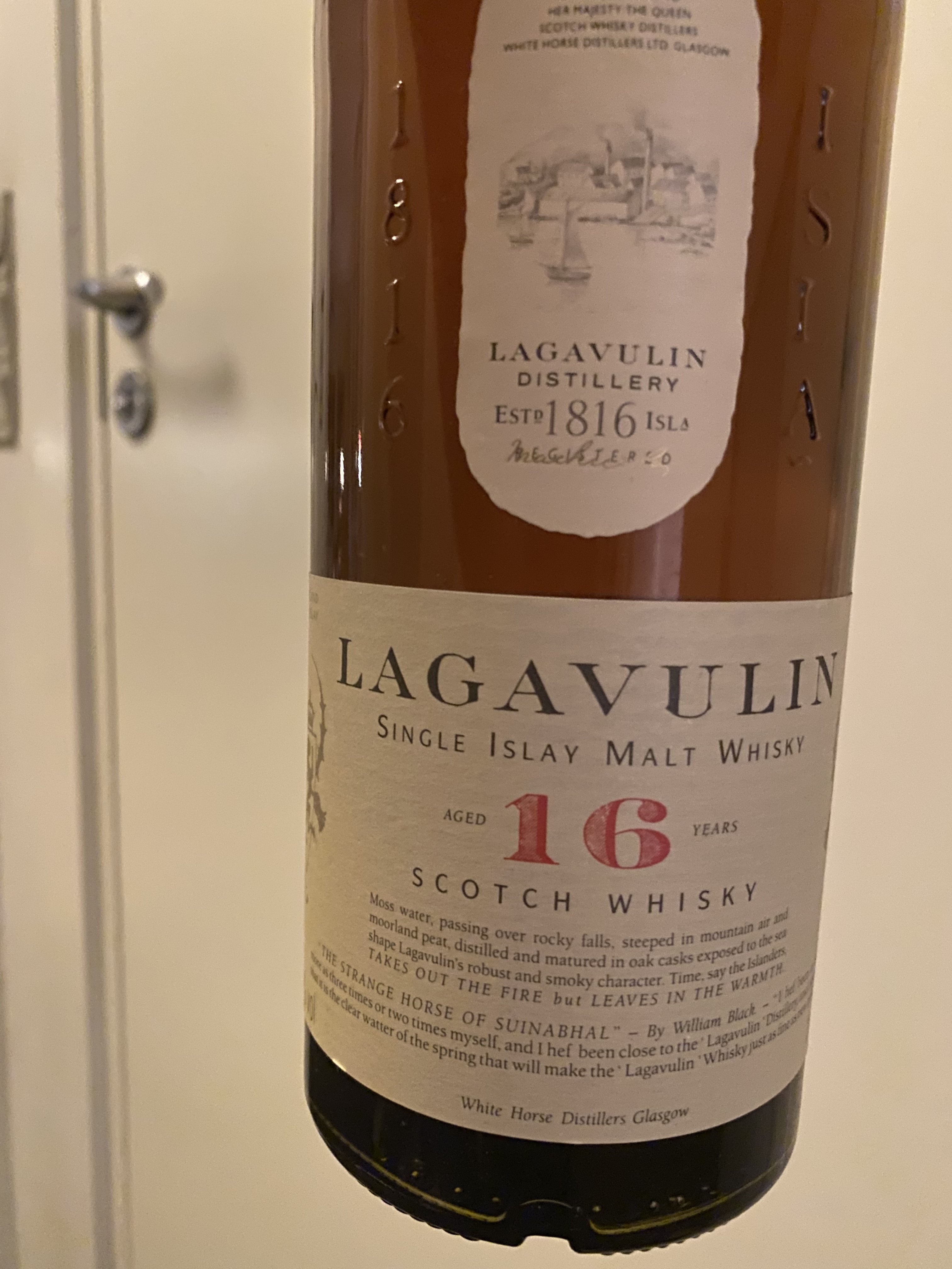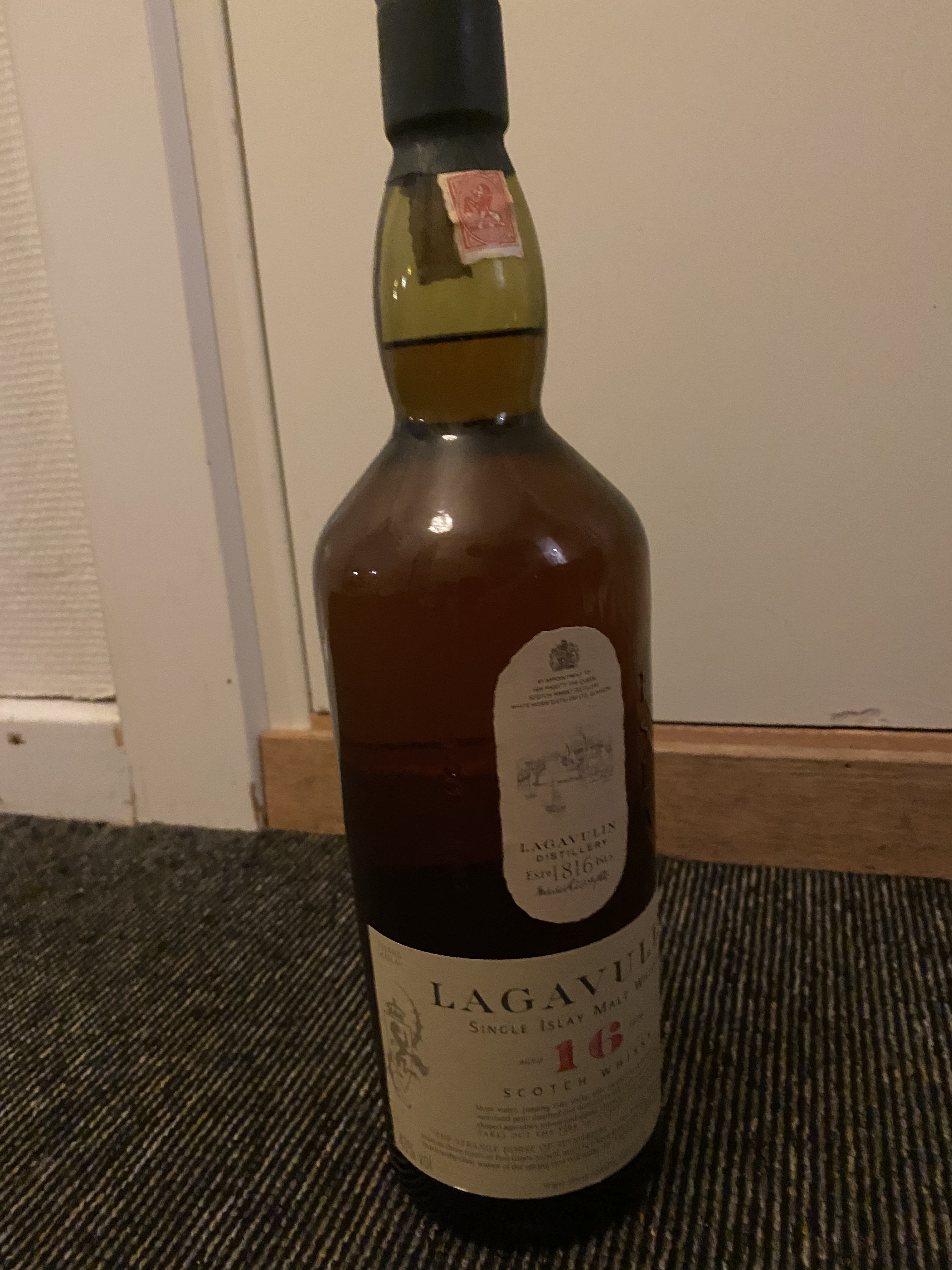 ··Wow! Custom title... coolI found a bottle of Lagavulin 16 years in my mother’s cellar. Back in 2002 or 2003 (or thereabout) I bought 20 or so bottles of single malt from a guy (an importer) delivering booze to where I worked after School. A lot of money back then but I got a good deal. Over the years I have either opened them myself or gifted them away.