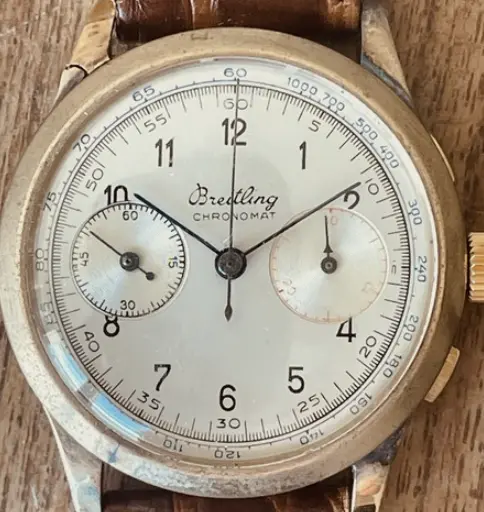I found this Breitling Chronomat for sale at 700€, I am not a Breitling specialist. I can't find if this is gold or gold plated. The Breitling crown and the back are missing. It is not working well and one of the lug is broken. There is a lot of work to be done on this watch but maybe it is worth. Sorry by advance for the low quality picture.