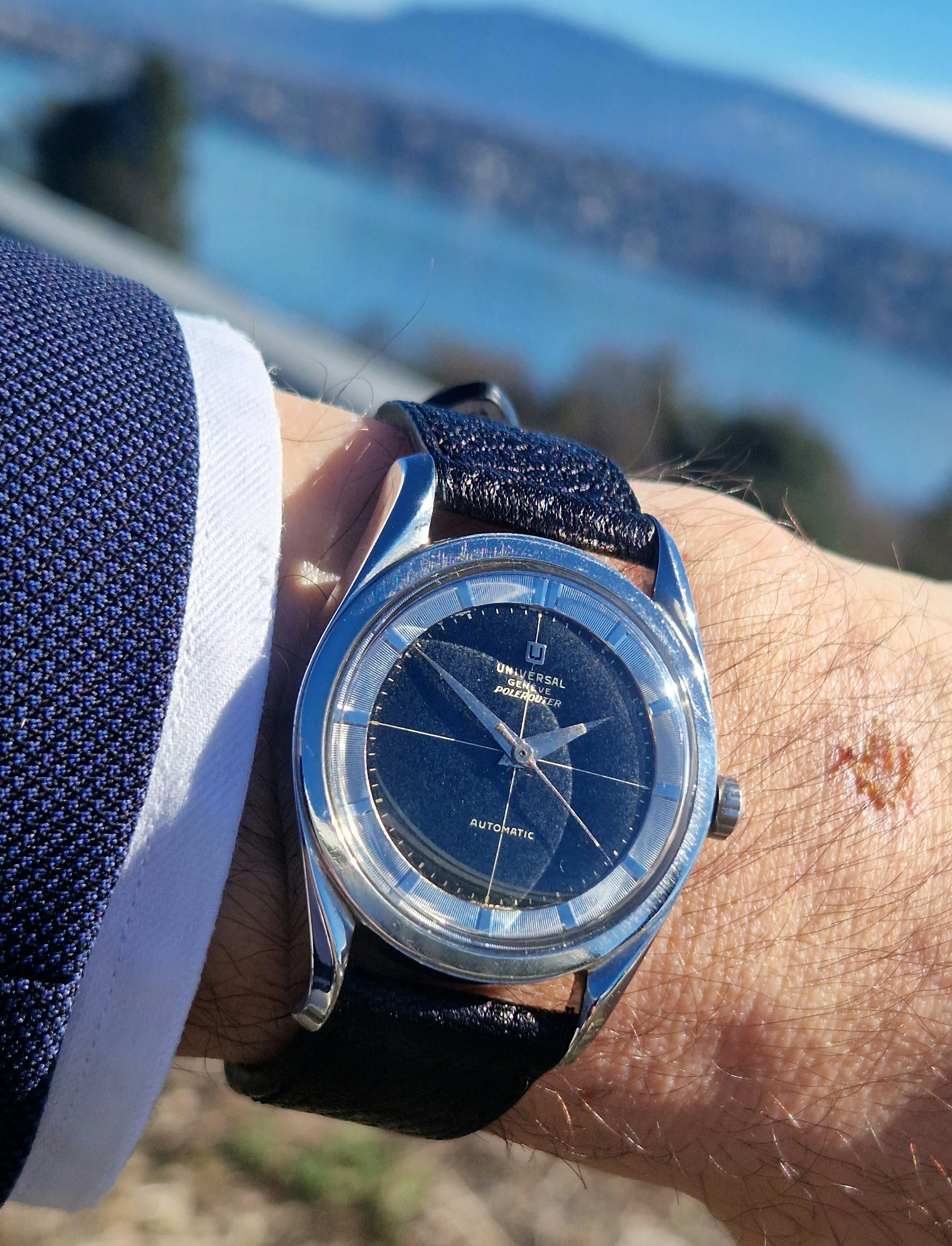 Looking for a "classic" Universal Polerouter (or Polarouter) in steel, without lume (!), without date and black dial, twisted lugs. E.g. reference 20217-1, but can be any with the above criteria. No preference between bumper or microtor movement.