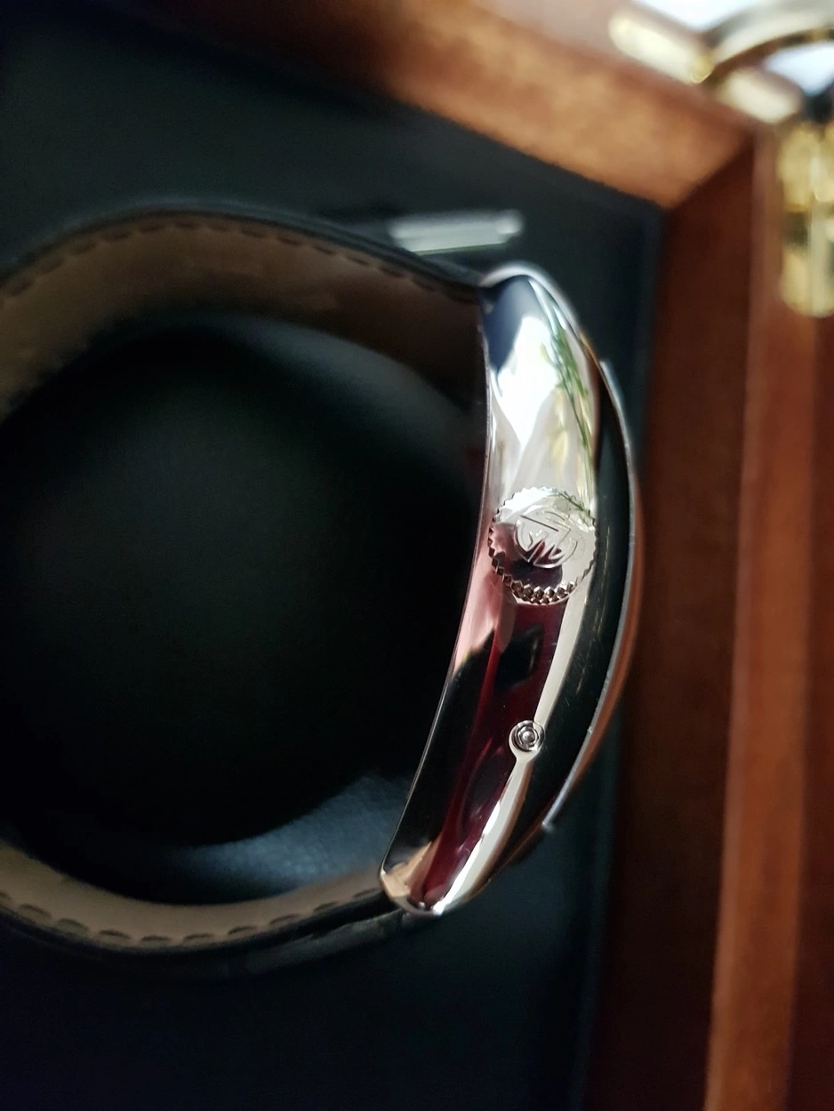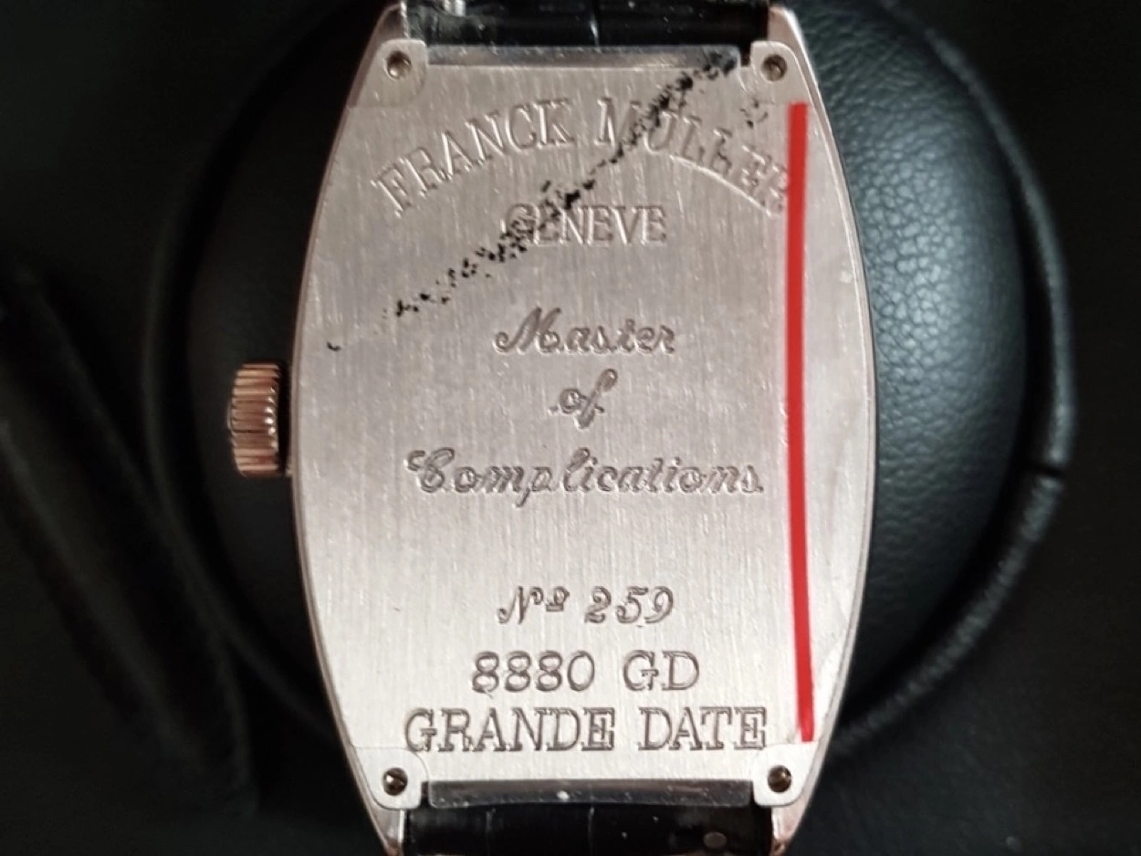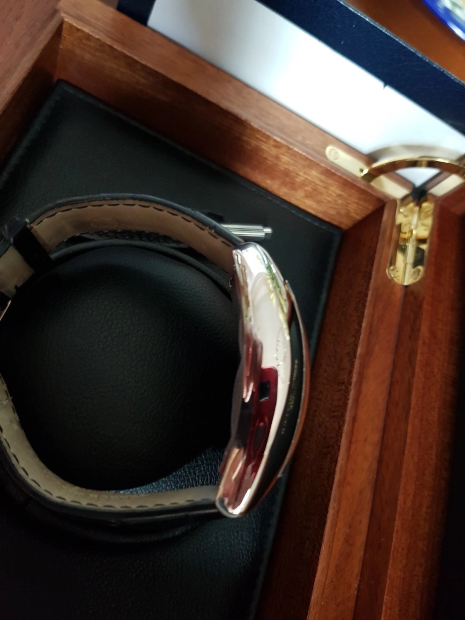 Up for sale is my Franck Muller 8880 Grande Date DG in solid white gold. Asking £9,999 Or best Offer. I am the second owner; the watch was originally purchased from a Franck Muller AD 2011. The watch is in excellent condition, worn minimally and always stored properly. This model features Franck Muller’s iconic tonneau-shaped curvex case. Contains an automatic movement, platinum rotor segment, fine guilloché black dial, retrograde week days indication with red tipped hand, months combined with constant seconds and big date, outer rail track, polished bezel, case back secured by 4 screws, case, dial and movement signed, with an 18k white gold Franck Muller buckle. Comes as a full set with Franck Muller boxes, warranty papers, user manual, pusher stylus and pouch along with 2023 full Franck Muller service record. Franck Muller watches of this area are fast becoming collectible due to their horology, crafstmanship and interesting design language. Stored in a PELI 1450 watertight case (not included) in a temperature-controlled room and routinely wound to keep the movement active.