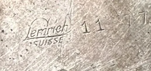 There is a serial (19367, several revisions signatures (e.g., “Picconcelli” with a handwriting that is clearly traceable to the 1940s-50s, “Filli” with a more modern handwriting, and the dates “1962” and “11 55”) strangely in Italian (the watch is from Japan!) and a logo (“L & Co”) on which I had AI do a variety of research, getting conflicting answers. I was told that the logo could be Lemrich & Cie or Jean Singer & Cie, but their logos appear to be different.
