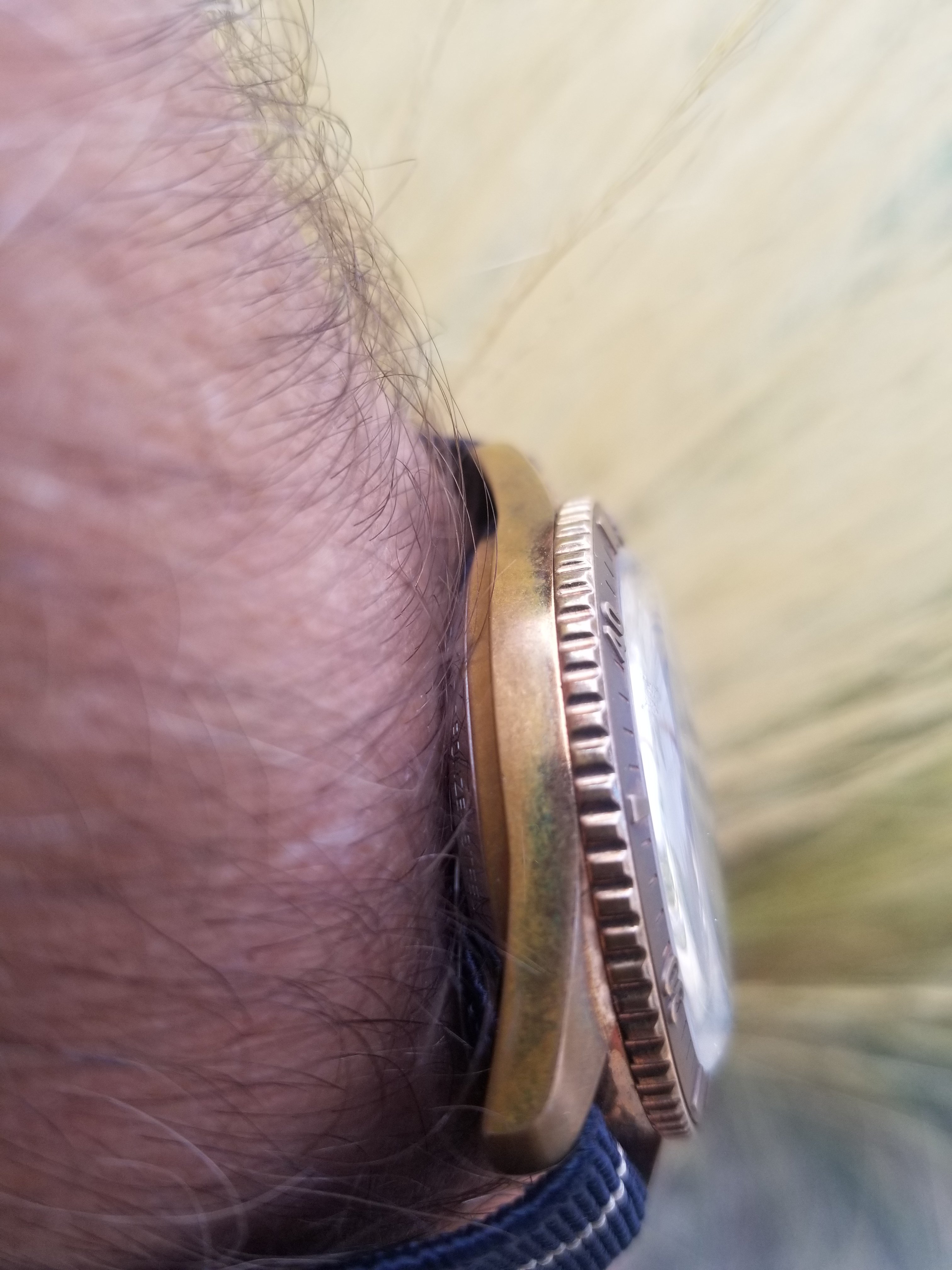 Keep the updates coming. I like the watch, very nice to see it age naturally. I have no idea where the previous comment about bronze patina being fake came from.