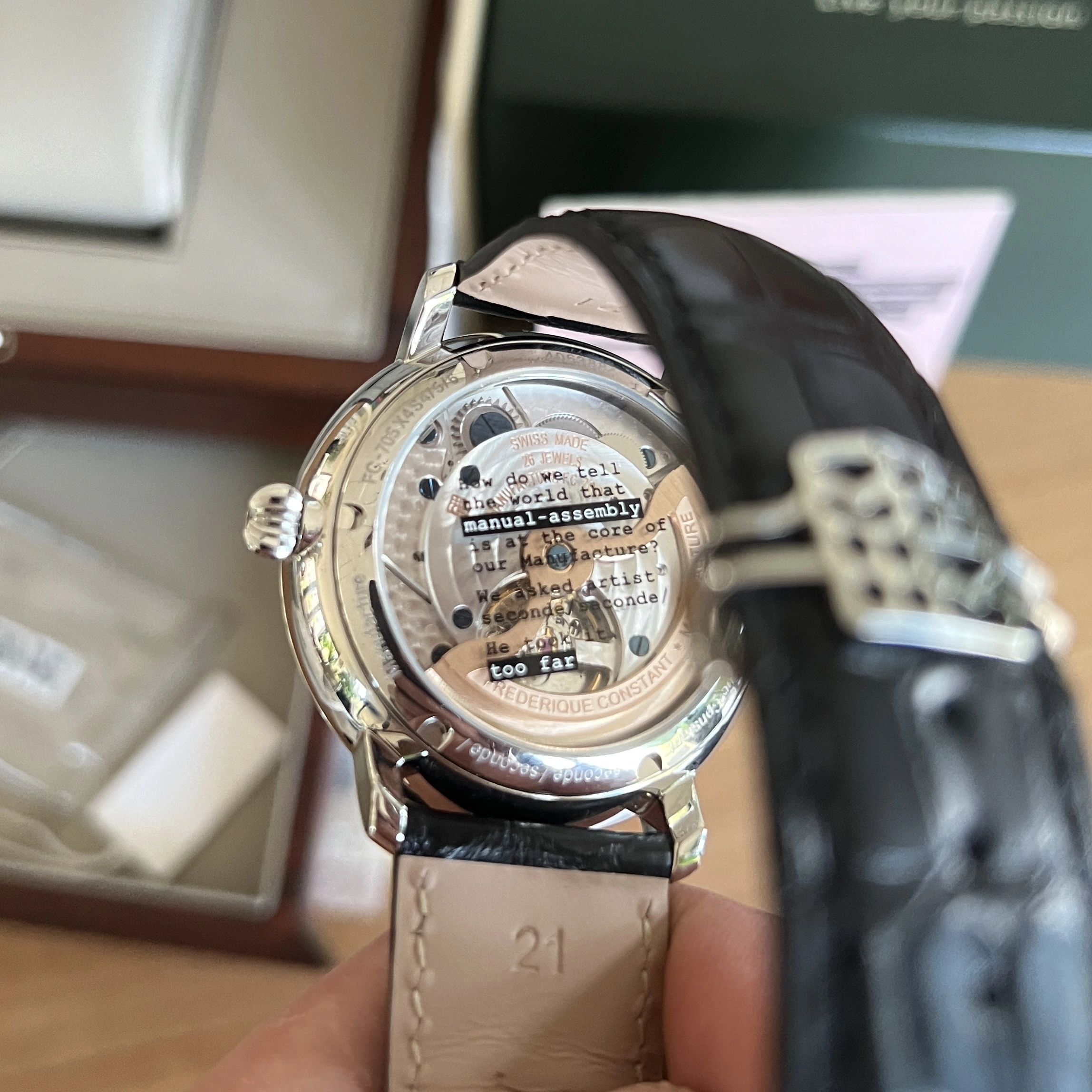 For sale an as new Limited Edition Frederique Constant Slimline Moonphase, made in collaboration with artist seconde/seconde/. This very rare series sold out prior to its release and I was very fortunate to obtain one. It's much, much more special than just a different dial colour. There's a lot to unpack here... 😉 It's just a bit too big for me to enjoy wearing it and consequently sits in the box. Which is a pity. It's worthy of a lot more love than I'm giving it, so I'm passing it on.