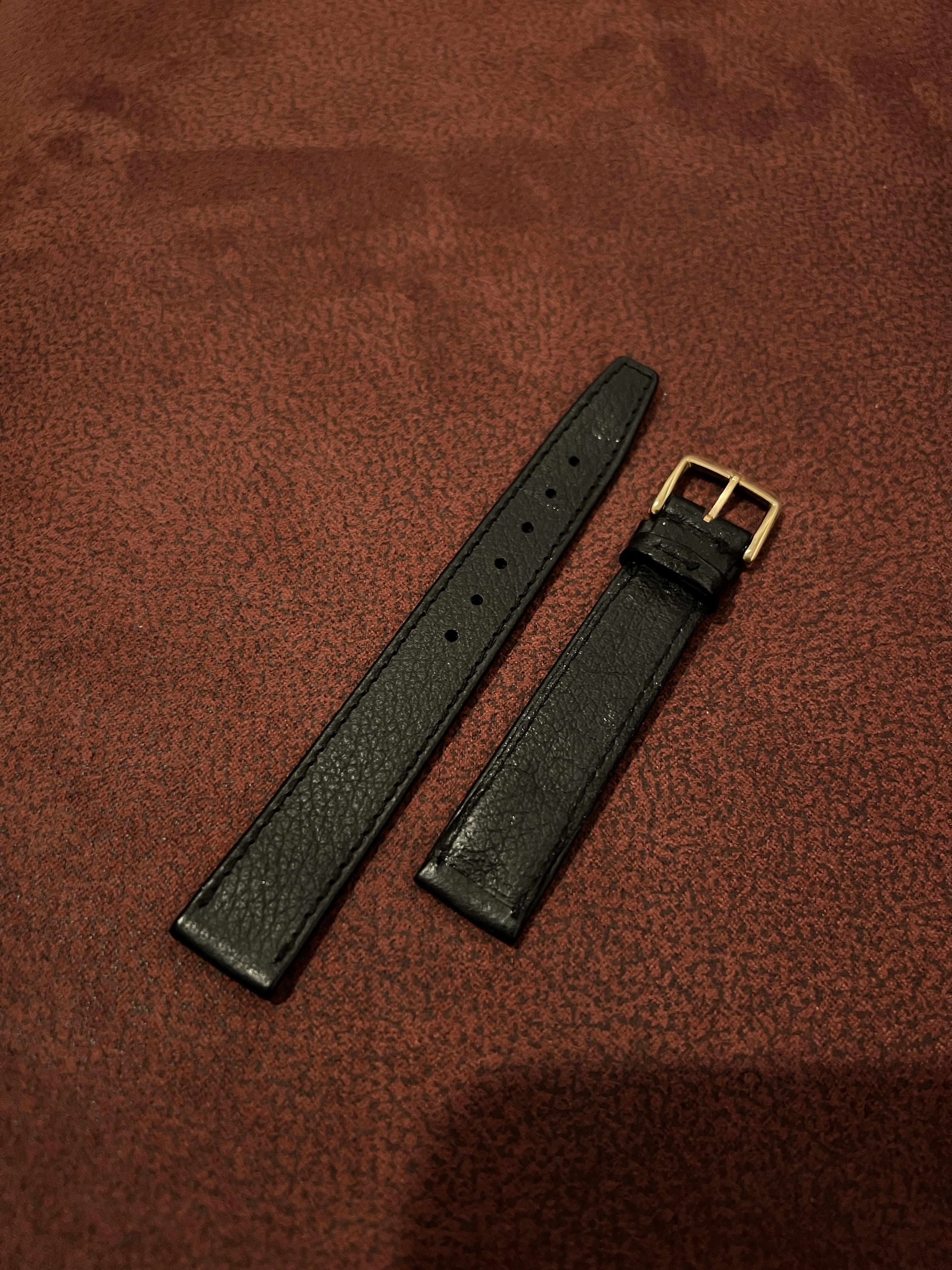 It's for 16mm lug width, the buckle is 14mm, black leather. I know we do have a couple female collectors around here, if one of you sees this and has use for the strap just reach out.