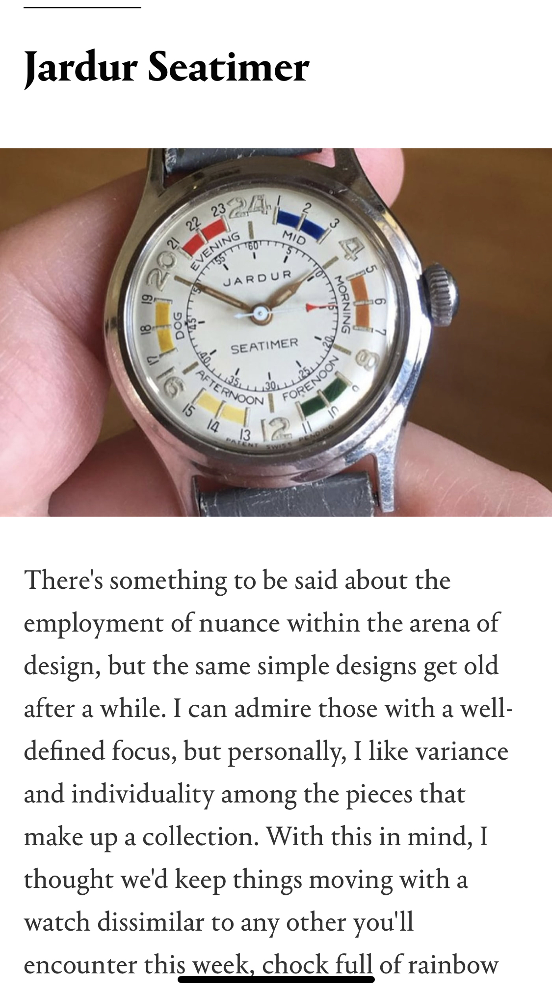 Love the one-piece strap on that LeJour(correction- whatever that sassy polychrome watch is) 😉