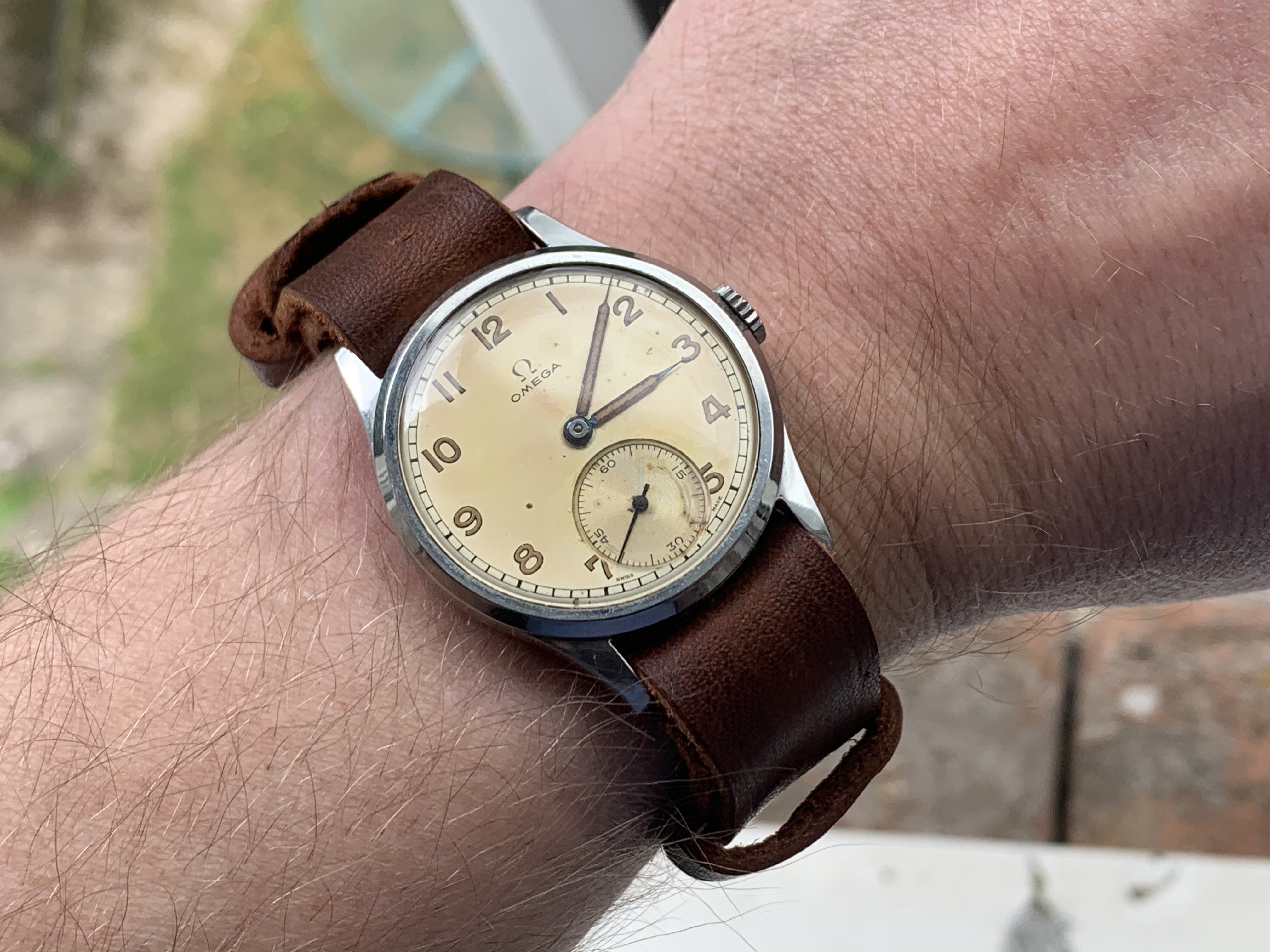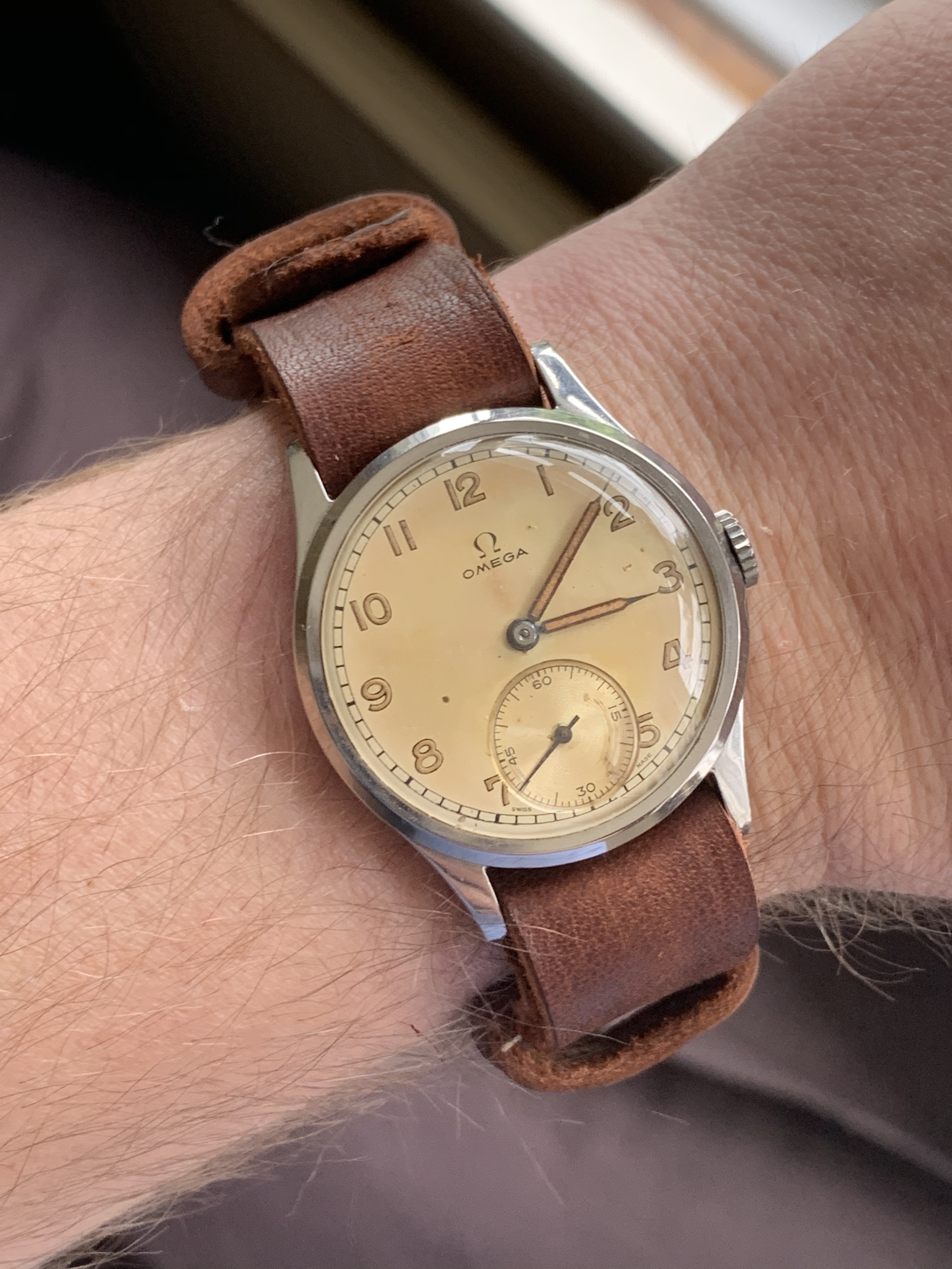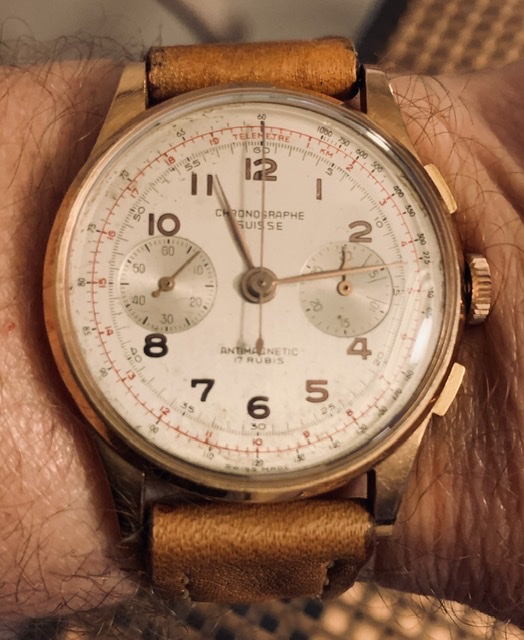 Lovely watch and the dark brown strap looks amazing! Seeing that radium sub-second dial inspired me to try my new strap on a 9k Dennison case 30T2, and I have to say - I think it looks pretty good! Thanks to the talents and generosity of Duracuir1, I now have the perfect companion for both 30T2 watches. Thanks again!