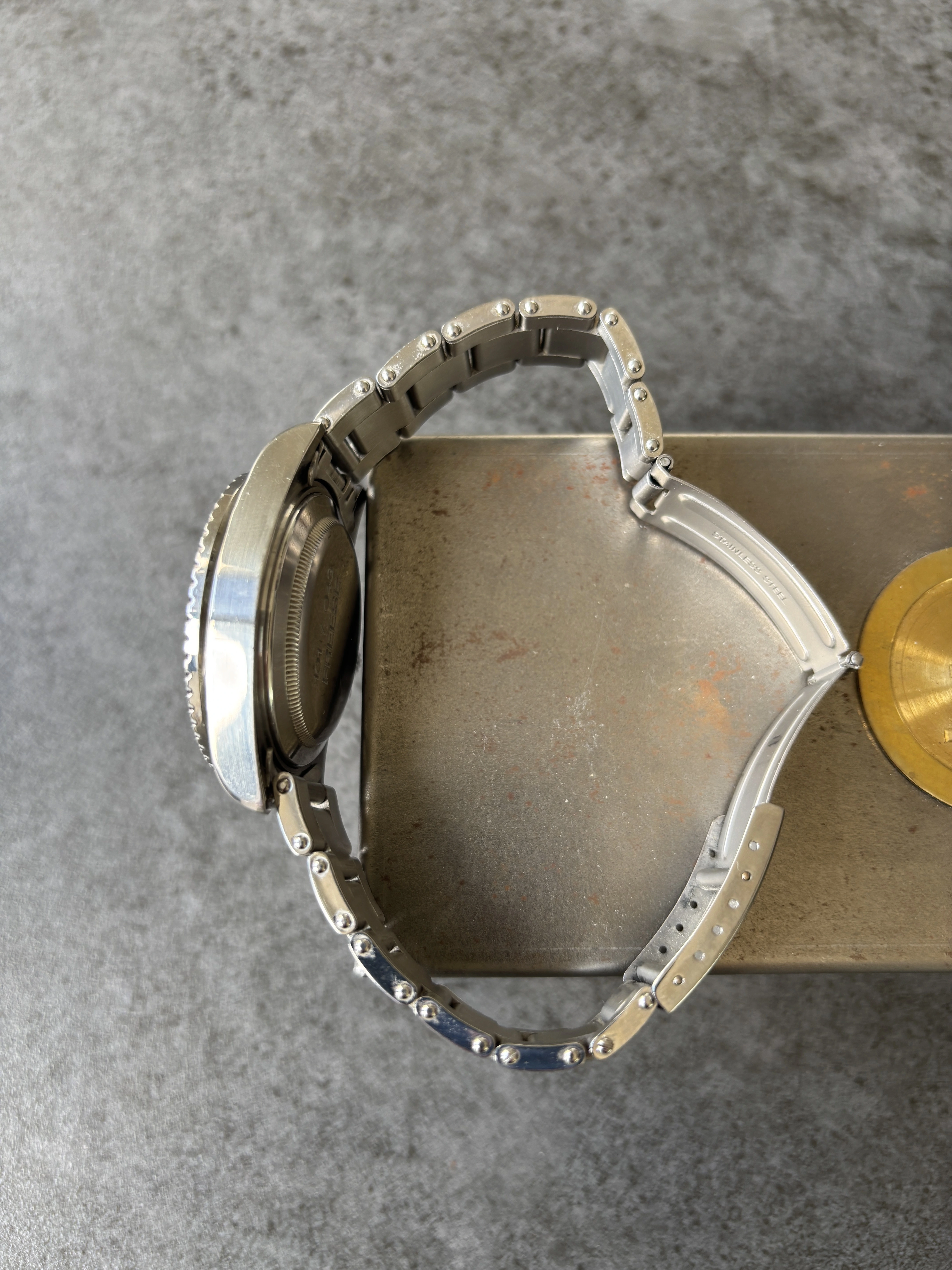 Bezel: Slightly aged black, dark purple in sunlight