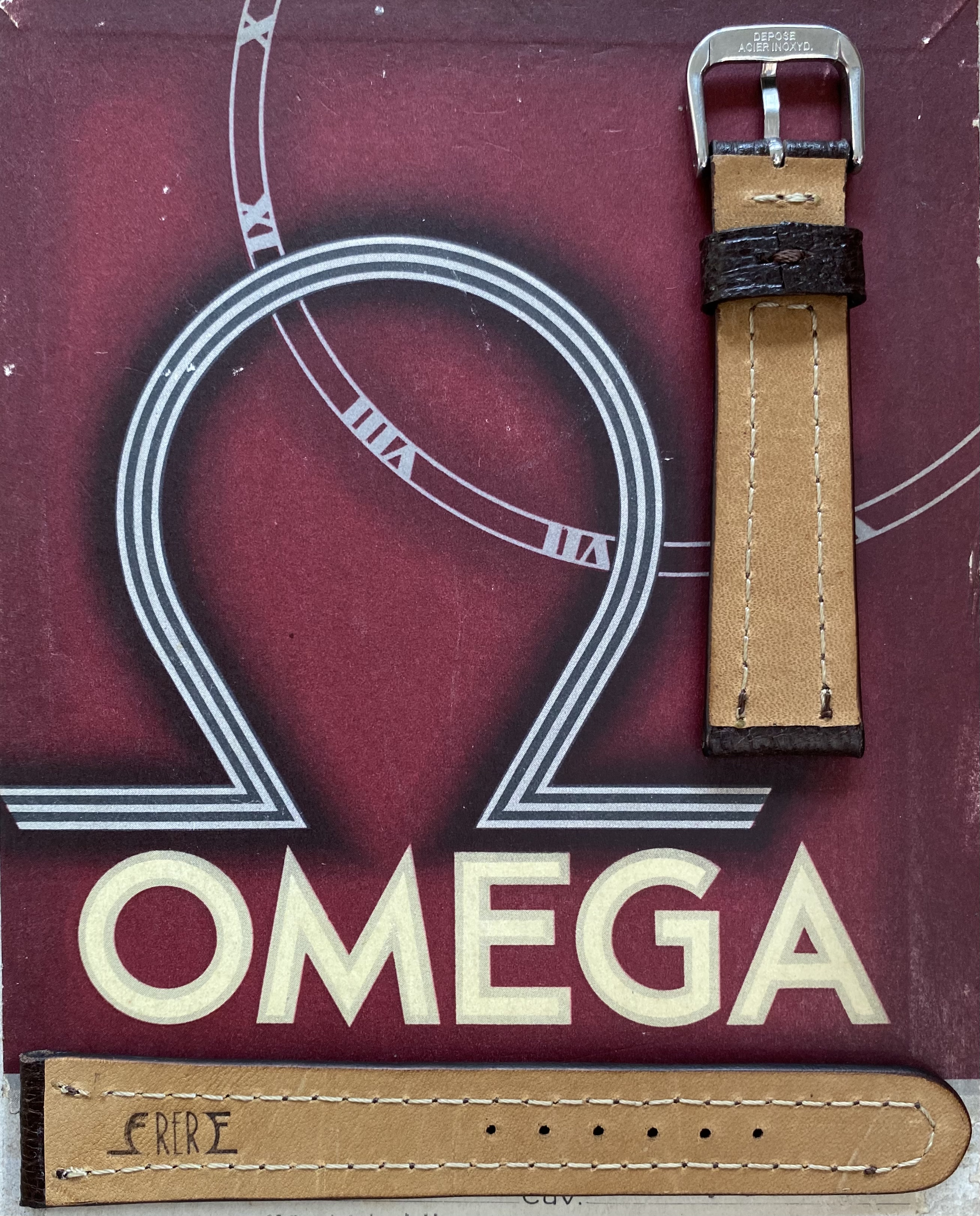 The inspiration for the Frere logo (French for “brother”) came from the brotherhood here on Omegaforums and a tribute to friendships made, maybe I had Louis Brandt et Frere in mind as well- - - the firm that became Omega. This logo is seared into the backside of the strap.