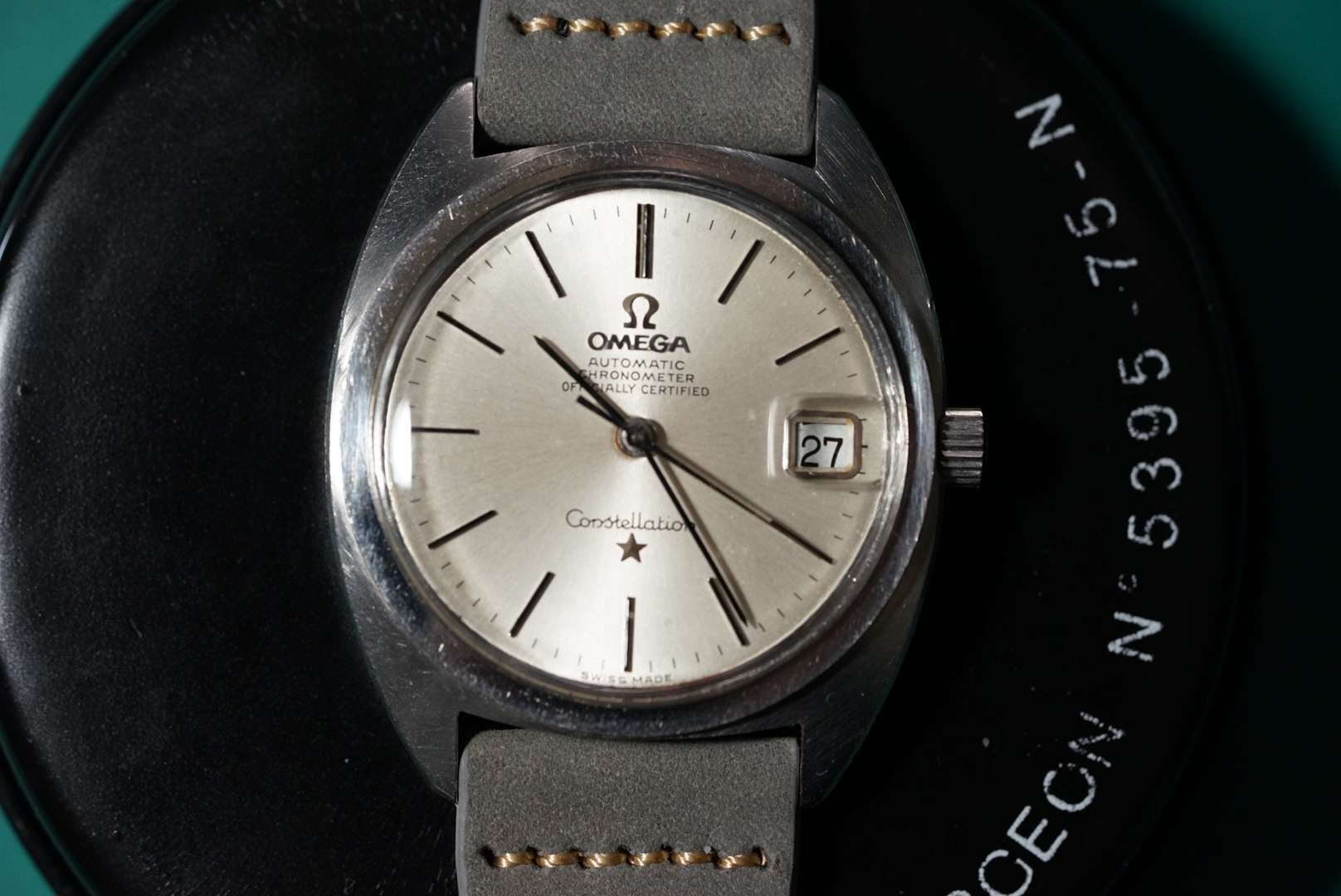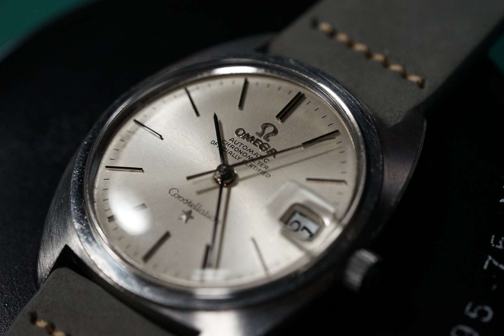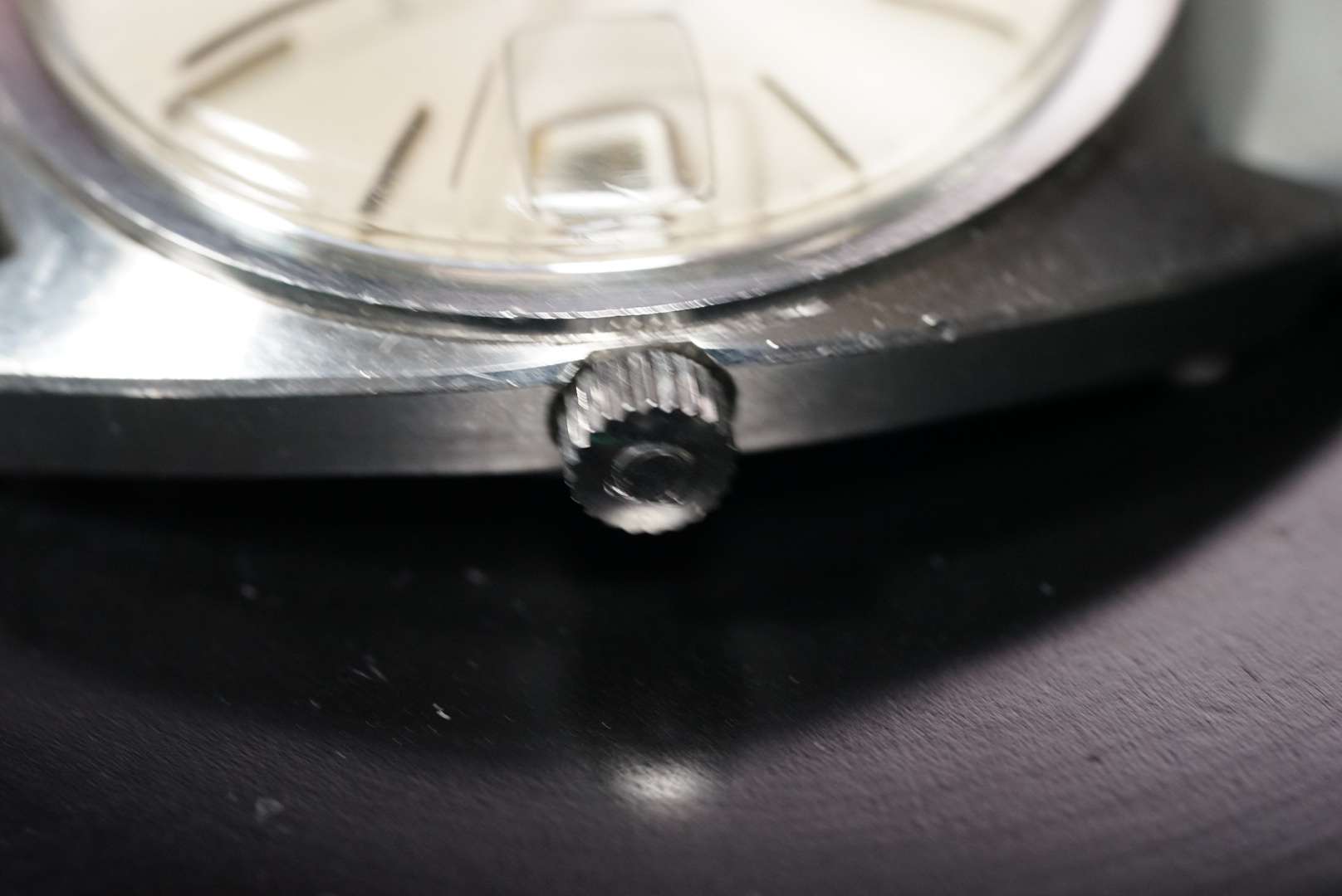 This C-Case is the most traditional example of the first 1966 version, it's a 561 cal. and the case has a flat factory polished bezel, later versions had a bevelled factory polished bezel, and then after 1966, they introduced more modern C-Case's with bevelled and factory brushed bezel - really hard to find this version of the case. The dial is the traditional flat logo version as well. It's all original minus the crown that appears to be an original yet generic Omega replacement. Also hard to find original large magnifier crystals, later ones are narrower and look weird on off angles, these ones had a wide range of view