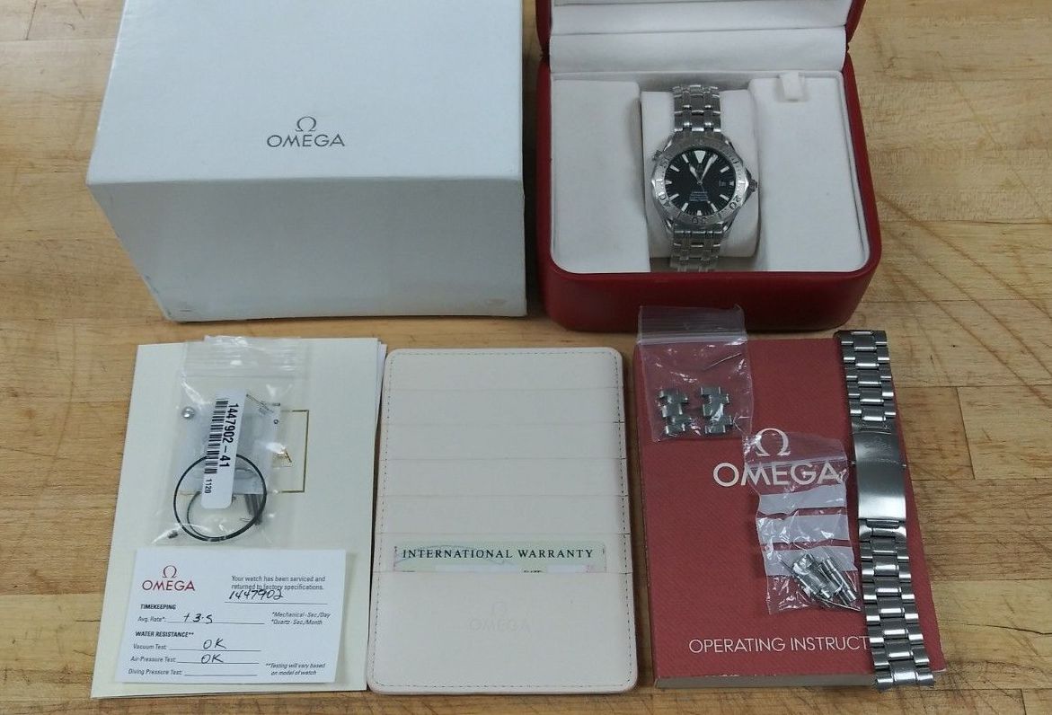 Not only did this watch just come back from an Omega service, it comes with two bracelets: a 1503/825 and the 1610/930 that's currently on it. It has extra links for both. All serviced parts, receipt and 2 year warranty and everything in the photos, also included.