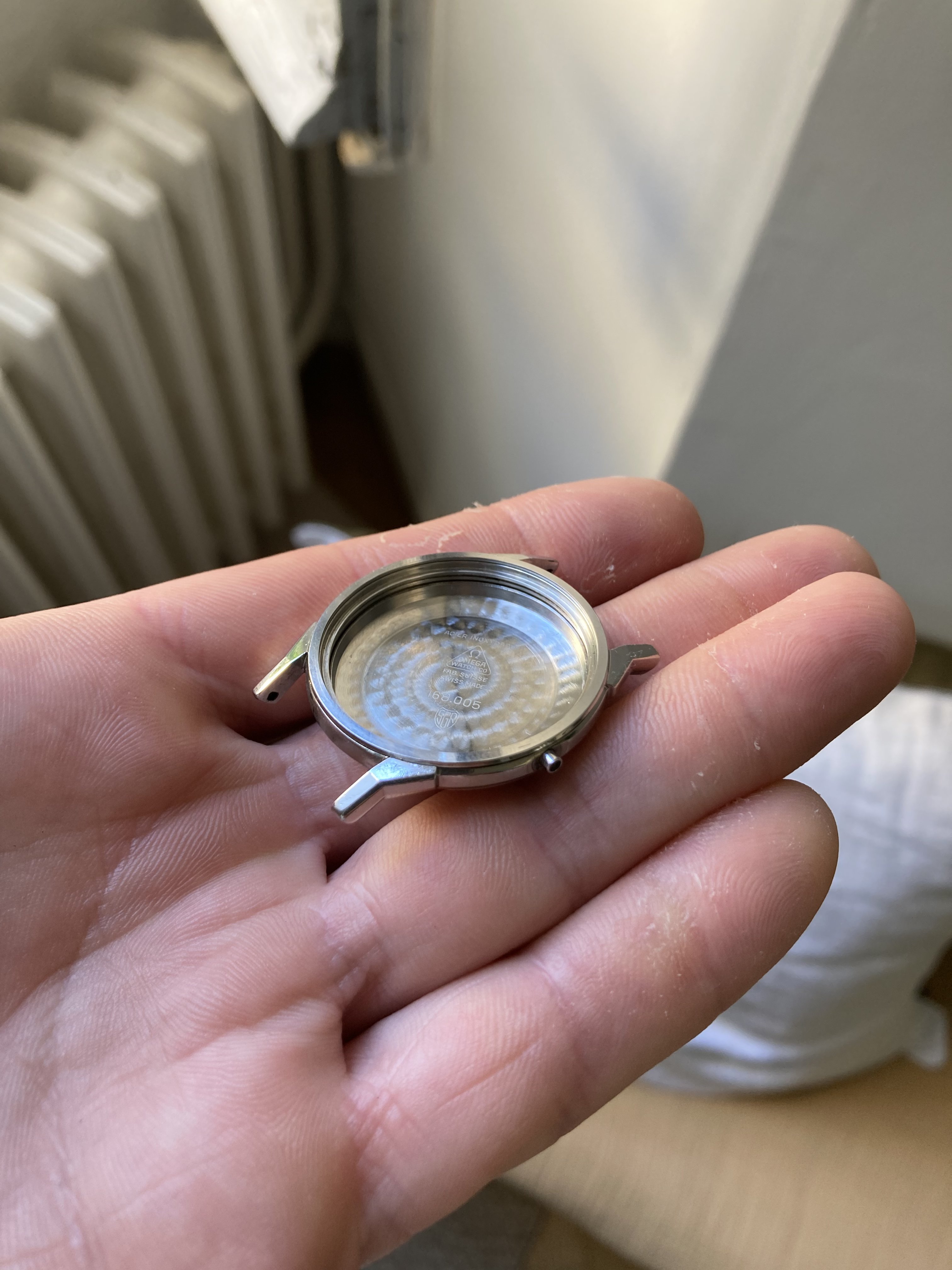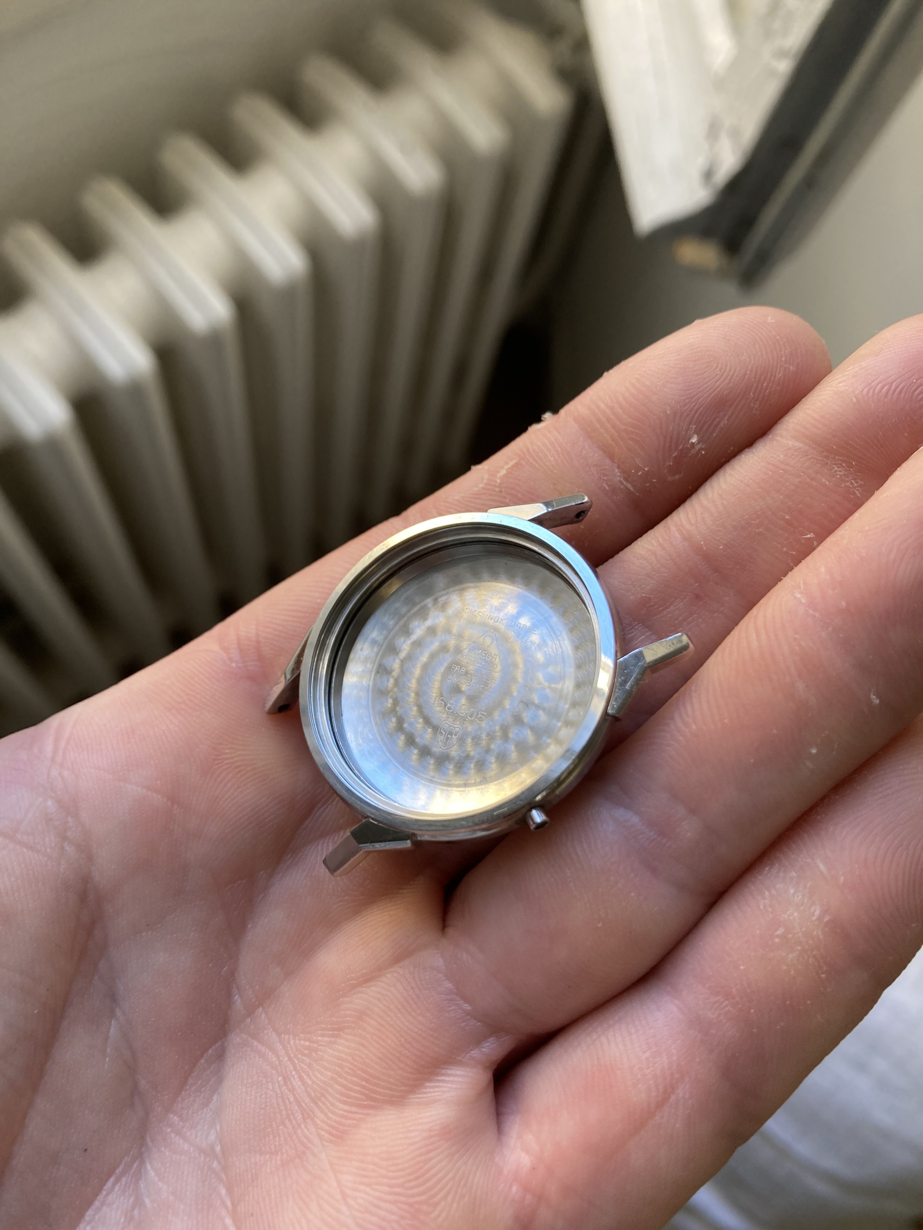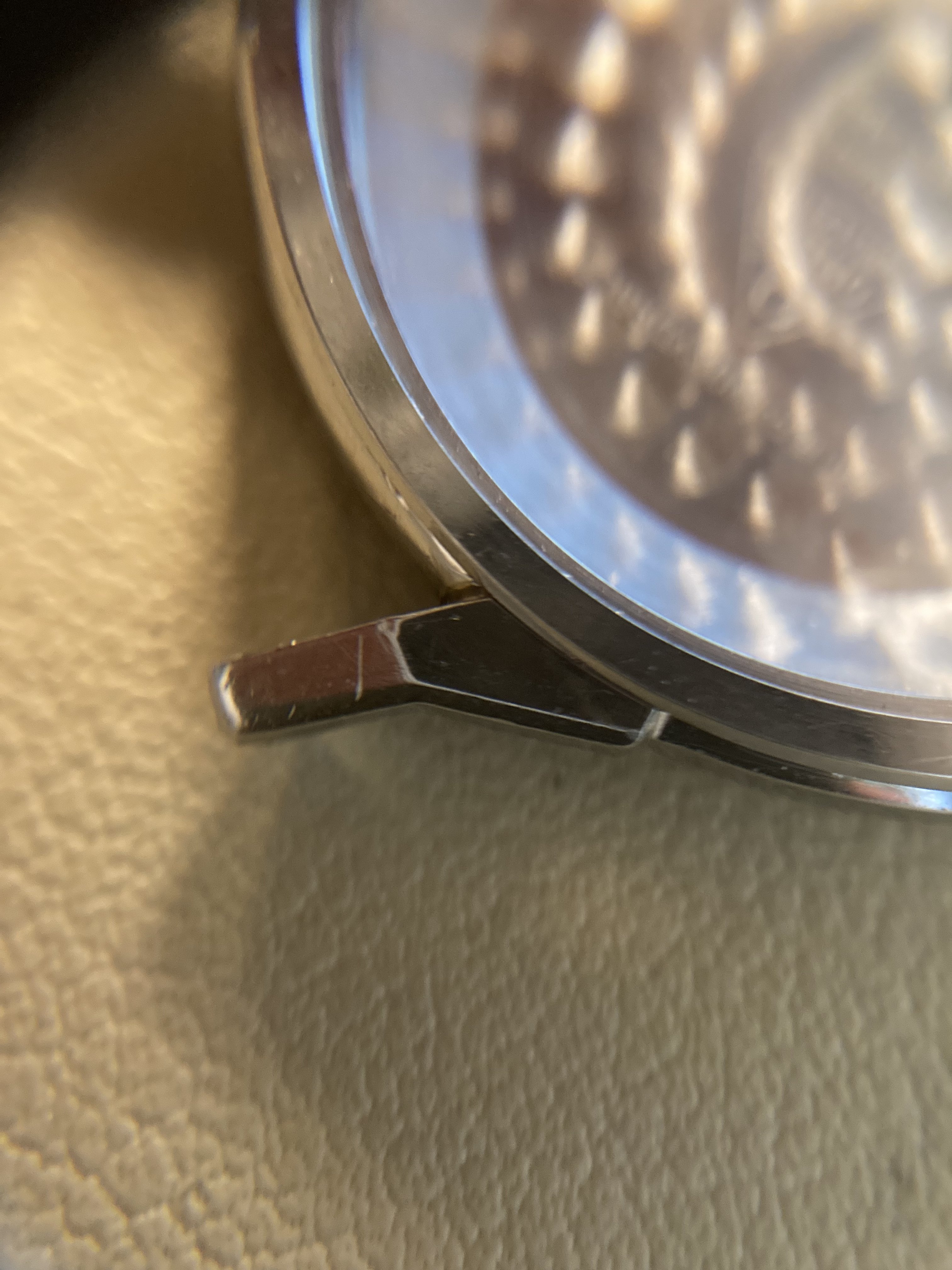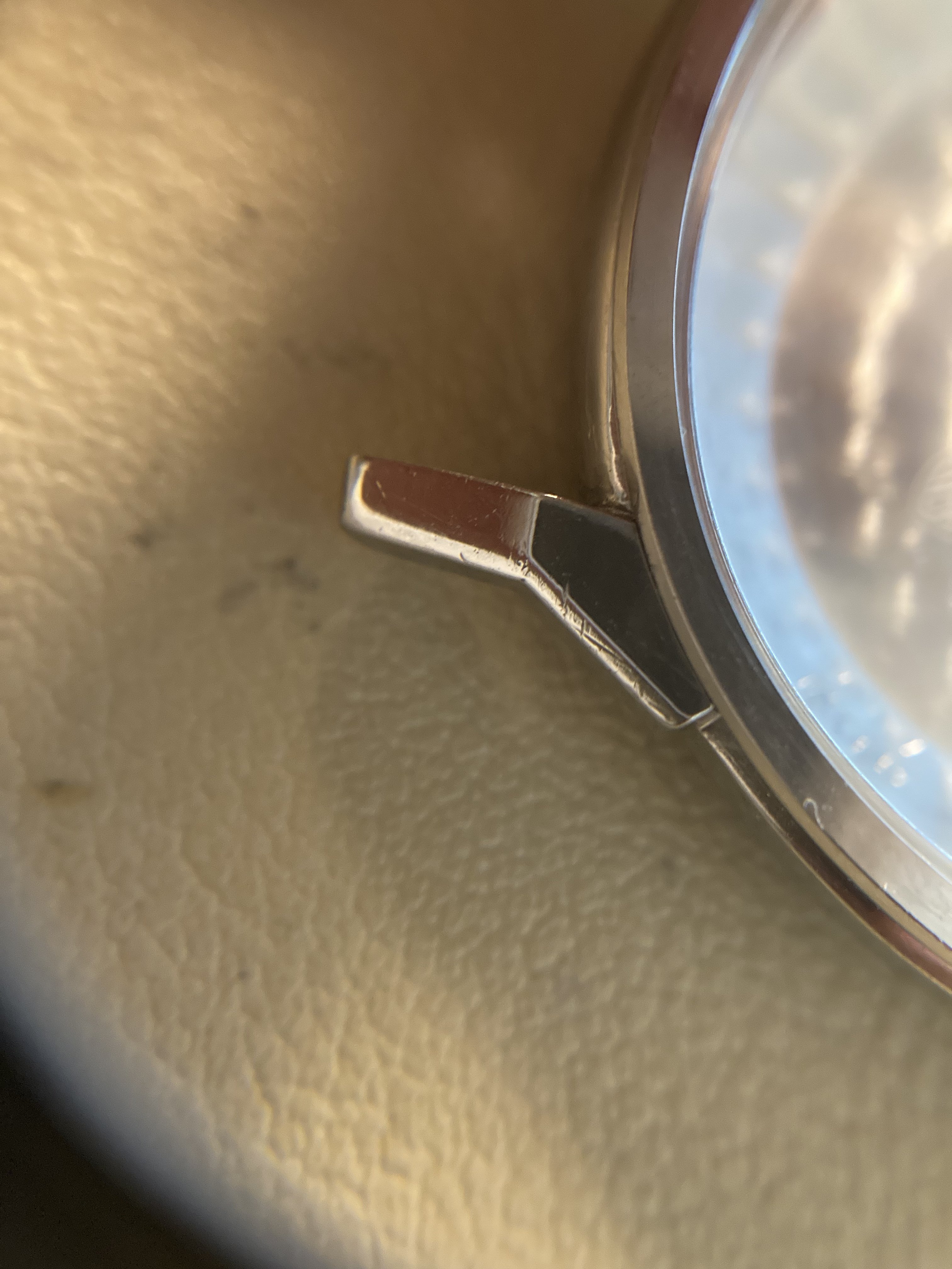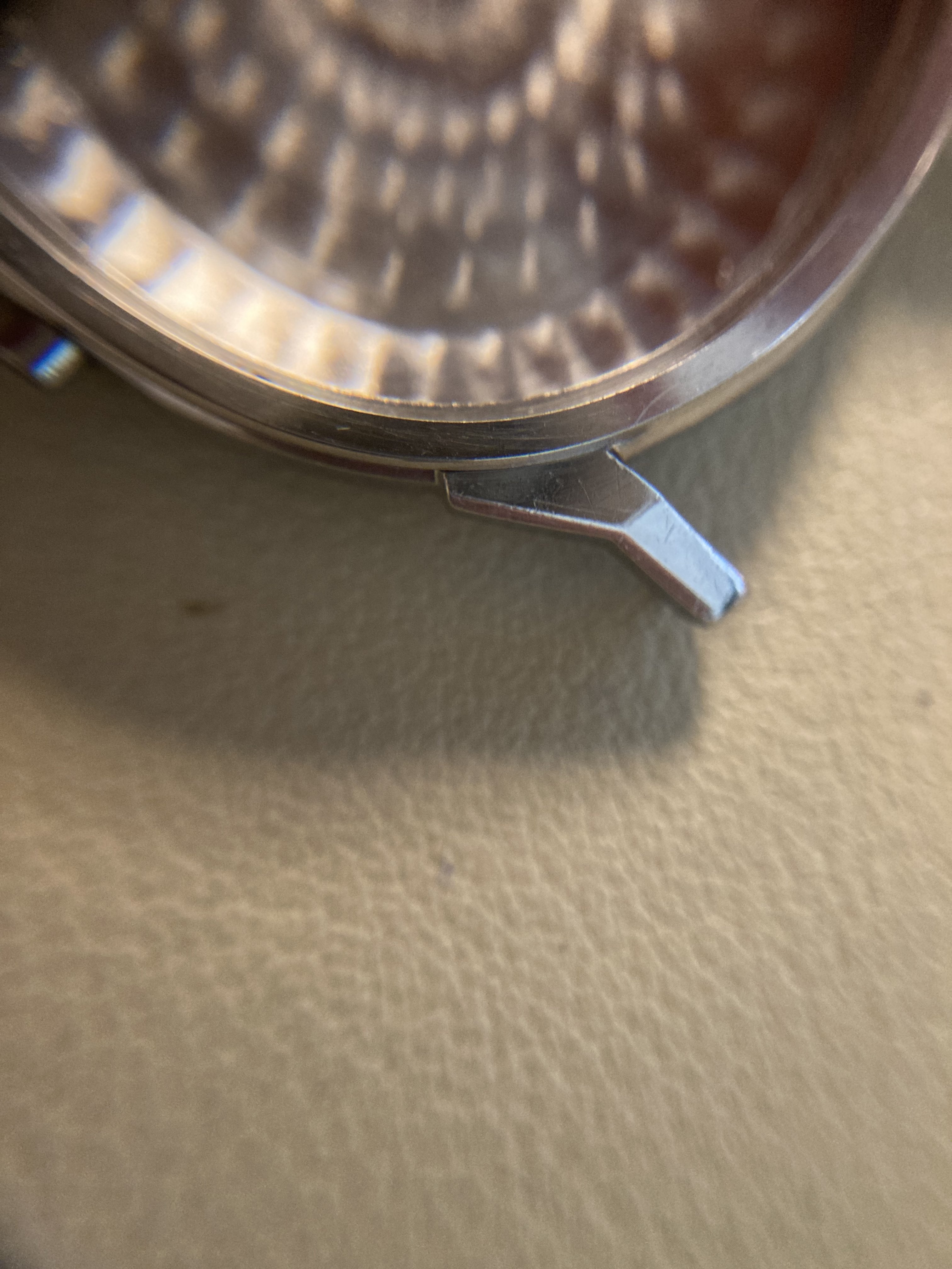 The case has seen polishing, but case back is in nice condition, chamfers on lugs are still visible.