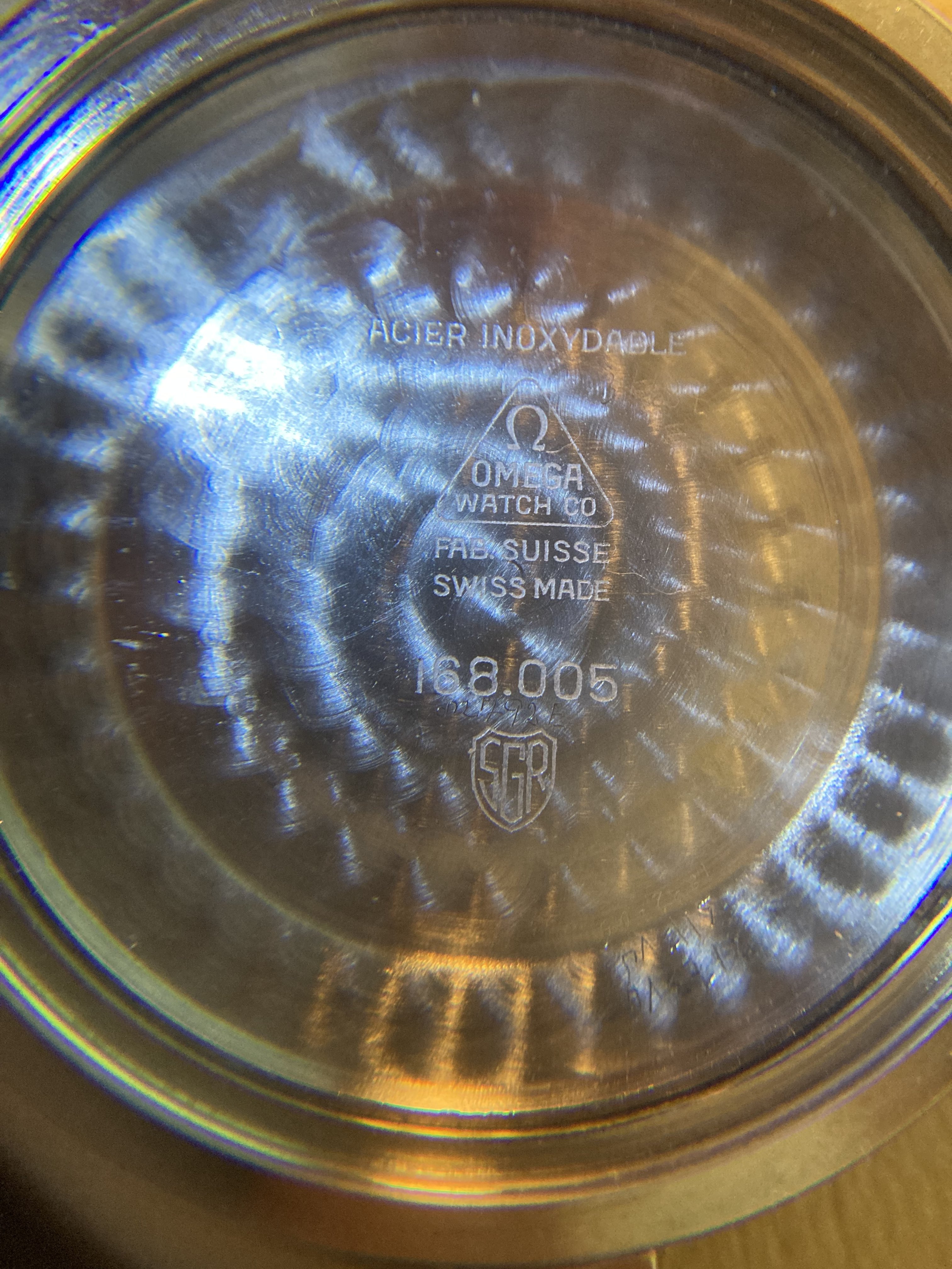 for sale, a complete omega 168.005 case, witch bezel and case back.