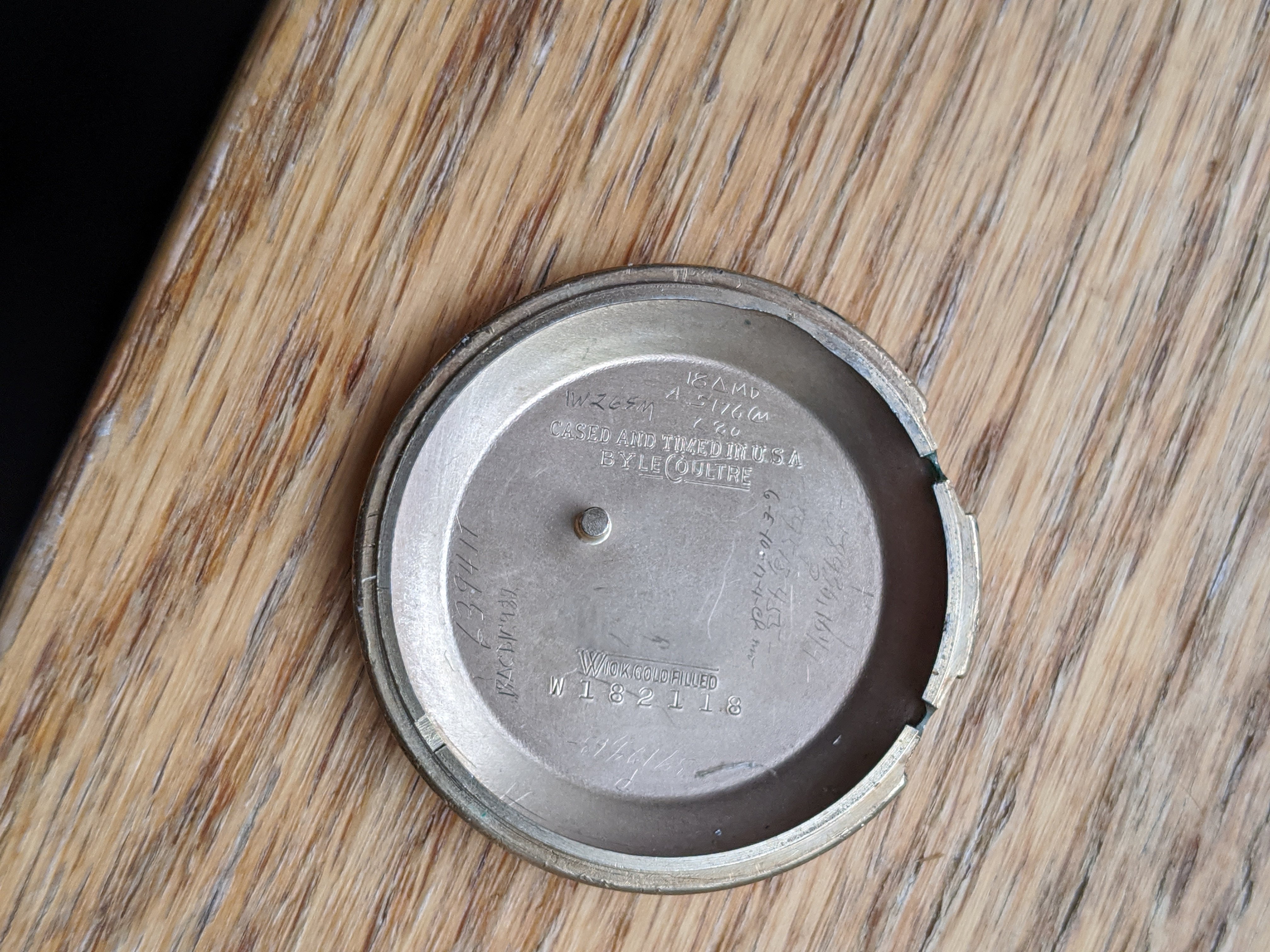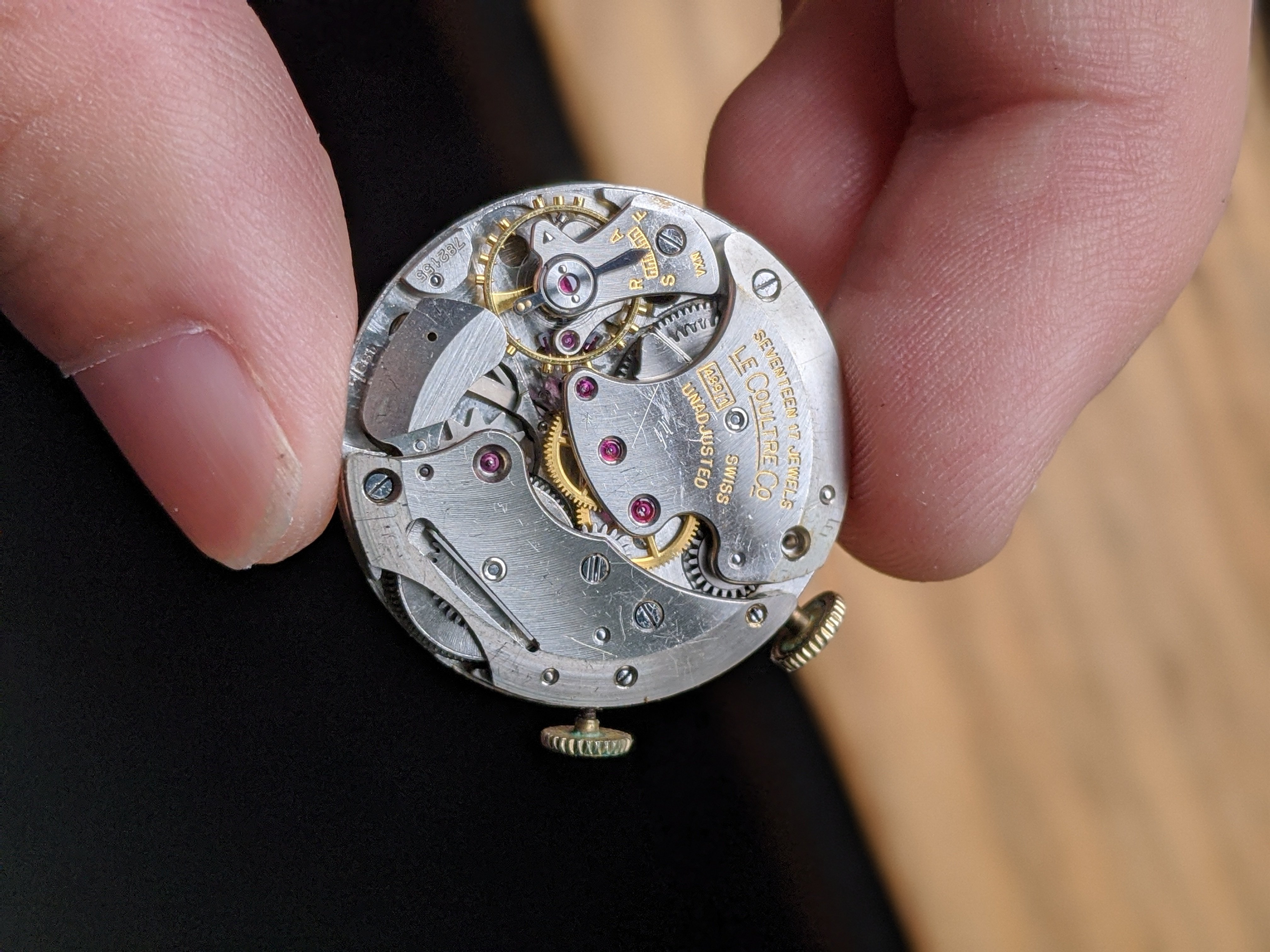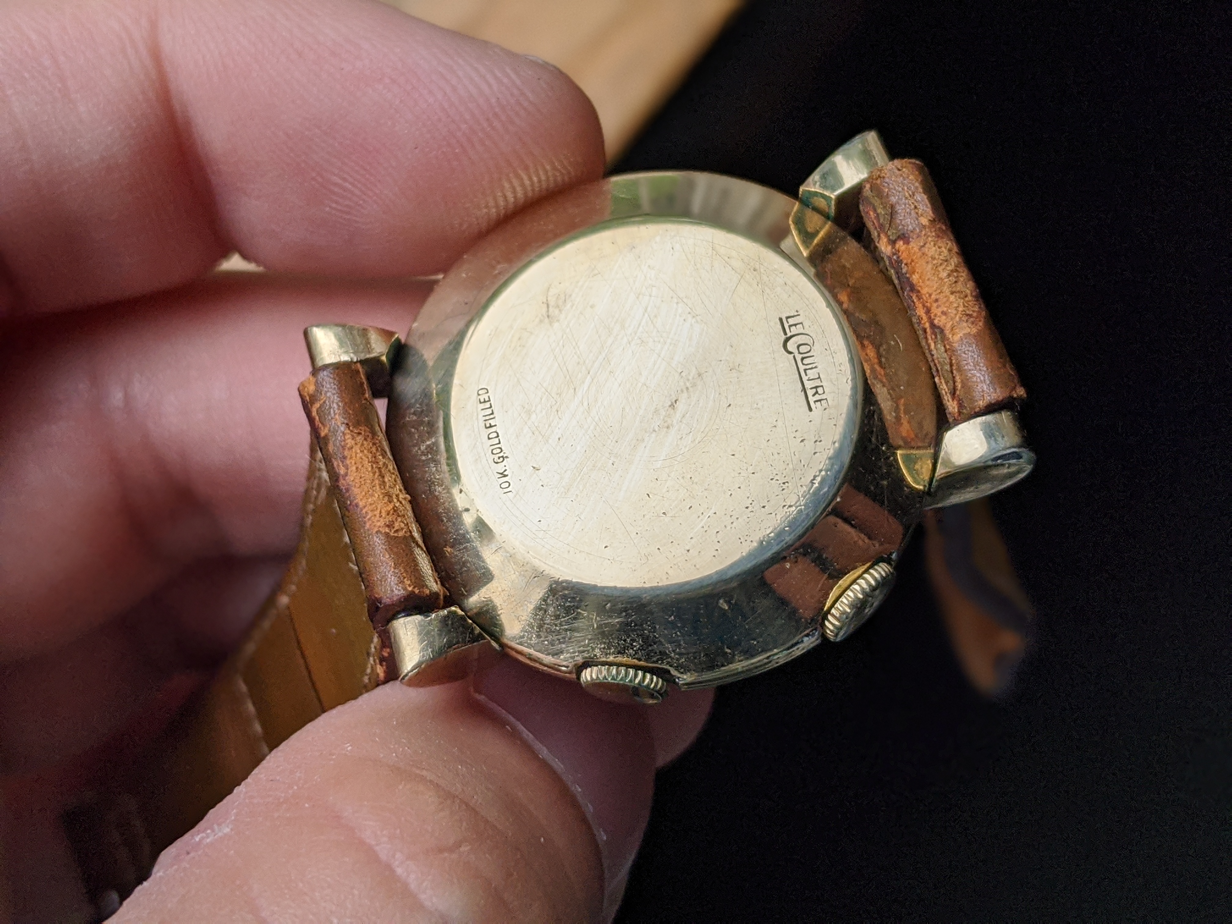 ·Here we have a 1950s Lecoultre Wrist Alarm. The watch was serviced late last year, so everything works great. The buzzing alarm is nice and loud. It appears original, dial, hands, crowns. The 10k gold filled case shows some wear, as you can see, but it's not bad for an almost 70 year old piece. Lug width is 16mm, case measures 32.25mm, not including the crown. Crystal is clean, probably newer. Case back snaps on. I'm asking $500 or best offer. Please PM me for inquiries. Returns only of grossly misrepresented.
