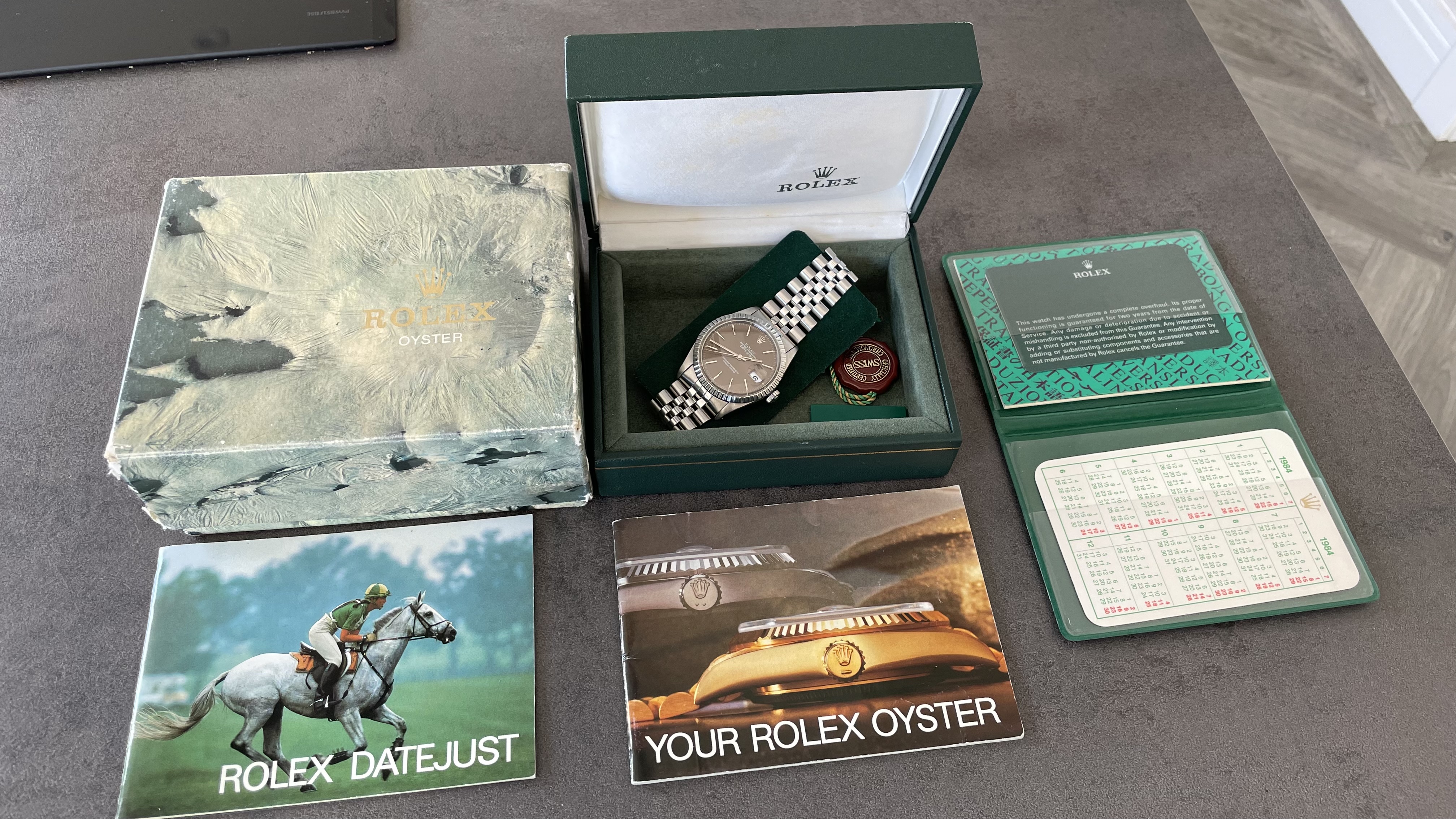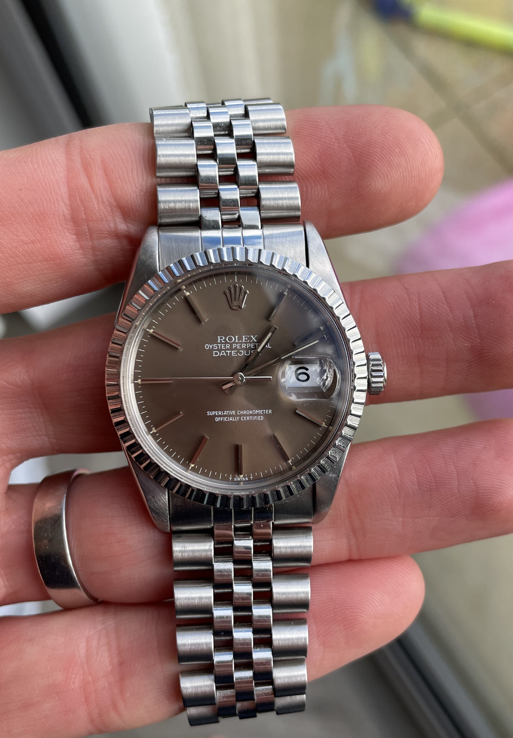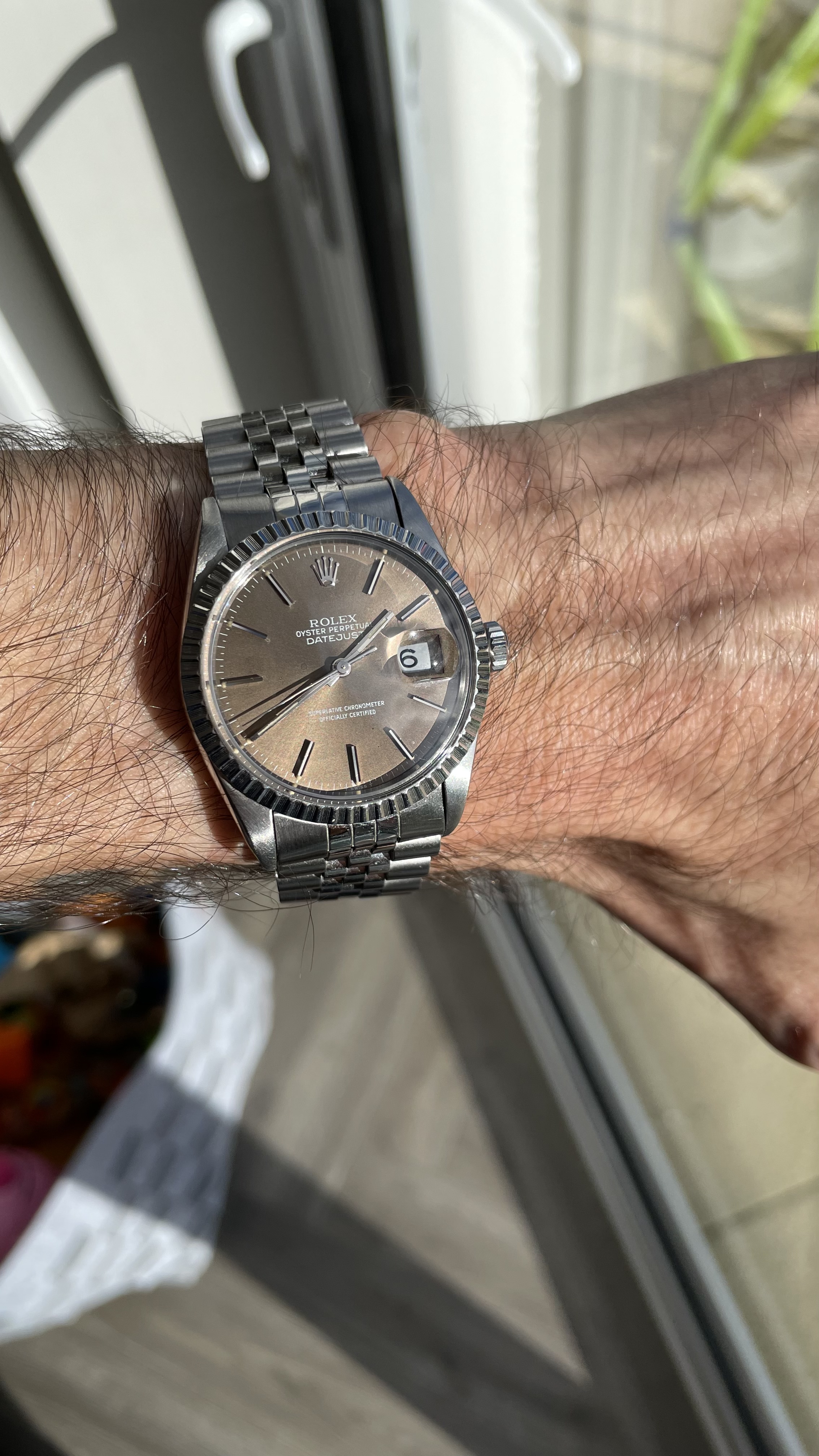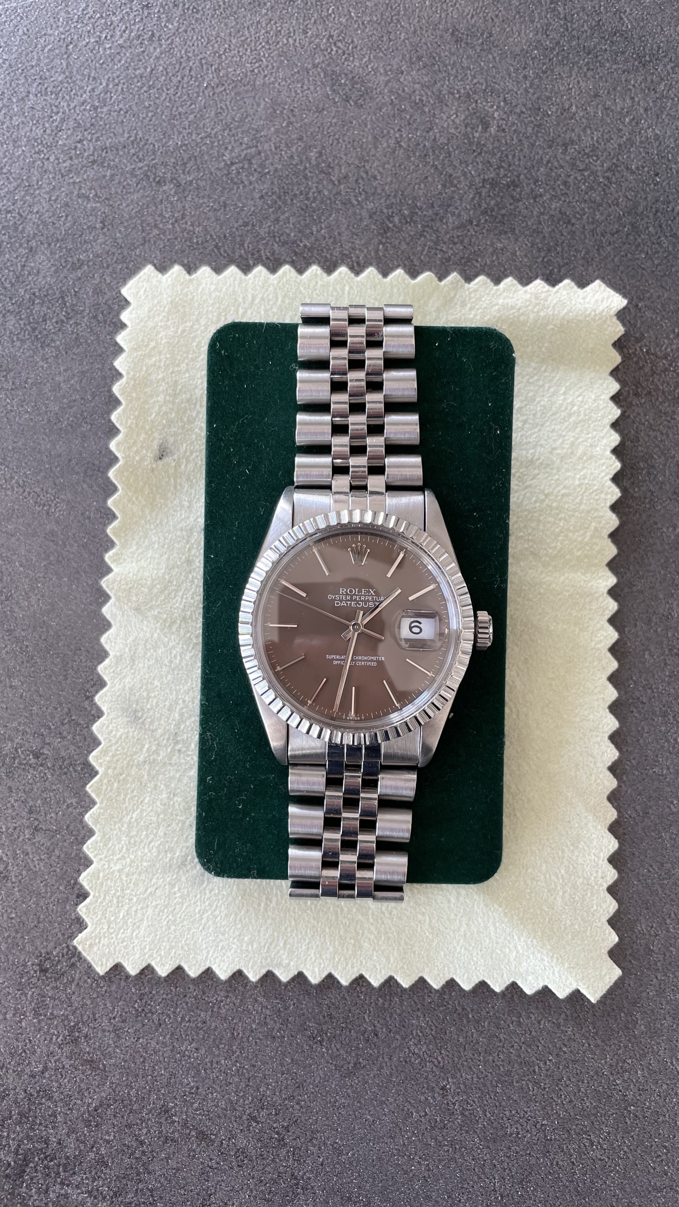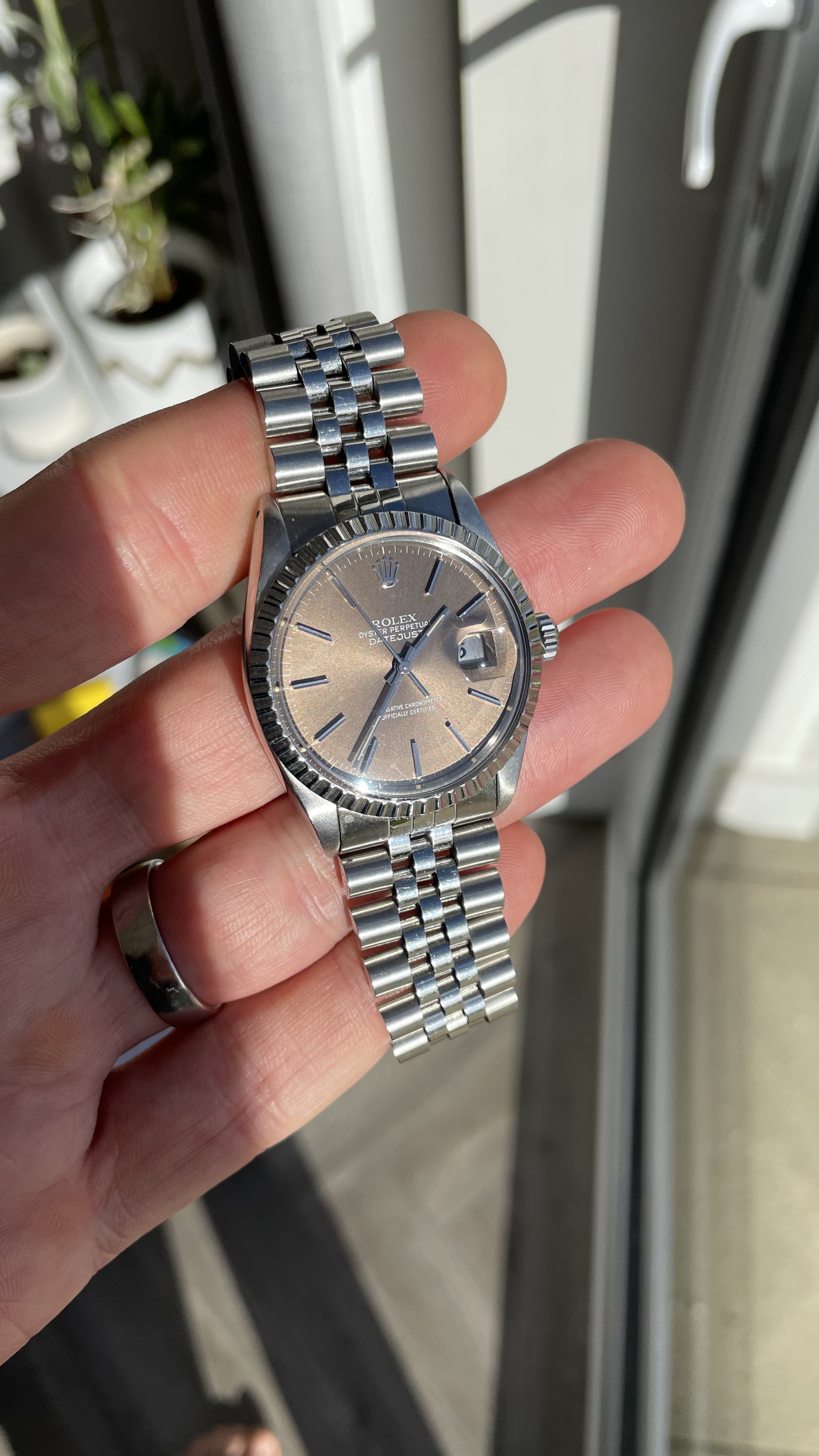 ·For sale is a lovely little 16030 Datejust with a fairly unique looking dial. I think it started life as a grey dial but is definitely more of a brown colour now. I’ve seen quite a few old DJs that have this trait, but no two seem to look the same.