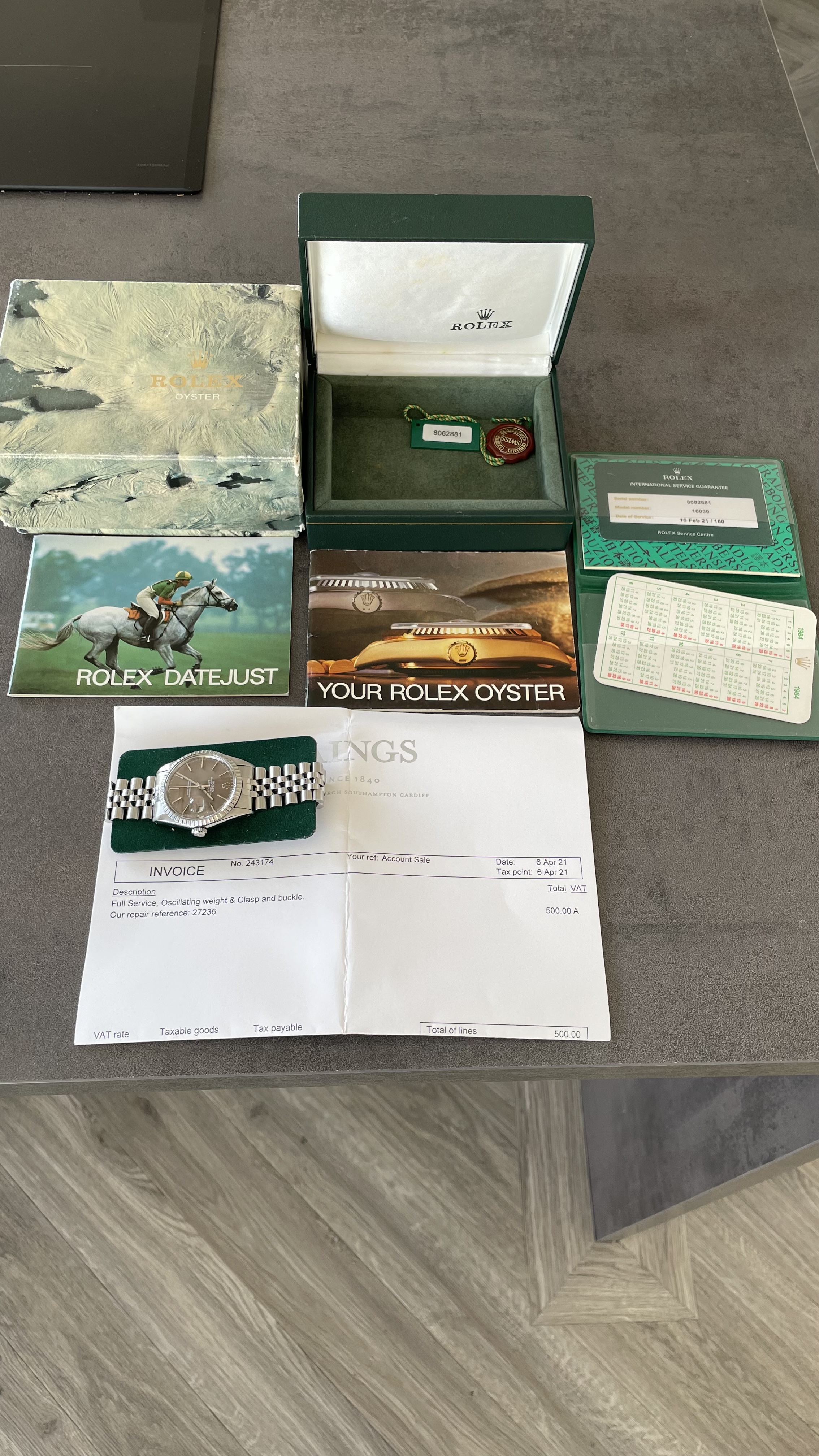 The watch went back to Rolex in April 2021 for a full service. During this service it was deemed necessary to have a new clasp added to the Jubilee bracelet and a new oscillating weight added to the movement. I have the paperwork and the 3 year warranty card for this work.