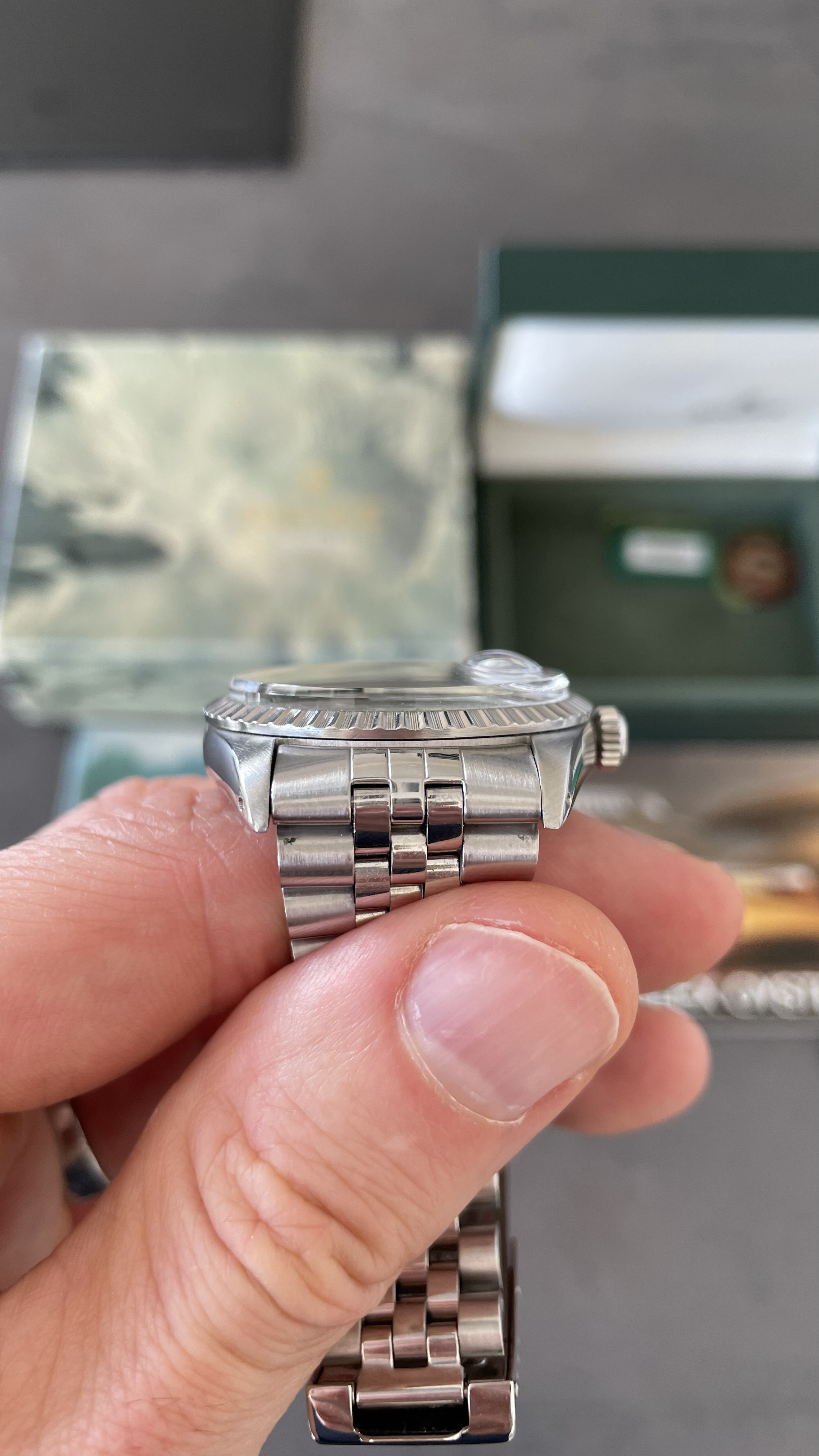 This is a lovely example of an Datejust which has been serviced by Rolex with paperwork so you know it’s good to go for many years ahead.