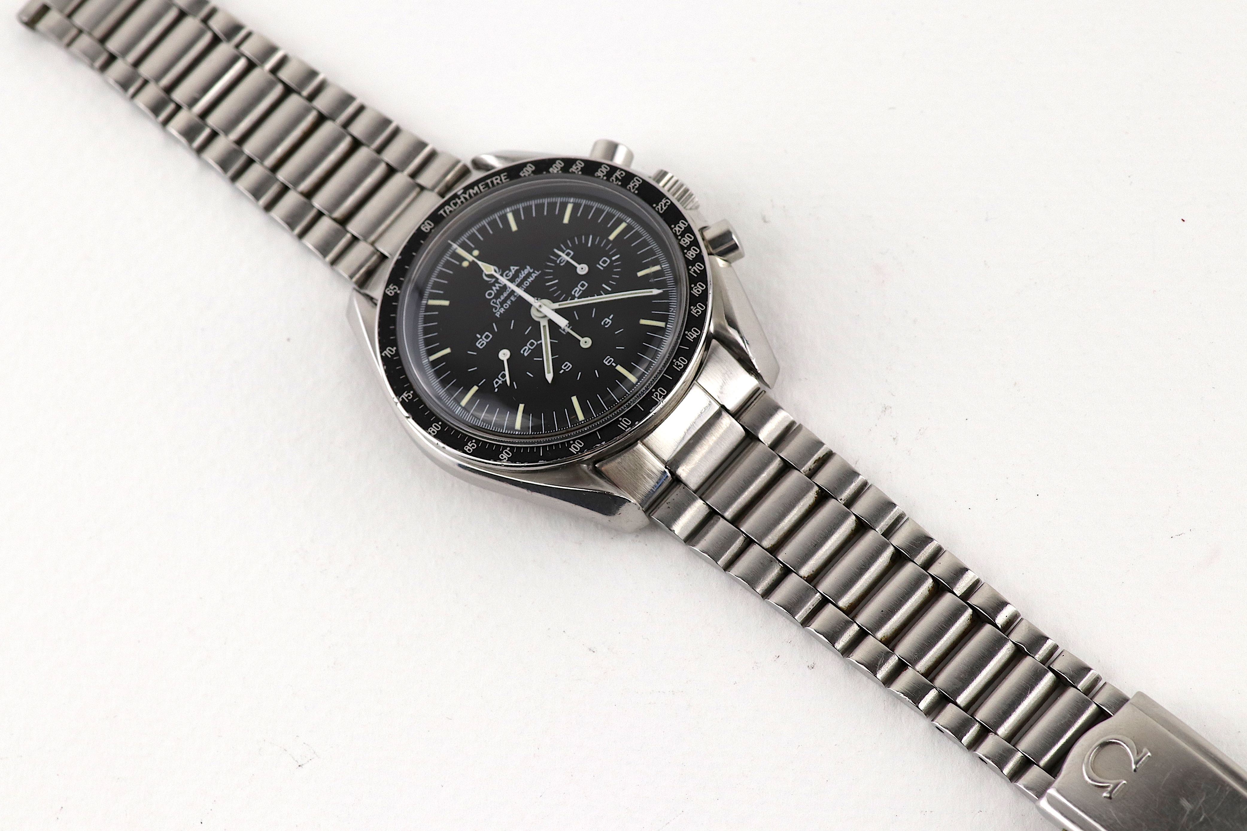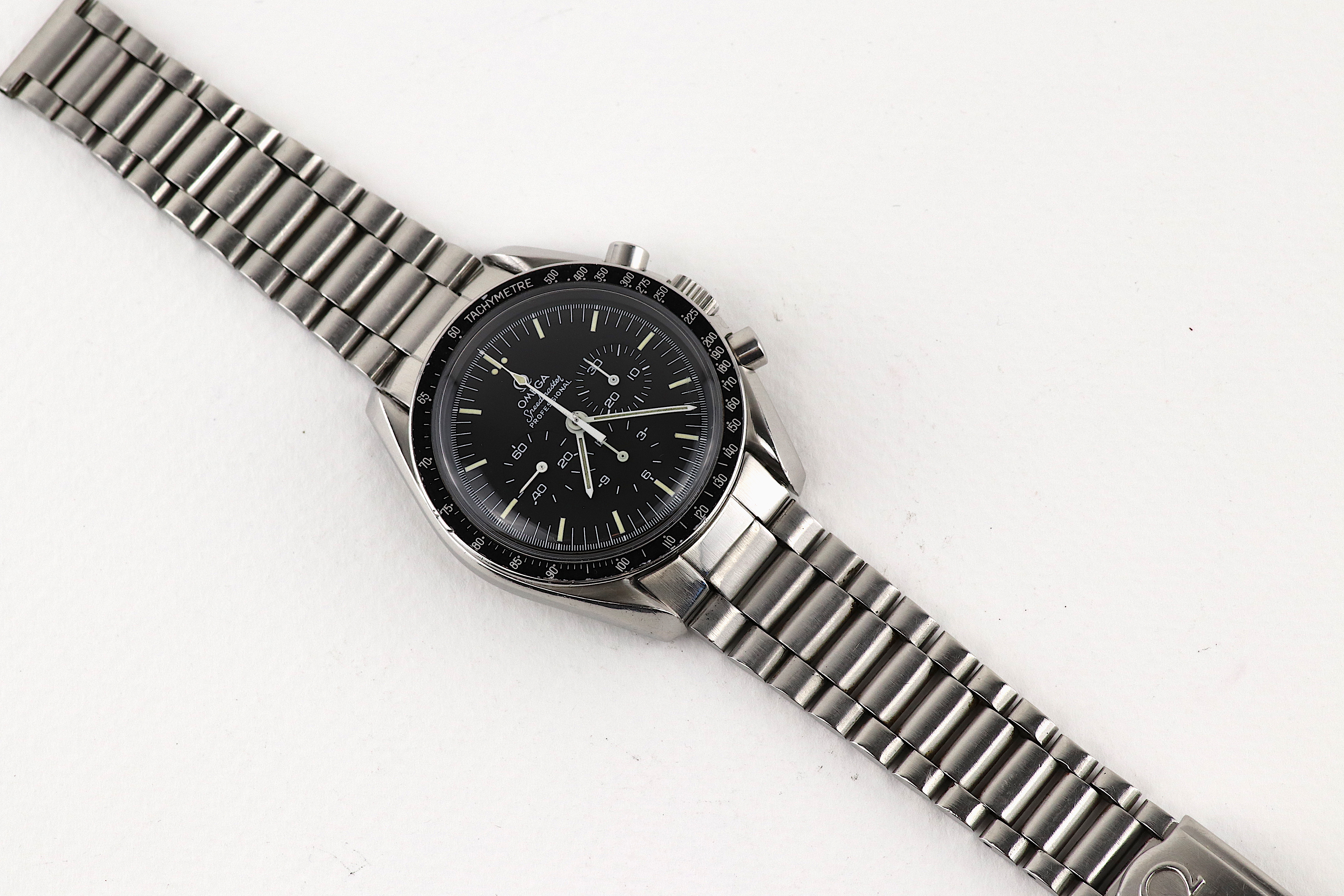 ·For sale, I have an Omega Speedmaster Professional Ref: 145.022. I don't have an extract for this watch and 1981 is just a prediction based on the serial number. The watch came to me serviced but I don't have any paperwork to prove so. It is running very well on the Timegrapher. The watch comes with 1171 Novolink bracelet and 633 end links.