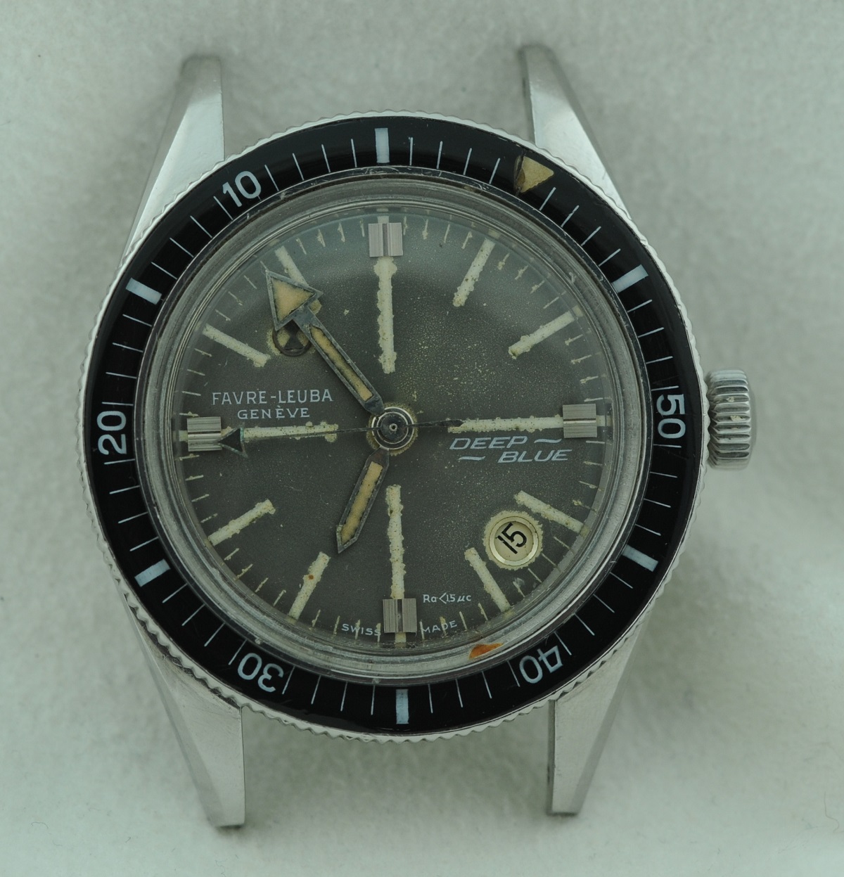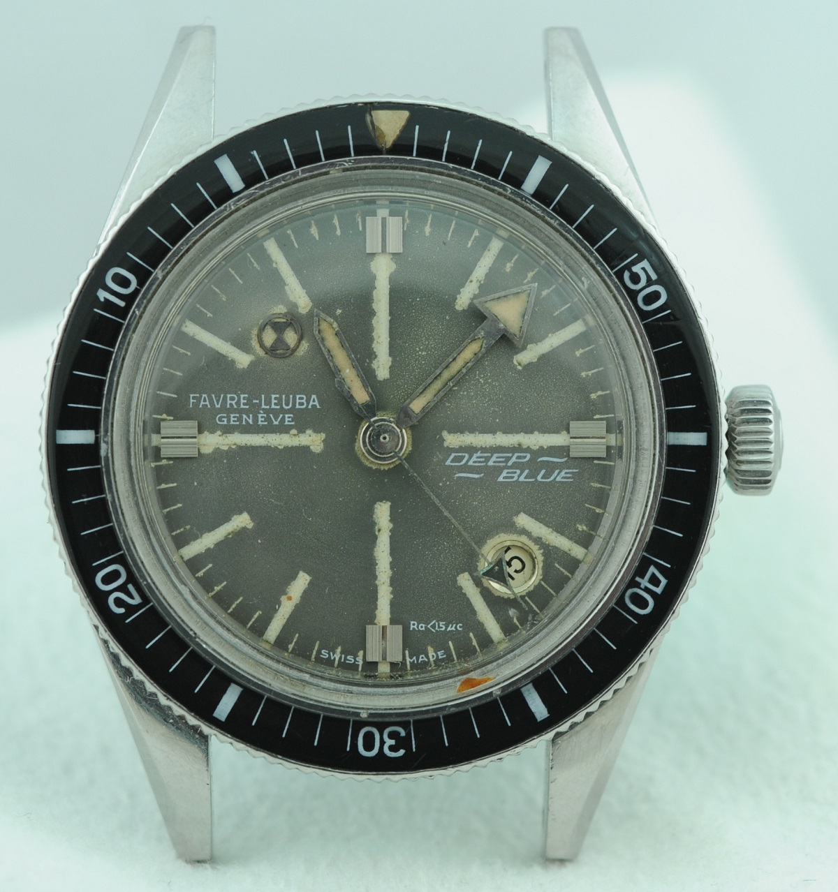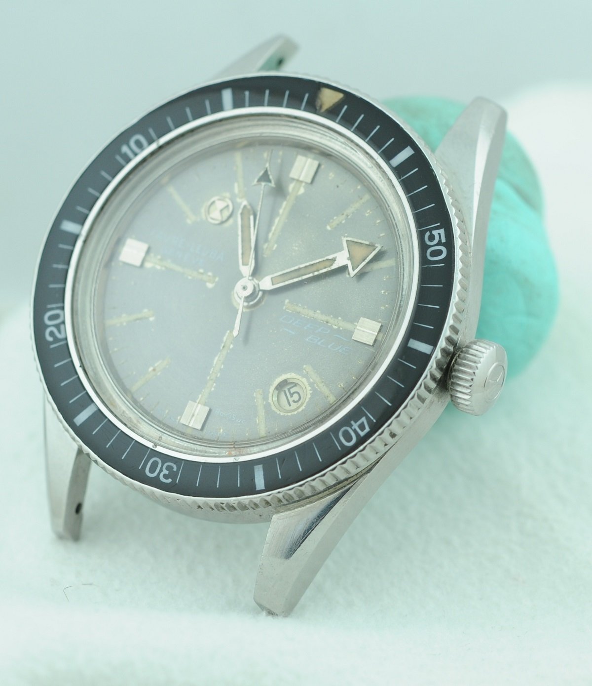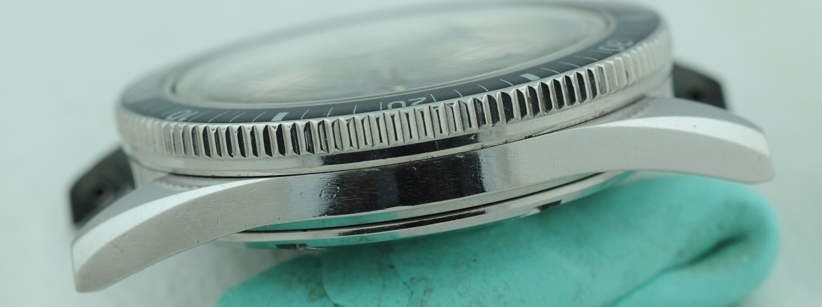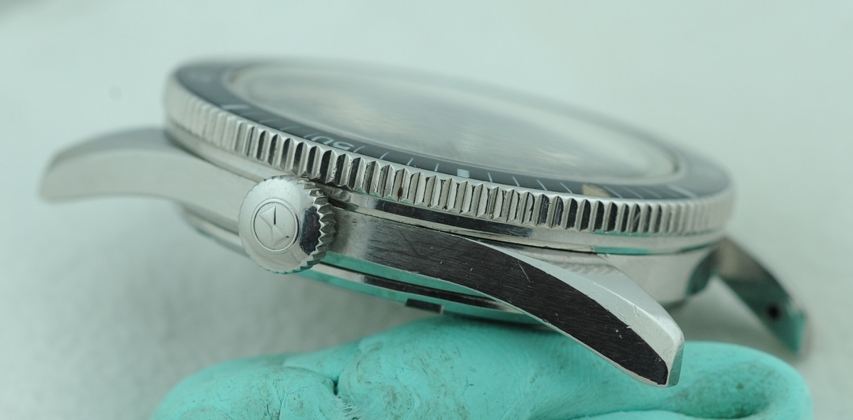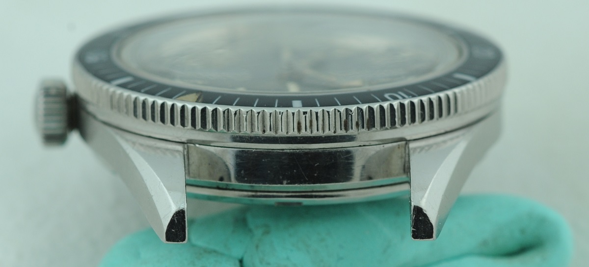 Bezel: Bakelite insert in count-down configuration. Small crack in beige triangular zero marker, otherwise excellent.