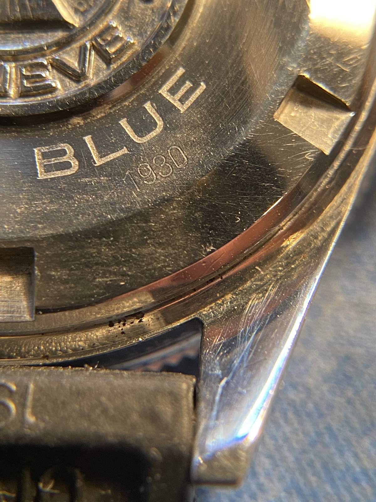 Crystal: Flat, in good shape and I believe it to be original or at least an OEM replacement. Some superficial scuffing seen under loupe at the 0-15 min position and near the bezel.