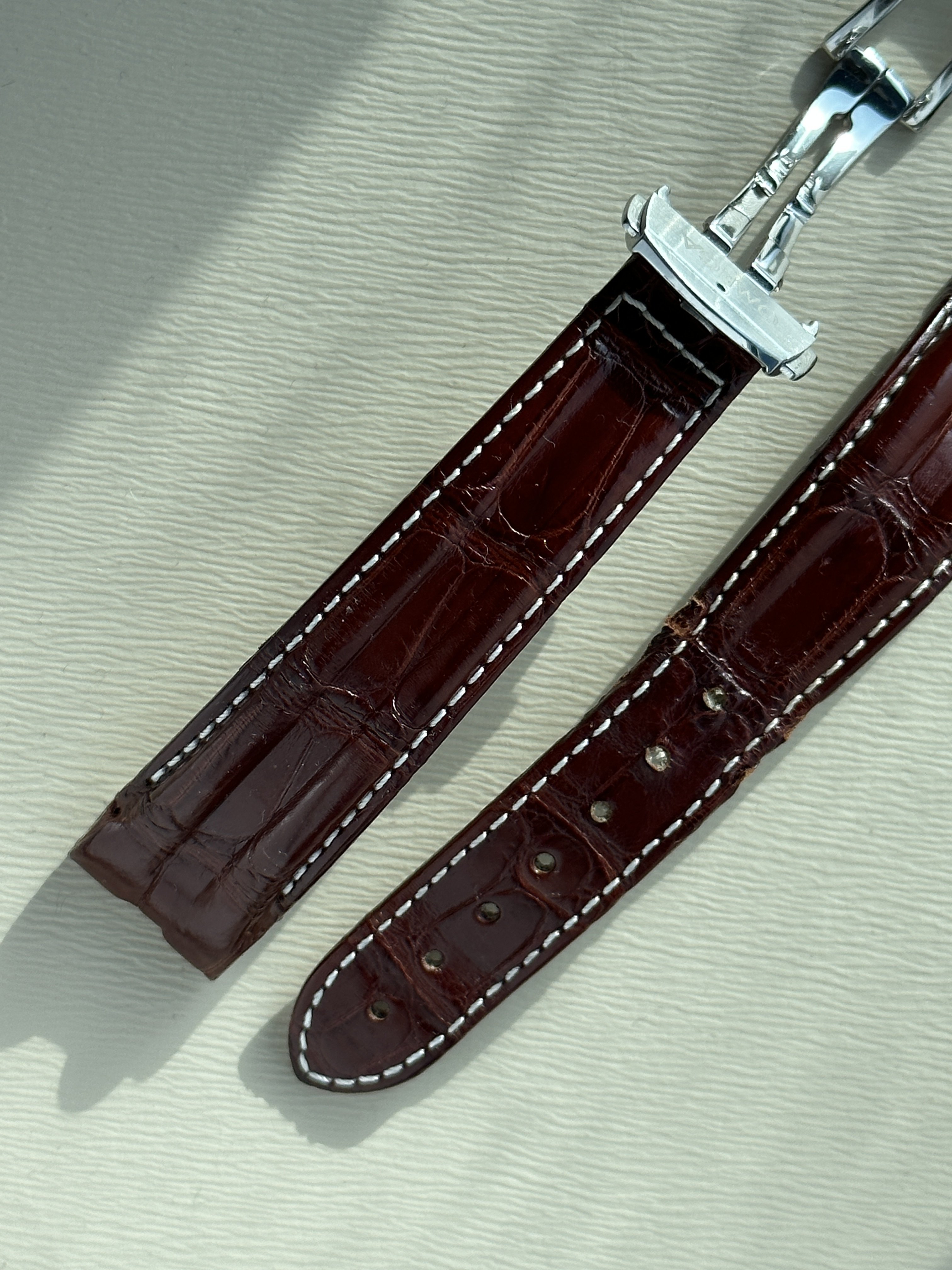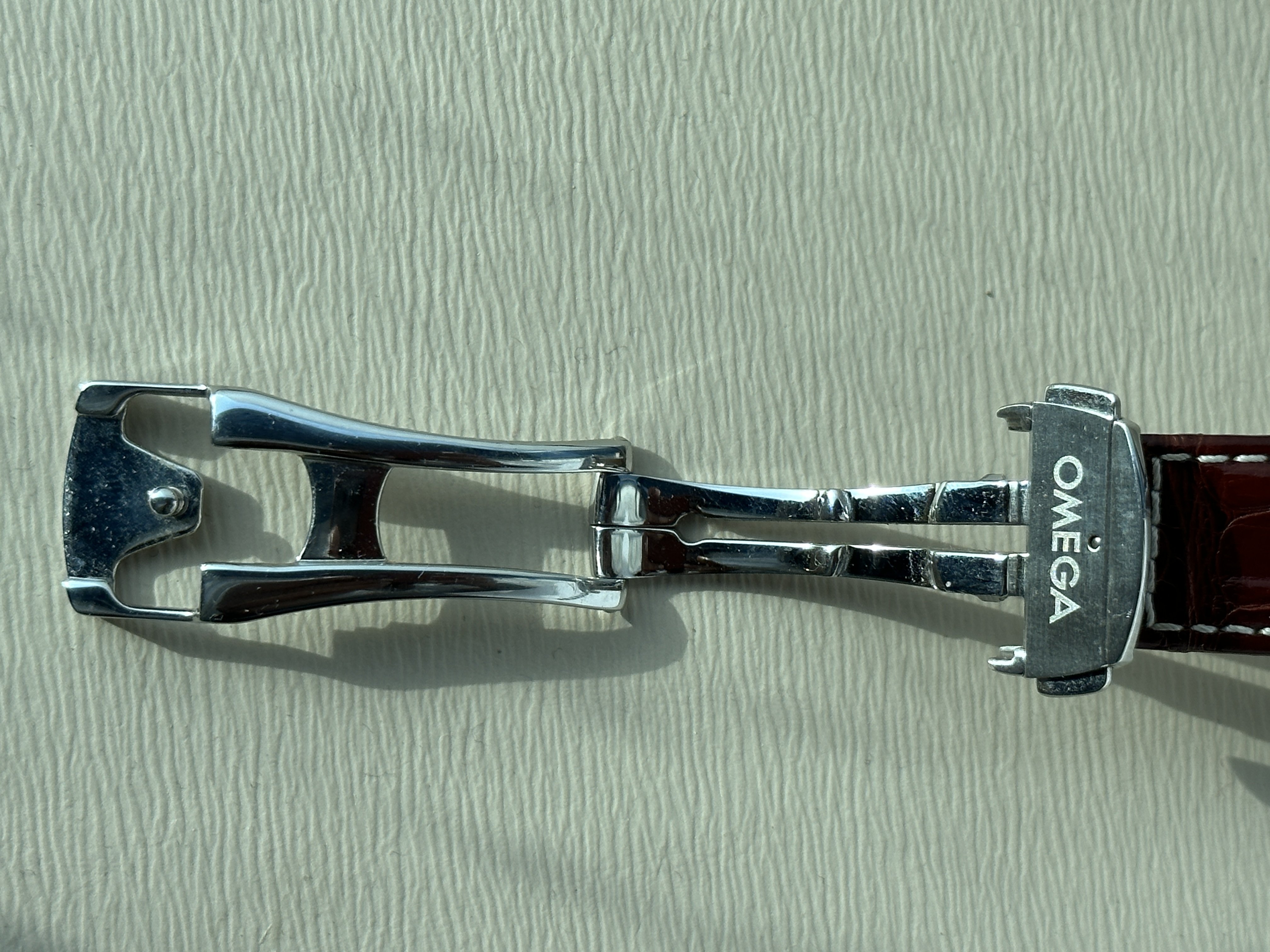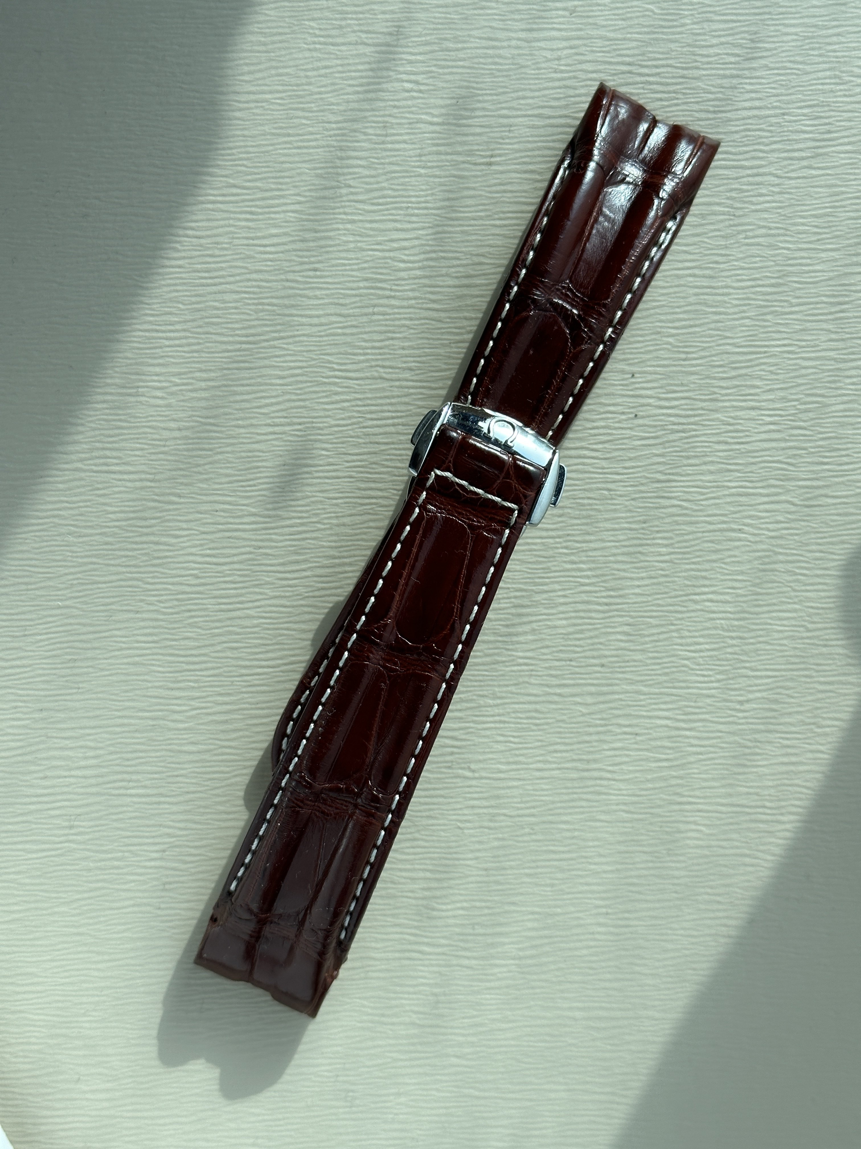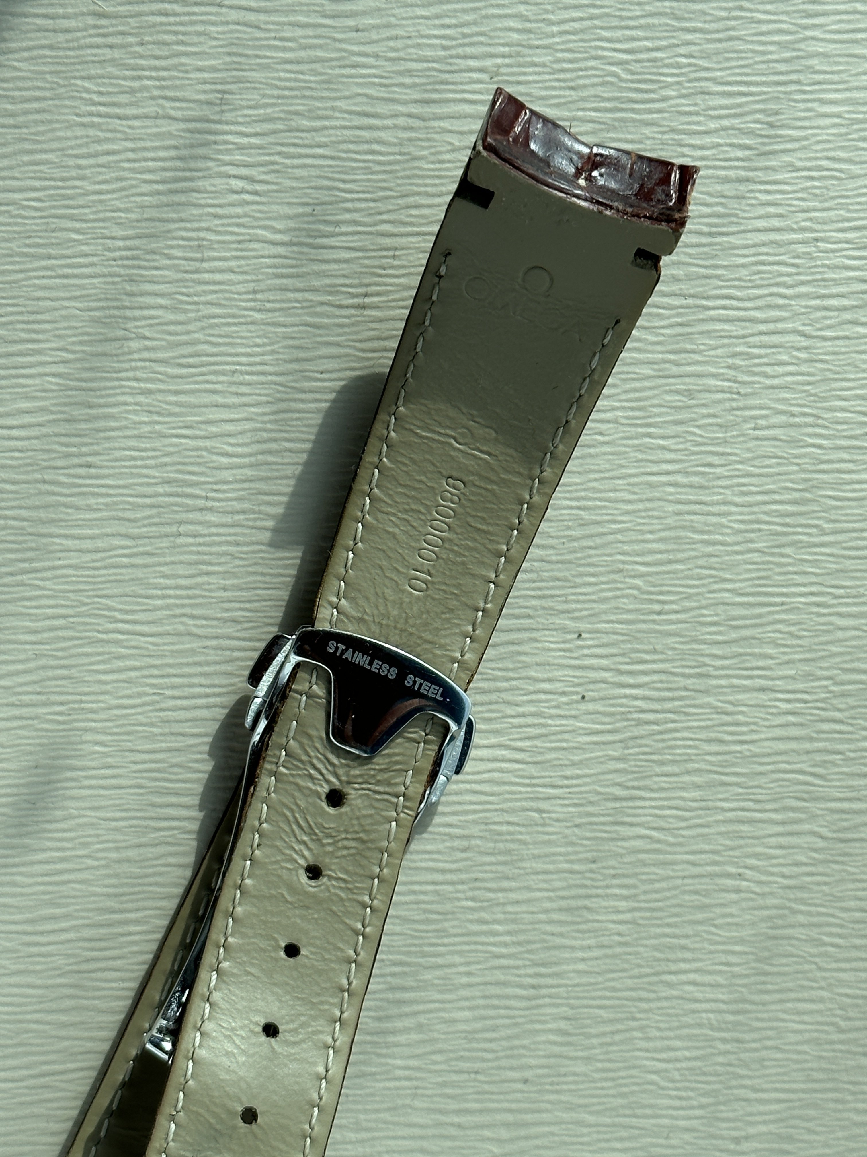 Note: There is some light wearing of the leather from the place where the deployment attaches. I have tried to capture this as best I can but the photos exaggerate this and it is barely noticeable. The strap has been in storage for over 5 years so not really used either. Also attached some pictures of when I first got it on the Speedy and PO and one on the recent from more recently to show the change in colour over time.