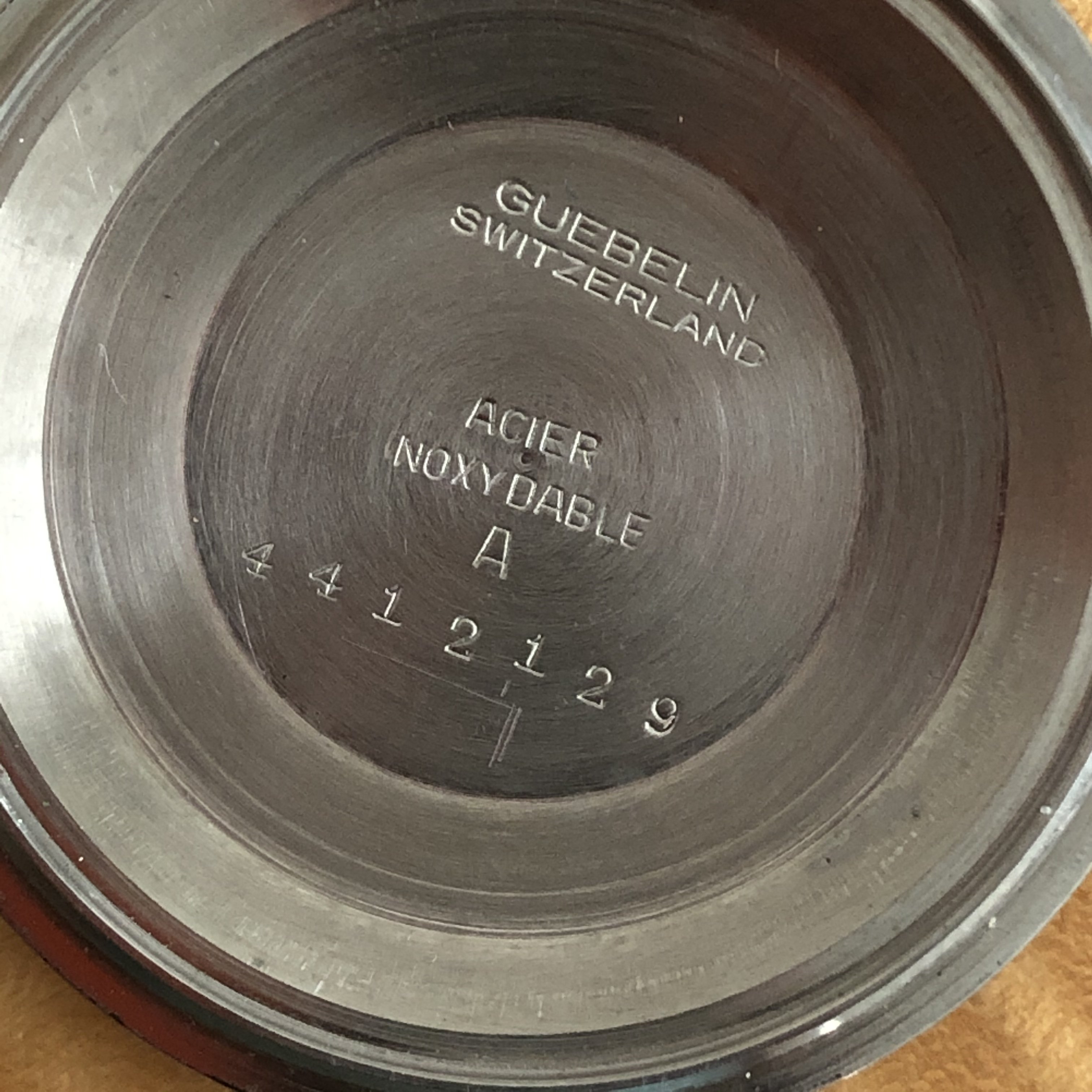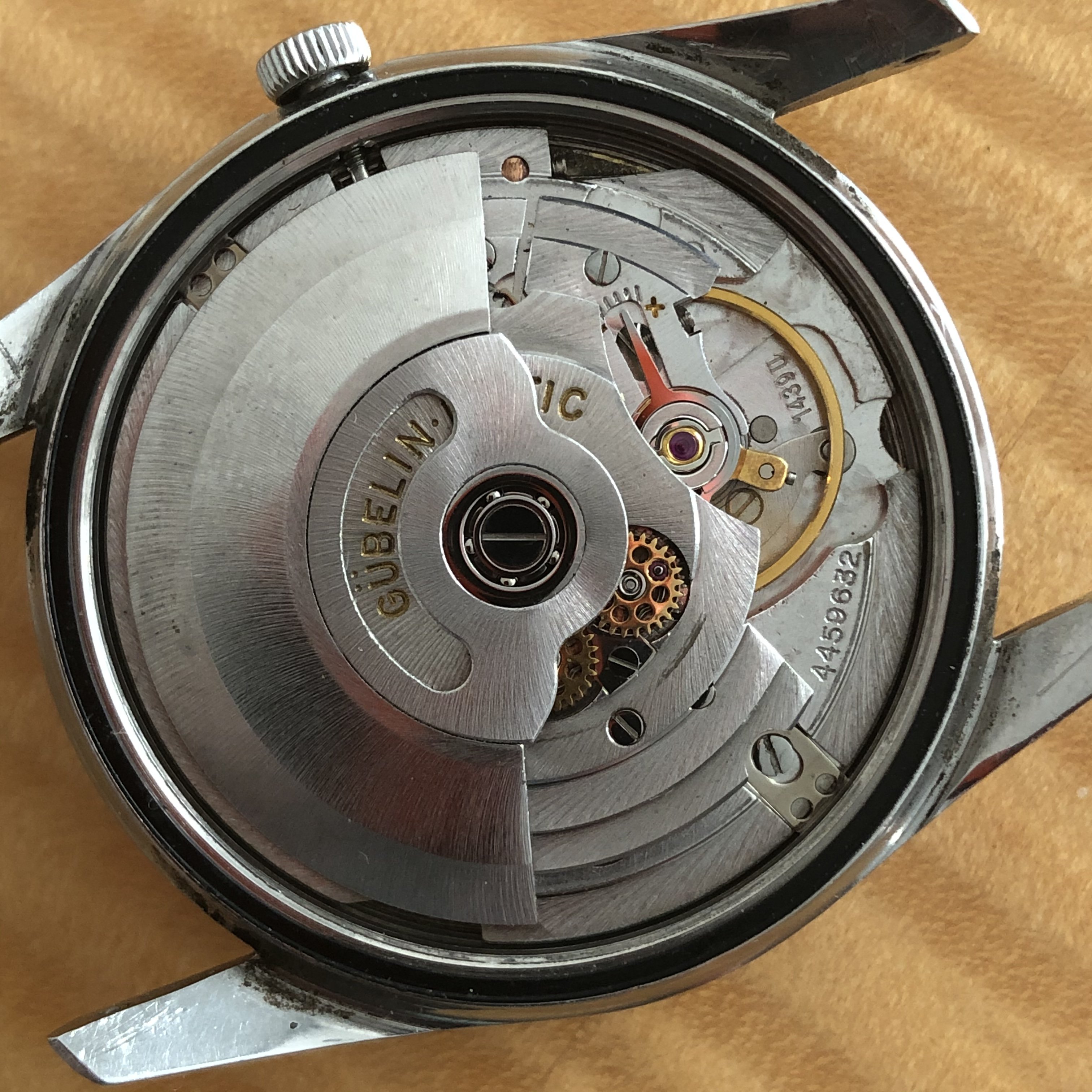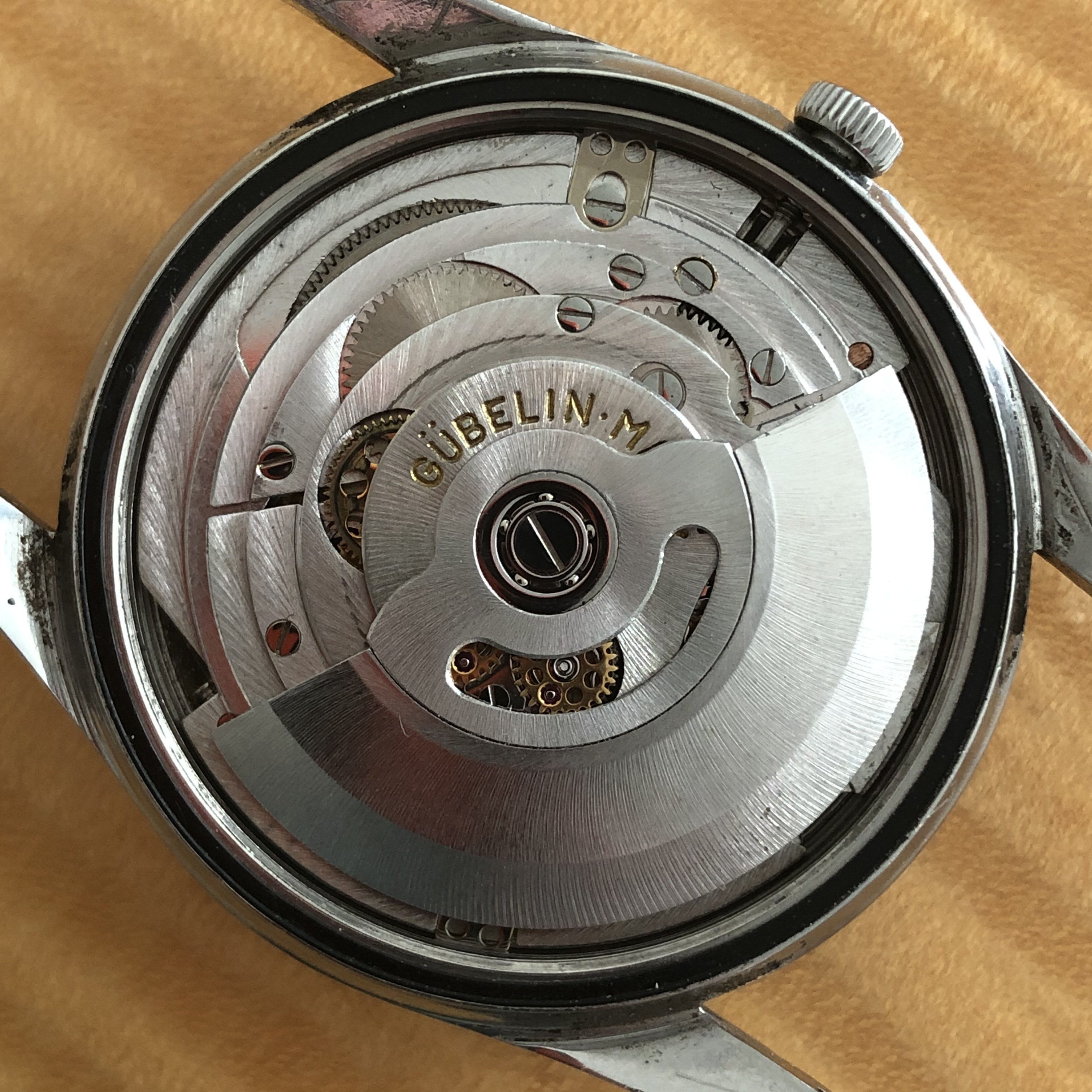 ·No backstory just a simple sale. Chronometer Gubelin automatic powered by the Eterna 1439U with quick set date. Pull crown out all the way to advance date one day at a time. Light wear to case and patinated dial with shows worse in the pictures than it actually is. No service history but runs well and keeps good time. Sorry no strap with one. I needed it for a Captain. Measures 34.7mm without crown. Please ask questions if necessary. Thanks to OF for the space.