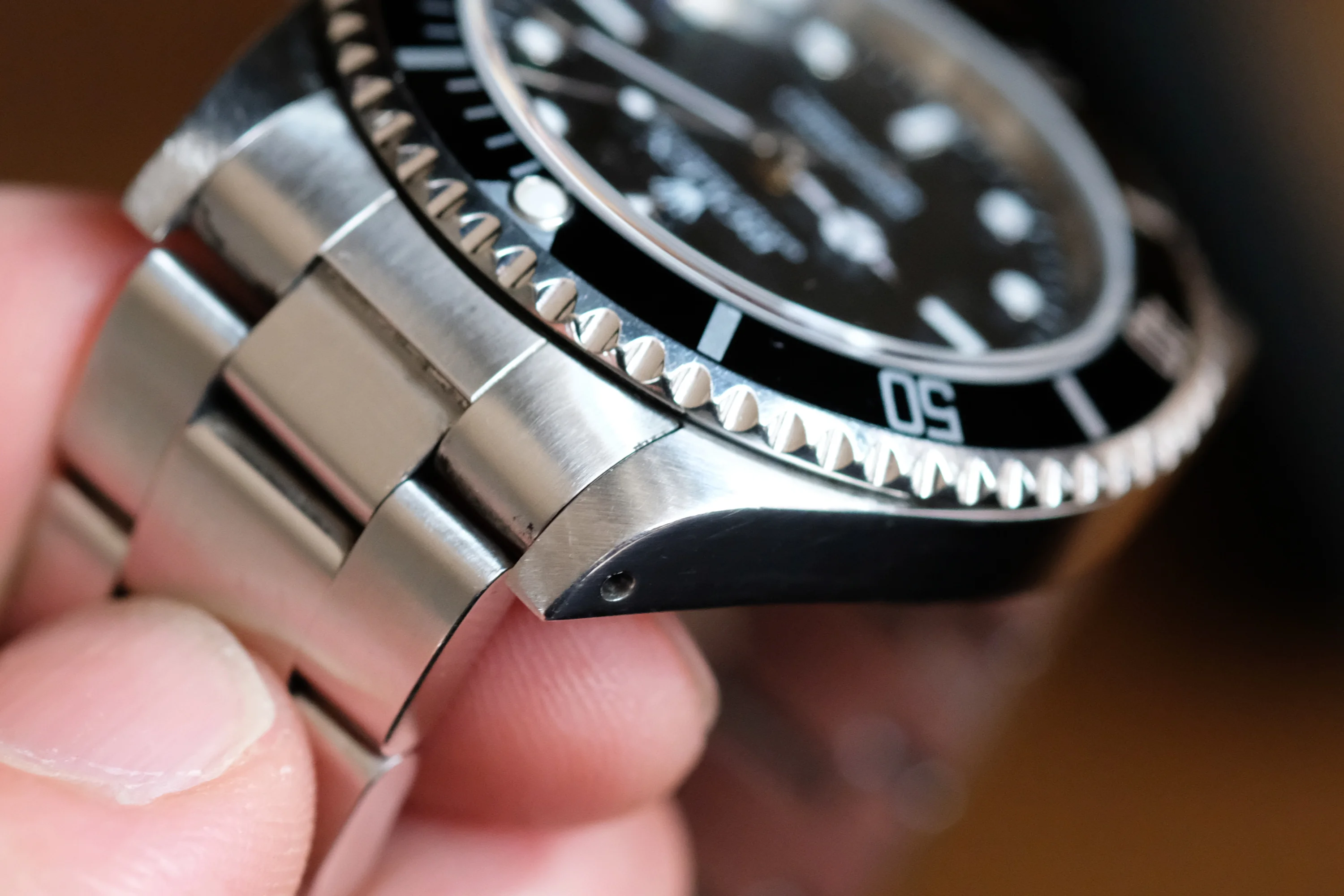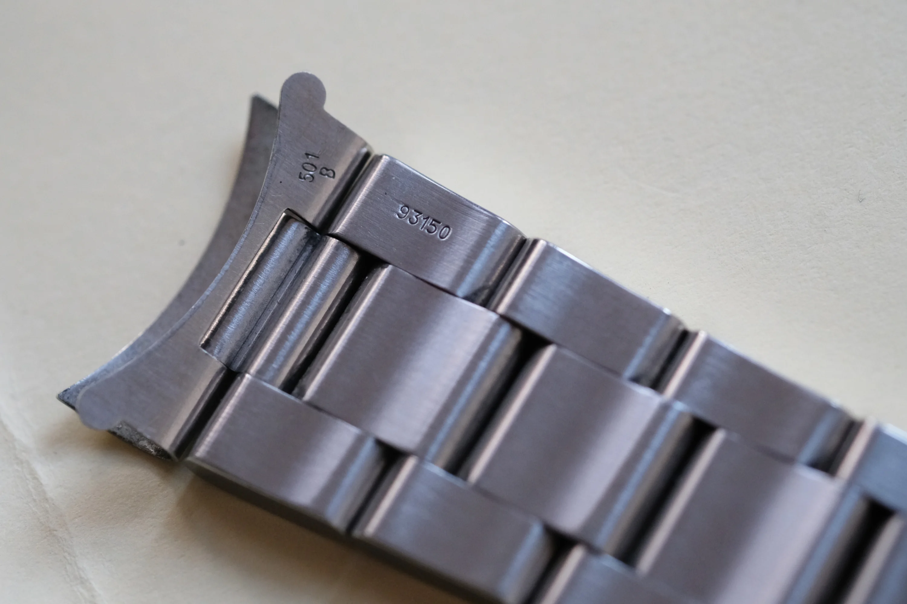 Correct A-serial for a 'Swiss Only' dial. The 93150/501b bracelet has an 'X' code, which is also 1999. It has 11 links and very little stretch as shown in pics. Thick case with serial/ref numbers clearly present. The original crown winds normally and the watch currently runs well, though service history is unknown.