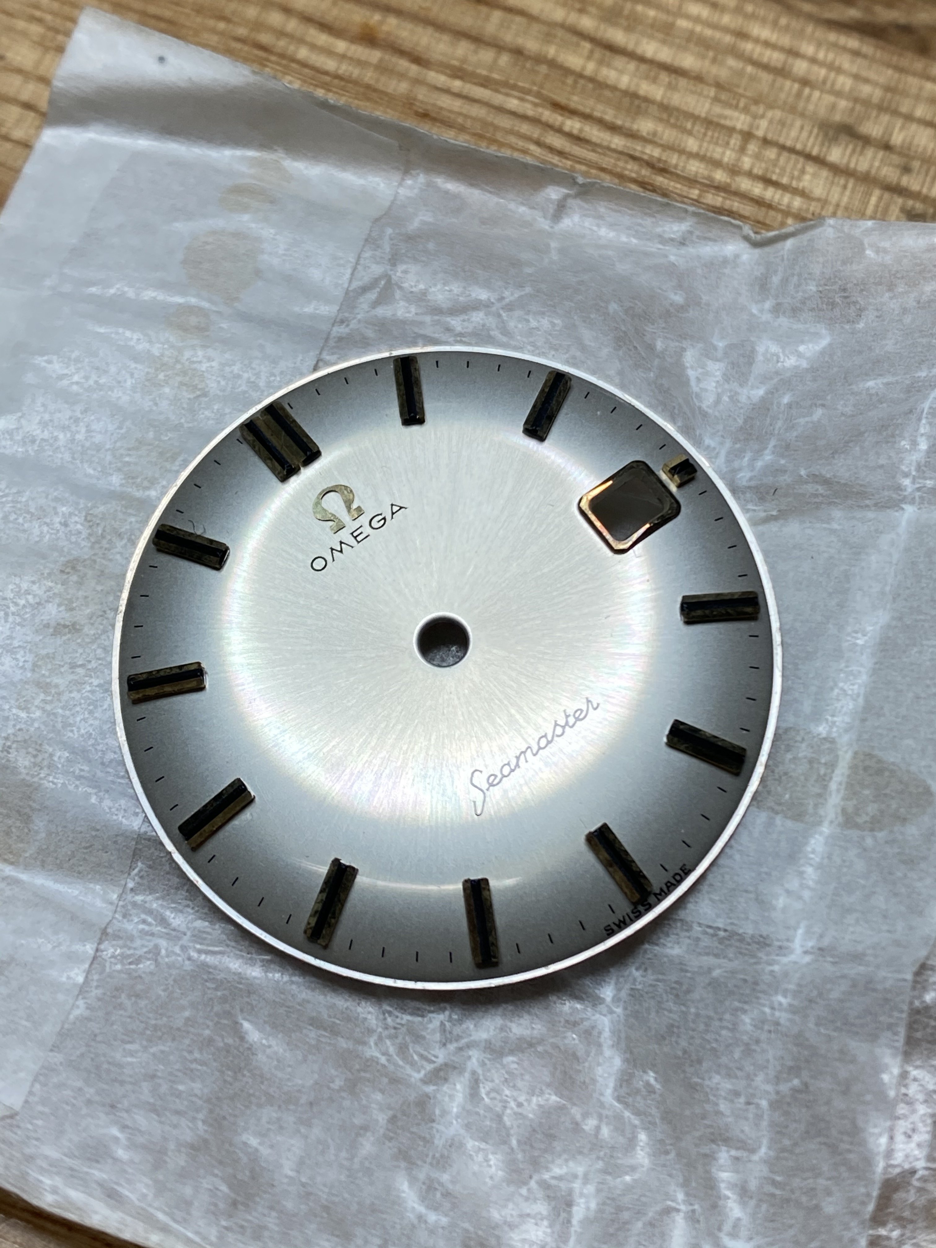 Posts 1,846 Likes 3,846 bags1971 ·Nov 4, 2020 For Sale NOS Omega Seamaster Dial Cal 600 series Gold markers Approx 29mm includes a set of NOS gold minute and hour hands From a retired watchmakers stash £40 + postage PP F&F Edited: Nov 4, 2020