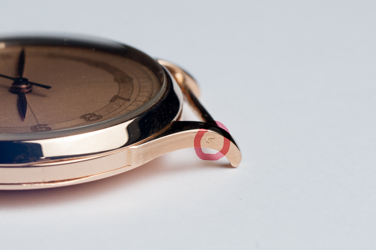 Case is in pink gold, 35 mm excluding crown