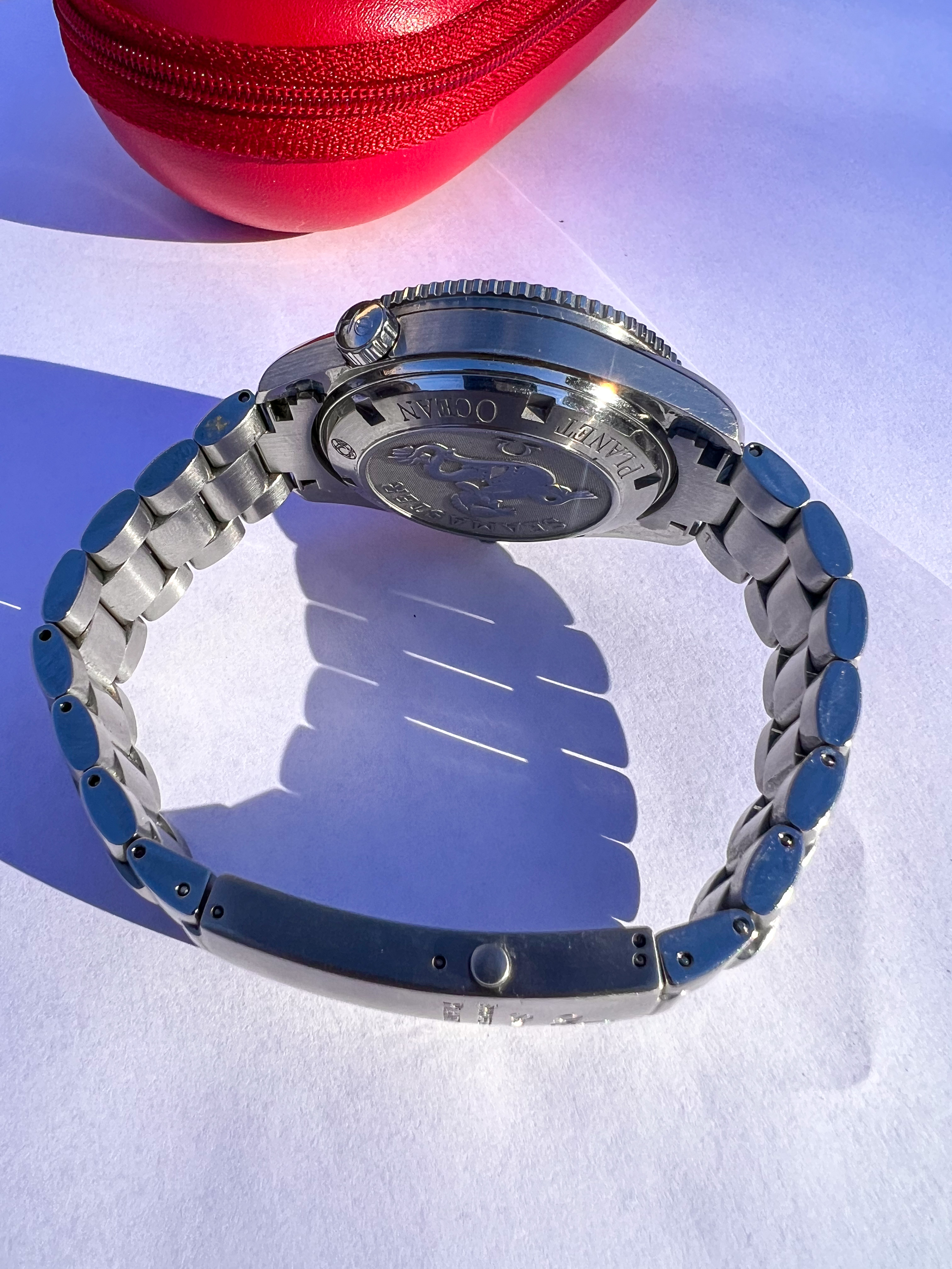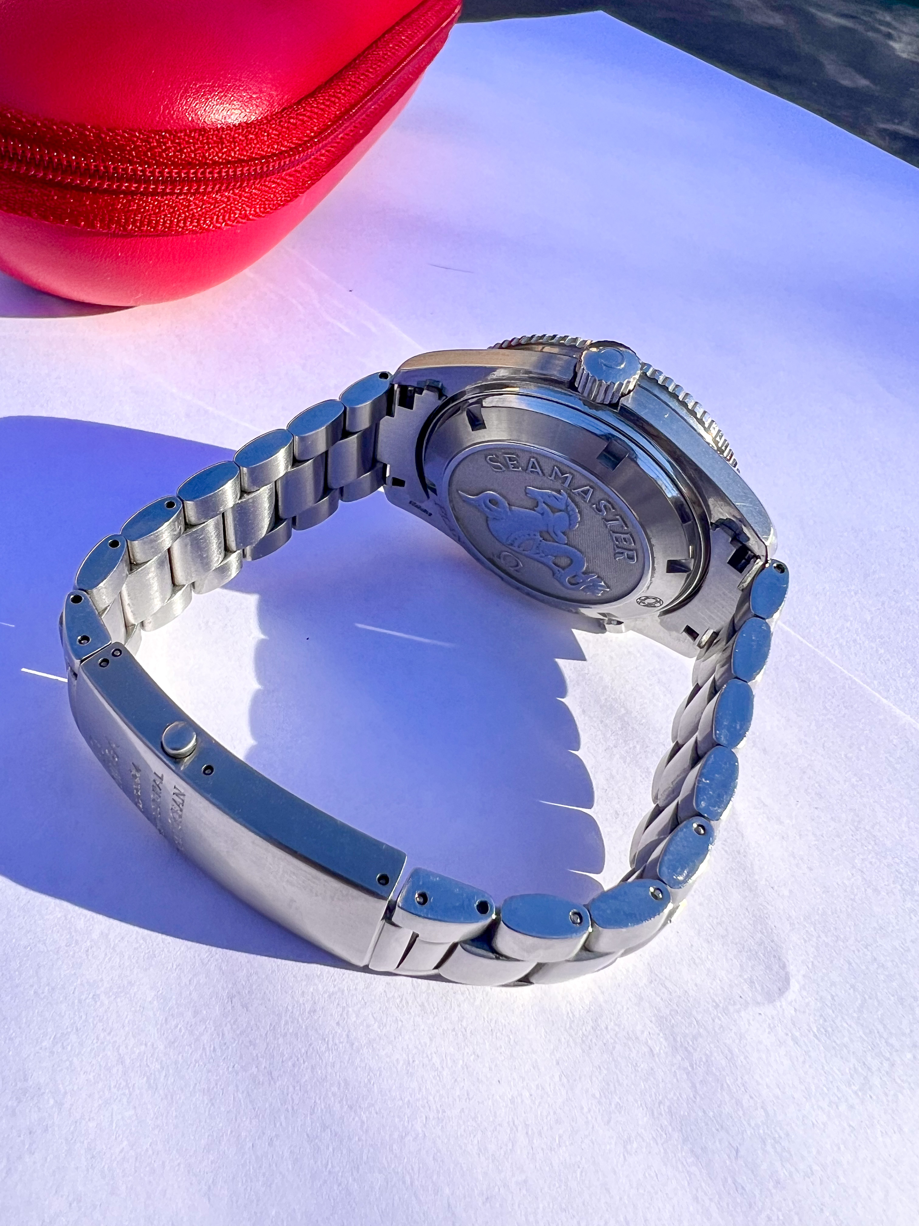 The watch comes with red Omega travel case.