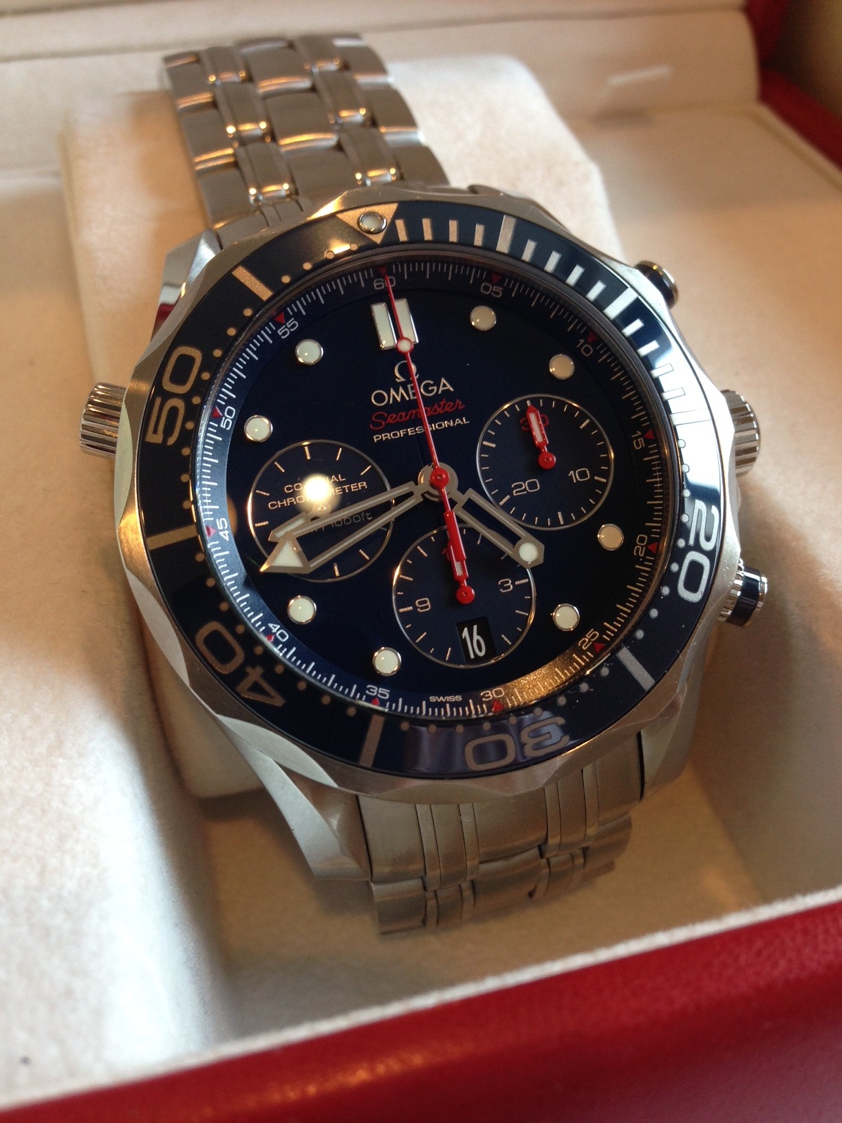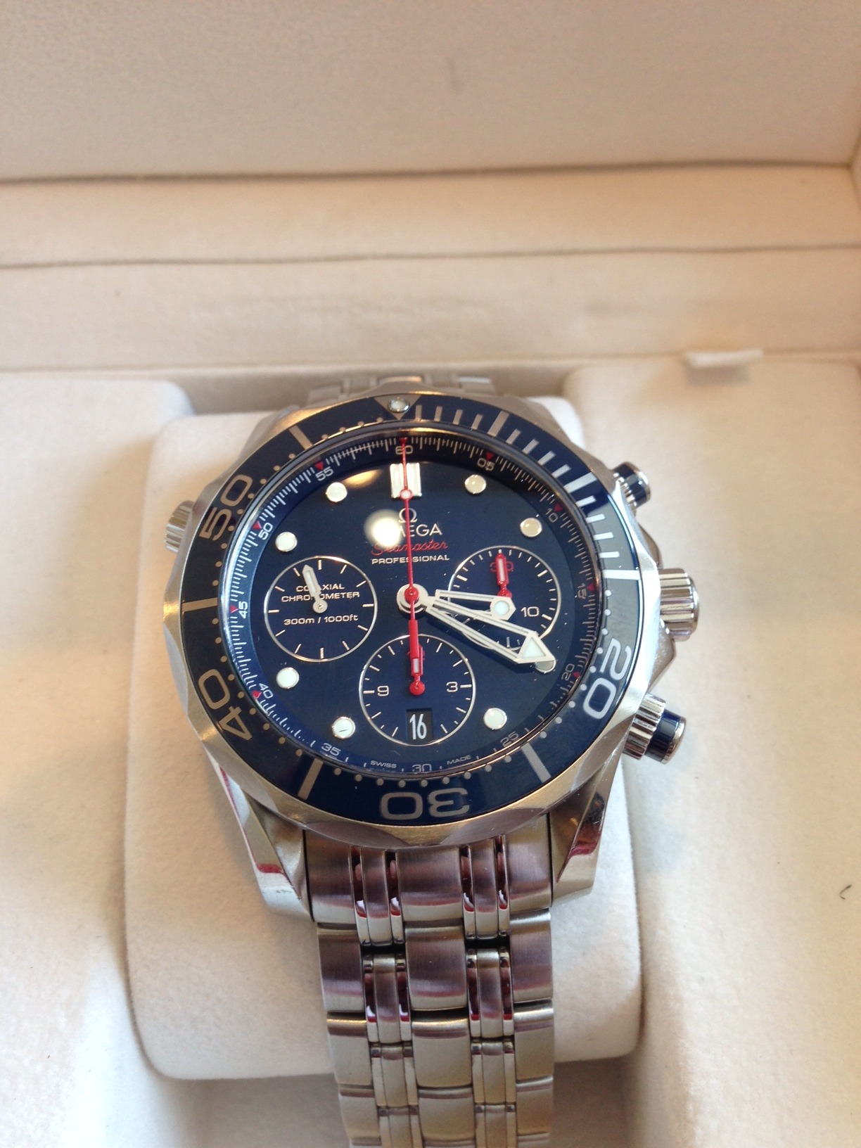 Posts 1,468 Likes 81 jblau ·Aug 5, 2014 Up for sale is the following. Brand- OMEGA Model- Sea master - Ref #21230445003001 Size-44mm Condition- Mint Box and papers- Yes all boxes, missing only the warranty card. Friend is a AD in CA and will warranty it for 2 years. Price 3,700 OBO