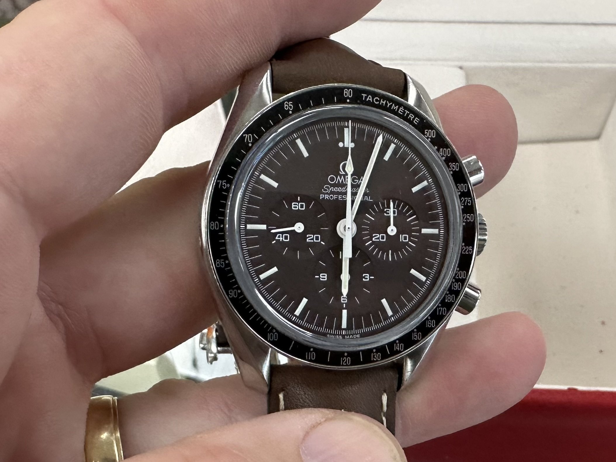 These chocolate Speedmaster are no longer produced, and their value is starting to escalate. Act now, and it can probably be in your hands before Christmas!