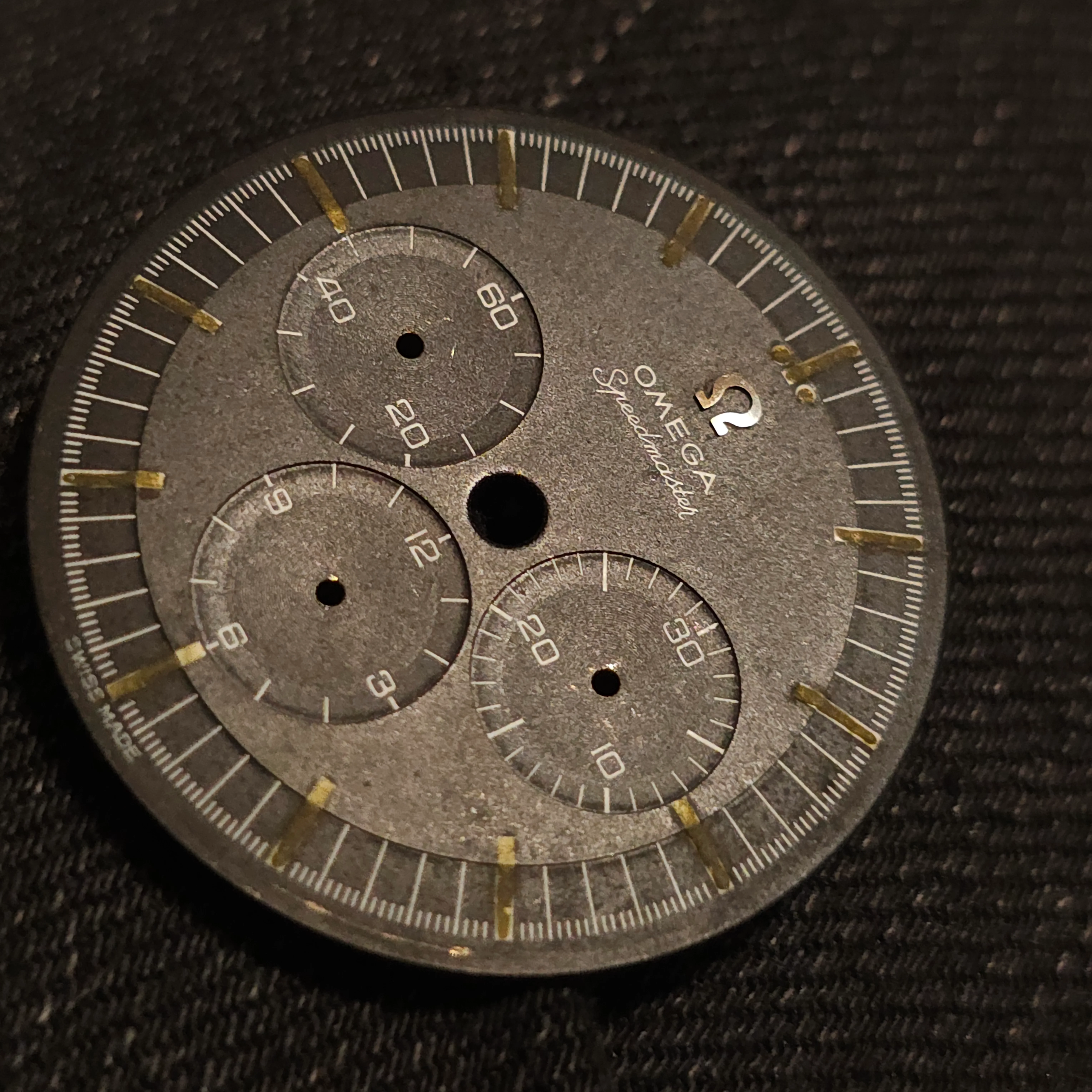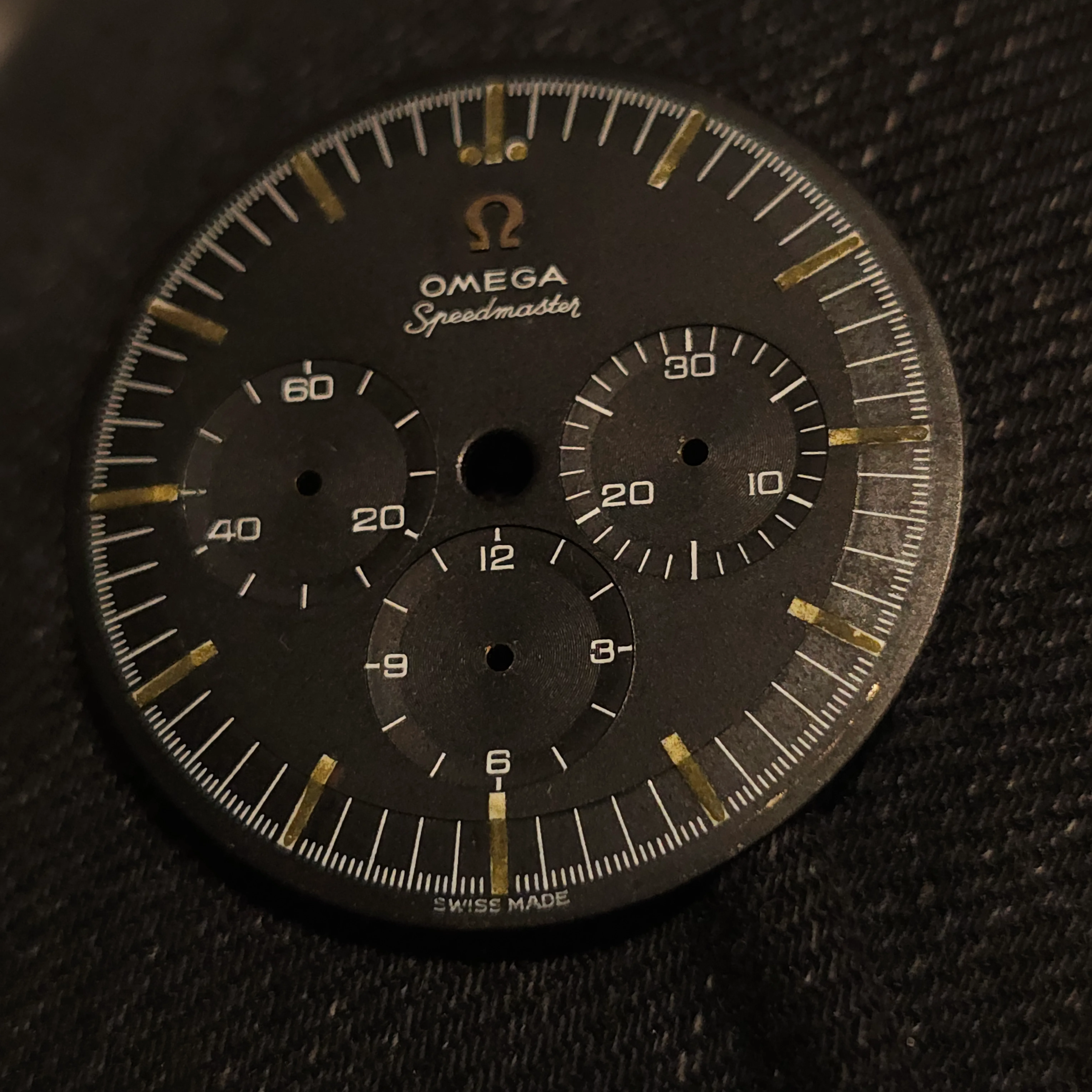 I am offering a rare Omega Speedmaster dial suitable for reference 2998 (3,4,5) and 105.002. Presumably from 1961-64. Excellent condition for its age. Dial has never been touched. Feet intact. It may be useful to have the dial cleaned by an experienced professional.