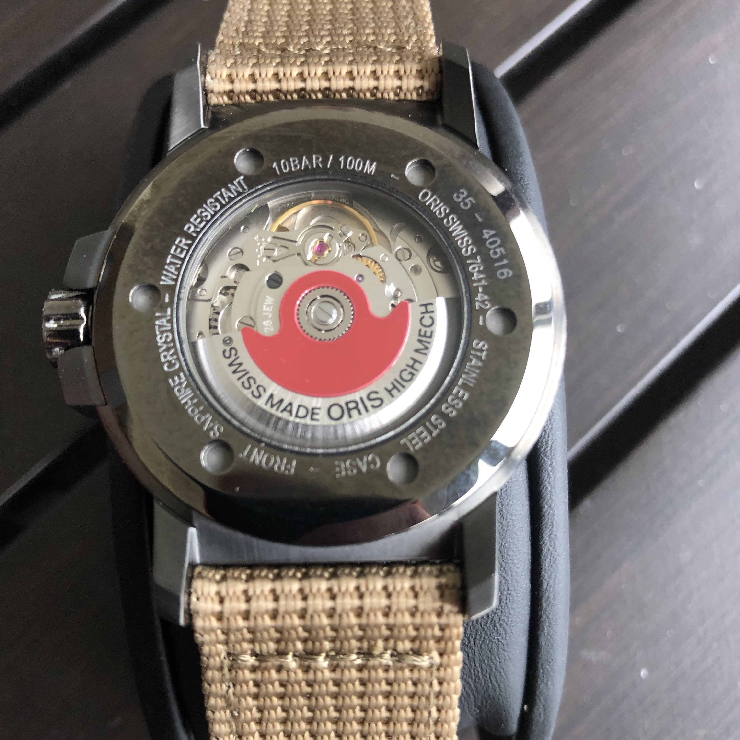 - Case Back: Stainless steel, grey PVD plated, screwed, see-through mineral glass
