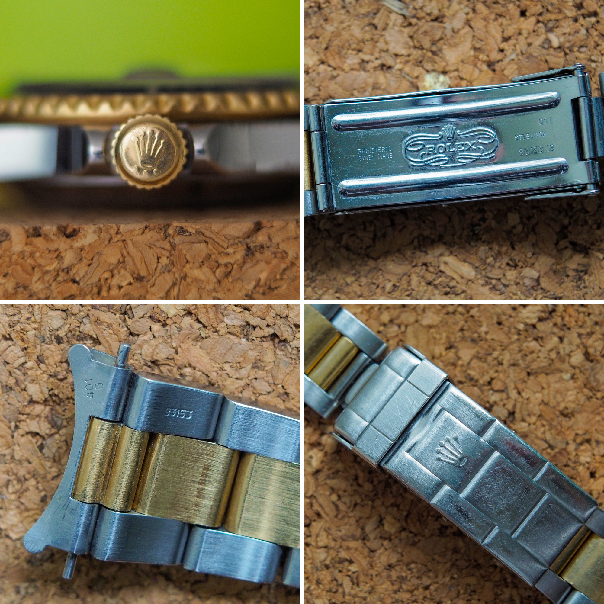 Bracelet: Two-tone Oyster bracelet 93153 with 401B end pieces. Diver’s extension. Correct clasp code stamped O11 (1990). Shows normal wear for its age. Very minimal stretch. 11 links.