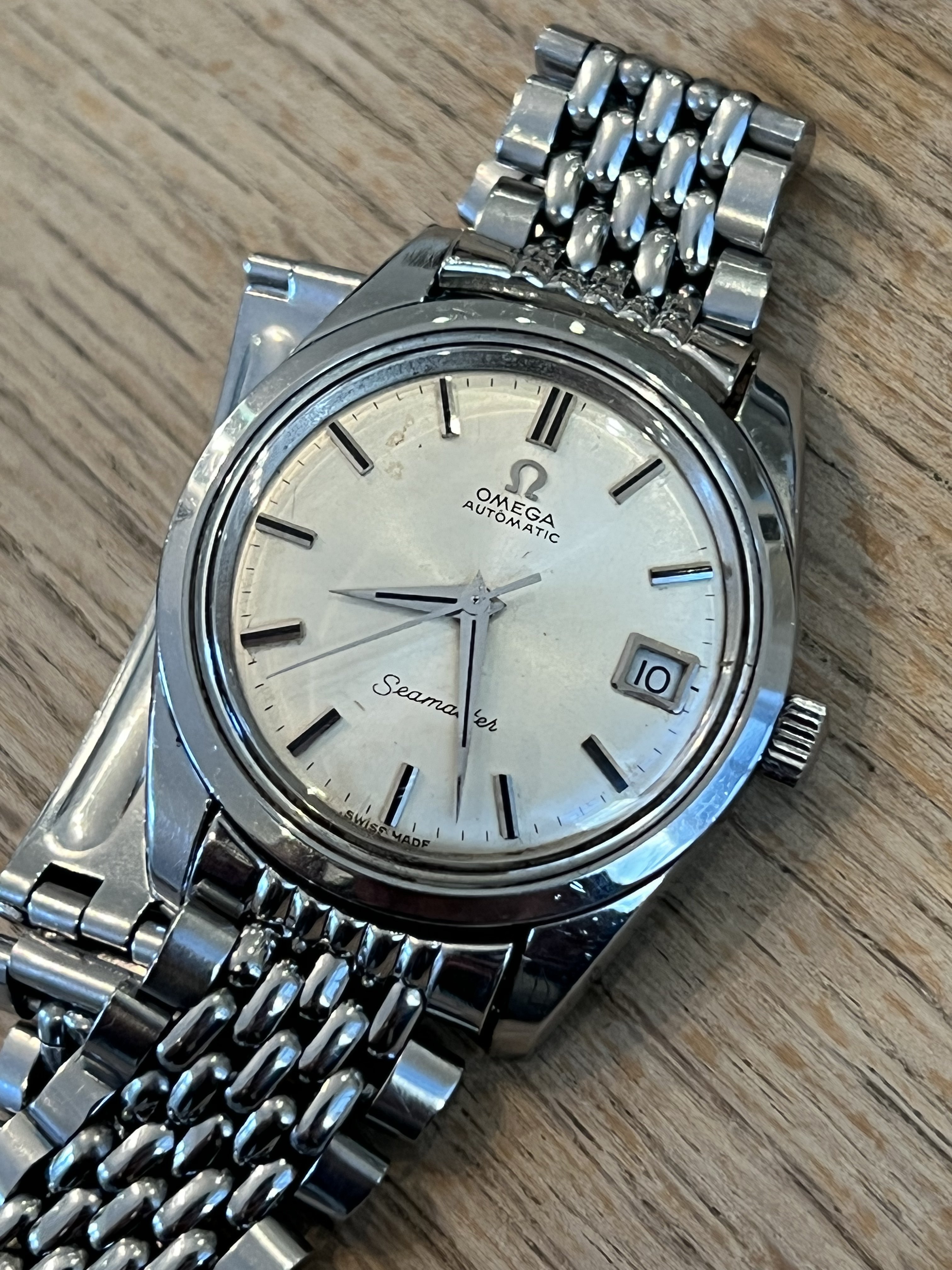 ·For sale is my vintage stainless Omega Seamaster on original beads of rice bracelet.