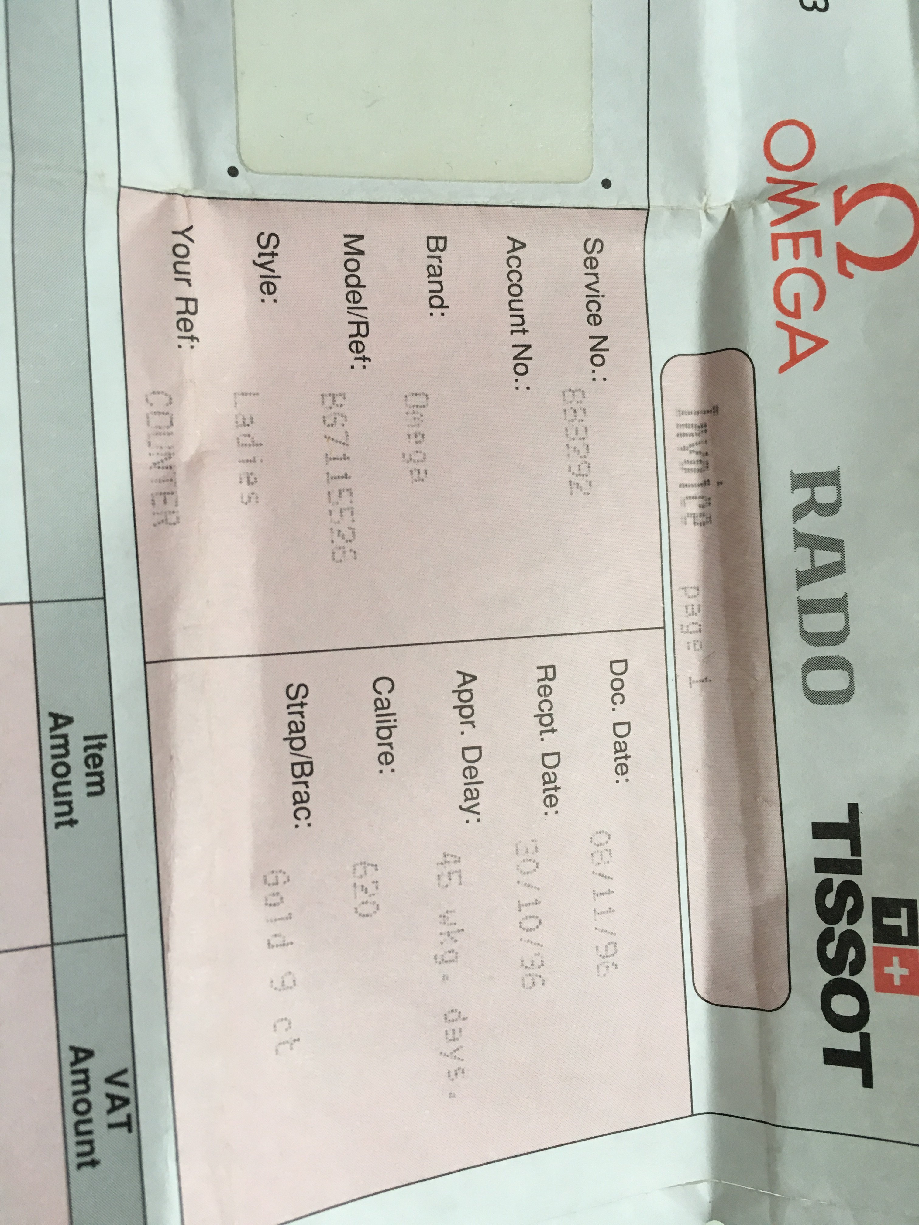 Very little is known about this watch except it was owned by my Grandmother. Following her passing we found it in the bottom of her handbag. It is truly in mint condition but we do not have the box or papers. It was serviced per receipt in 1996 and had not been worn since.