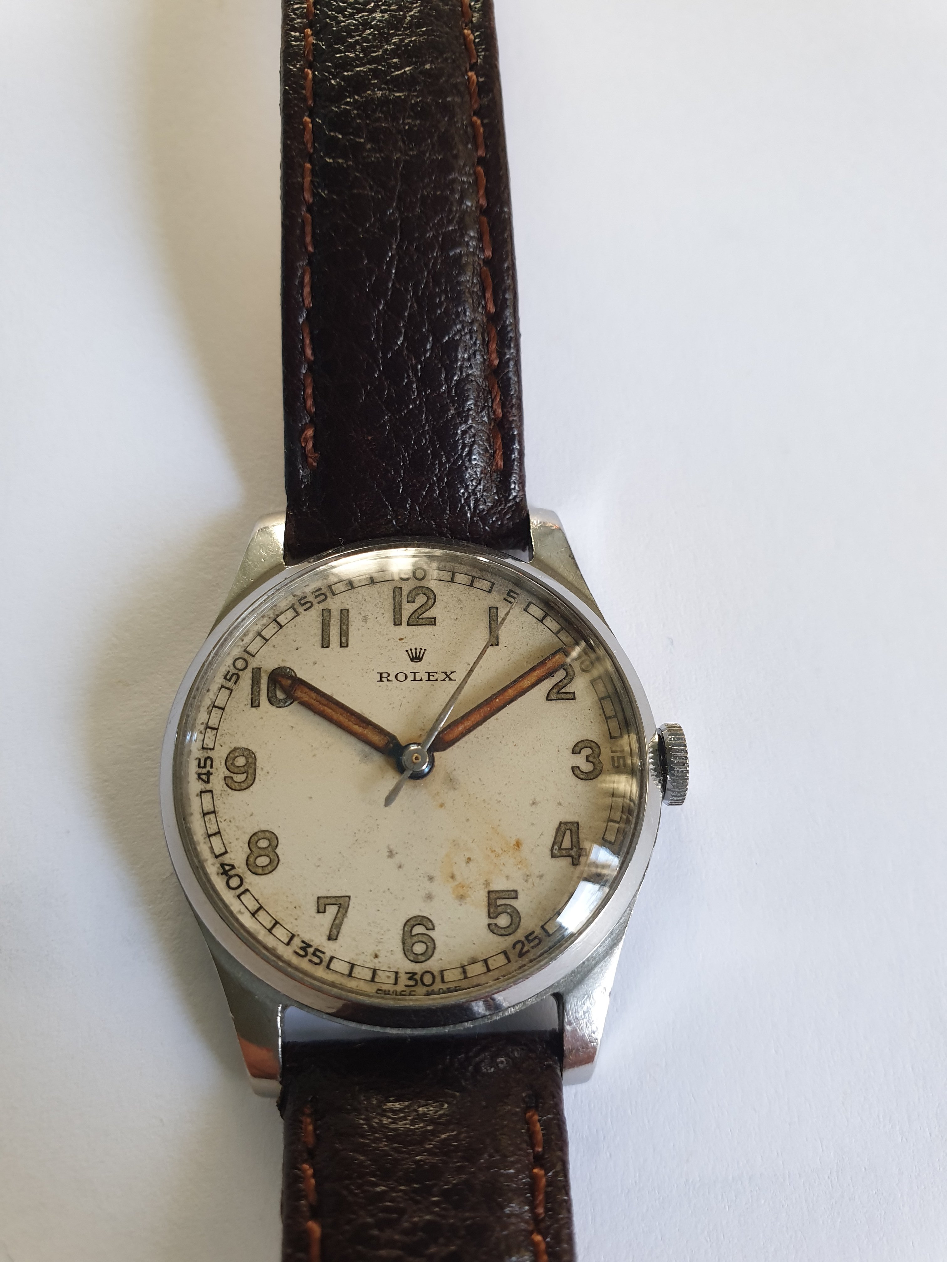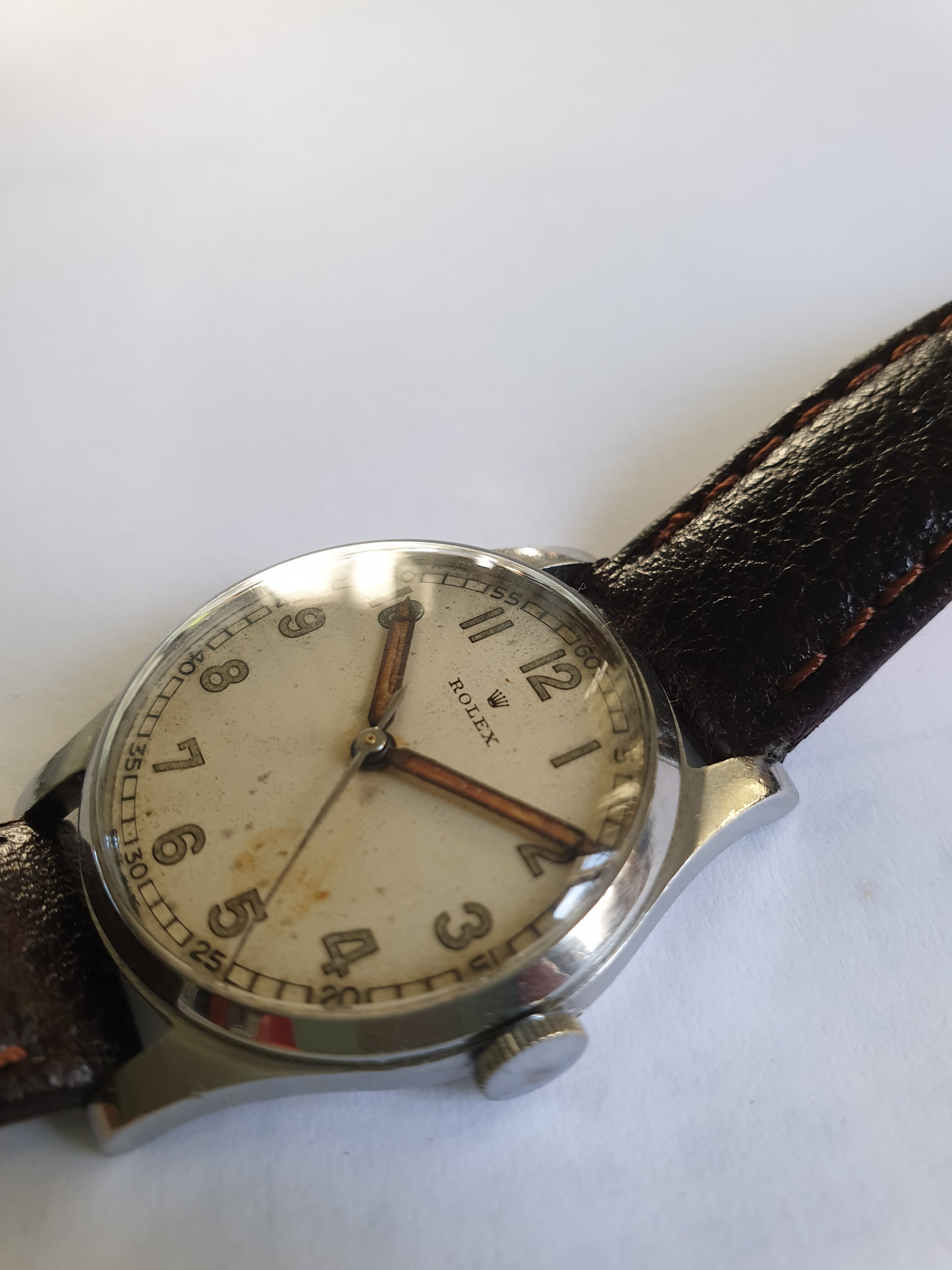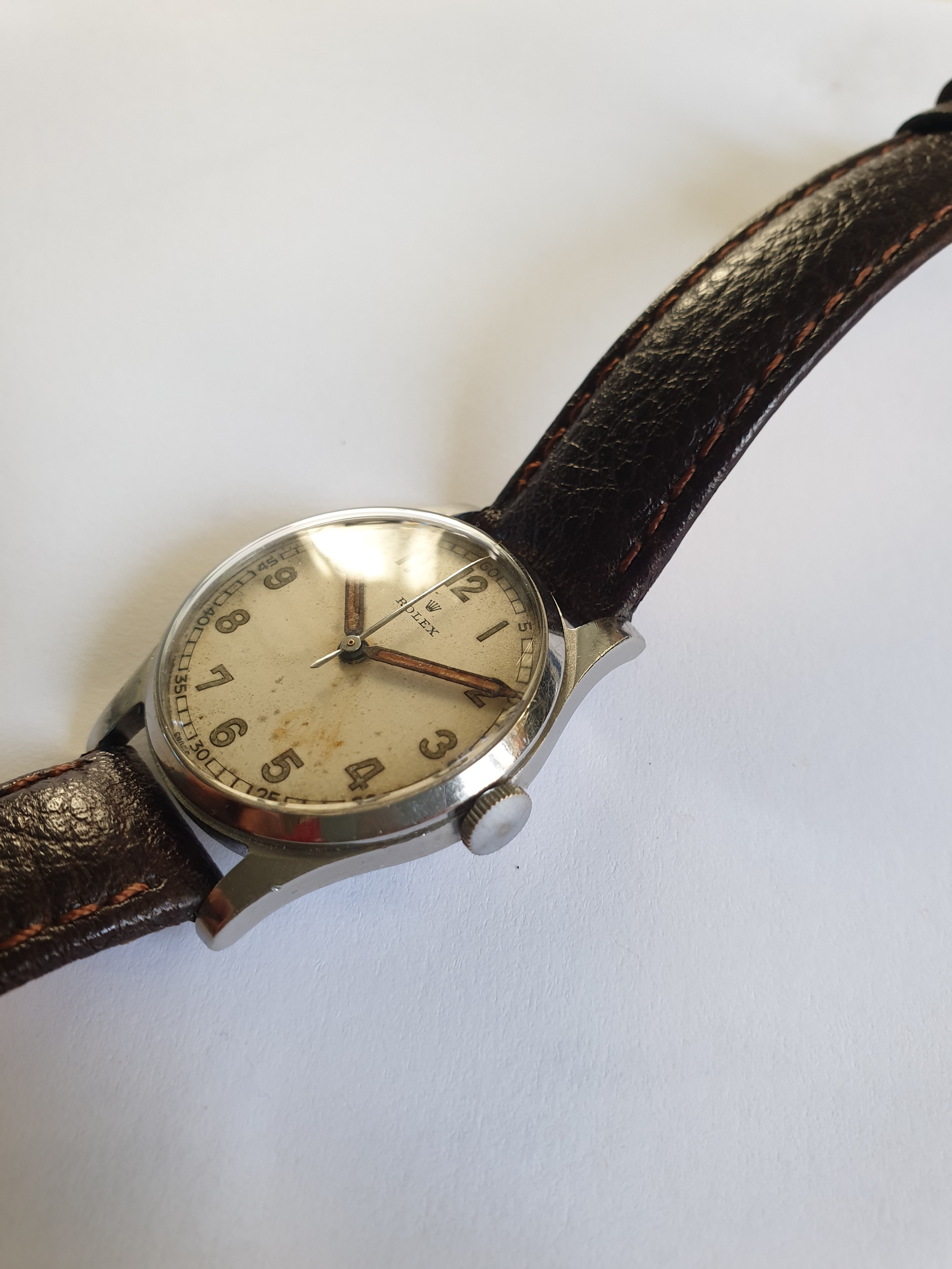 Vintage Rolex 1940's with a Chronometer movement in a stainless steel Dennison case ref 12325. The watch has patina and in original condition. Running perfectly well. The case is around 31 mm in diameter excluding the crown.