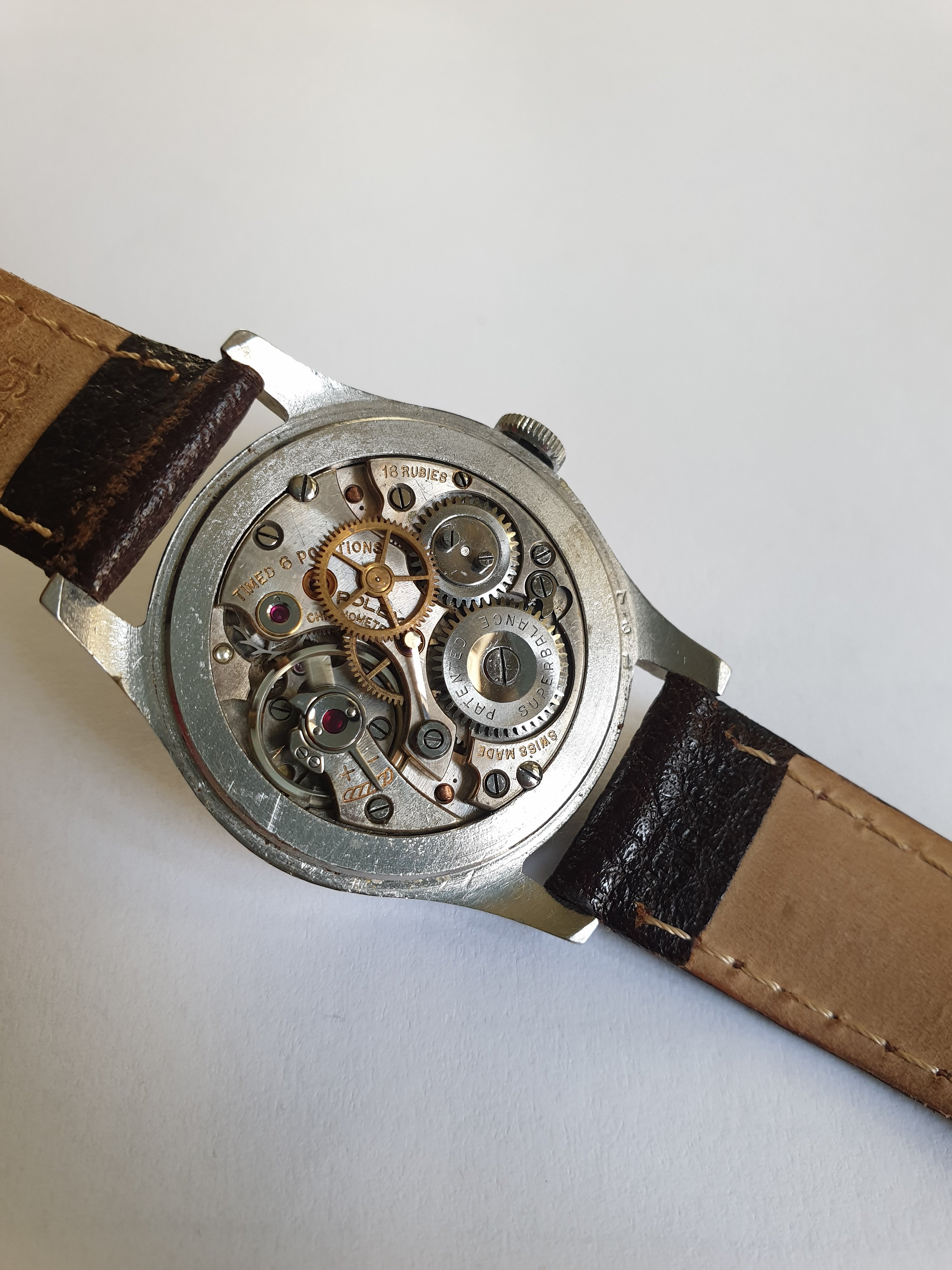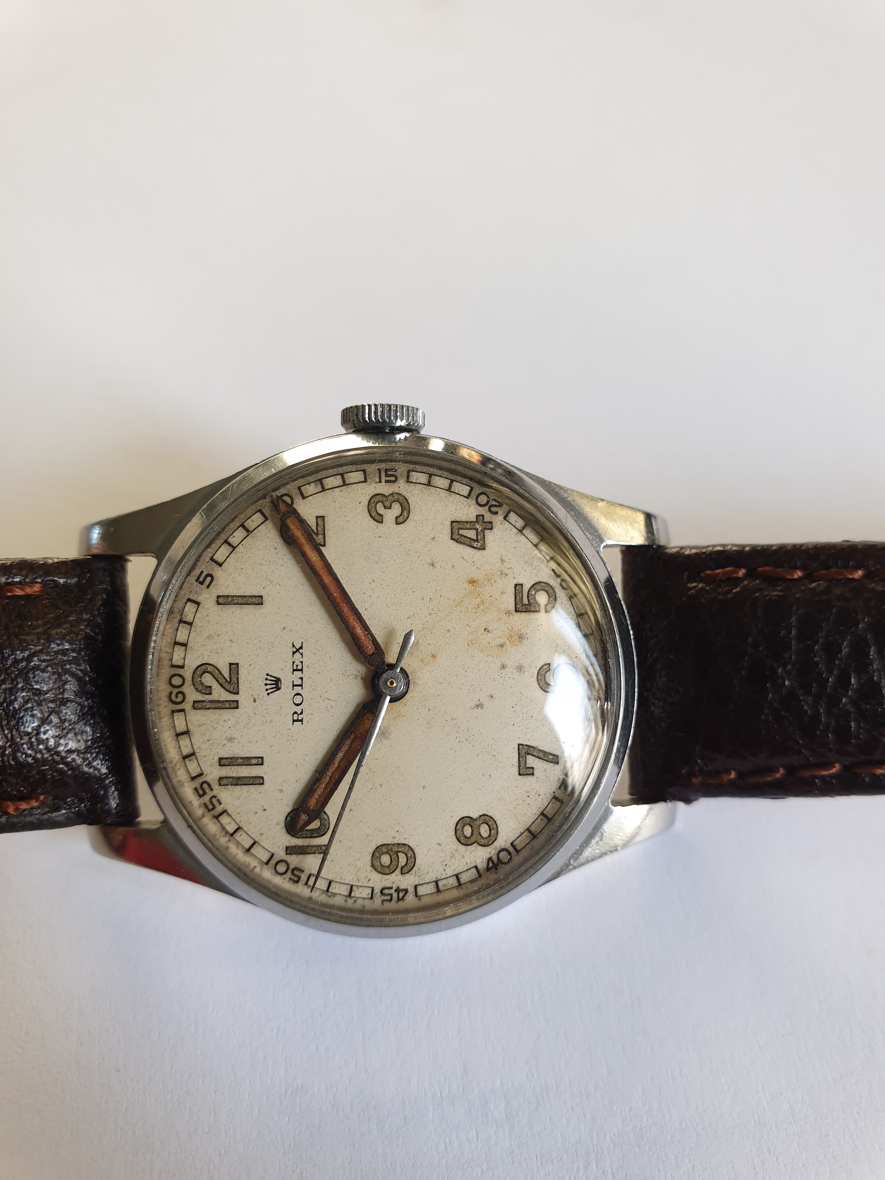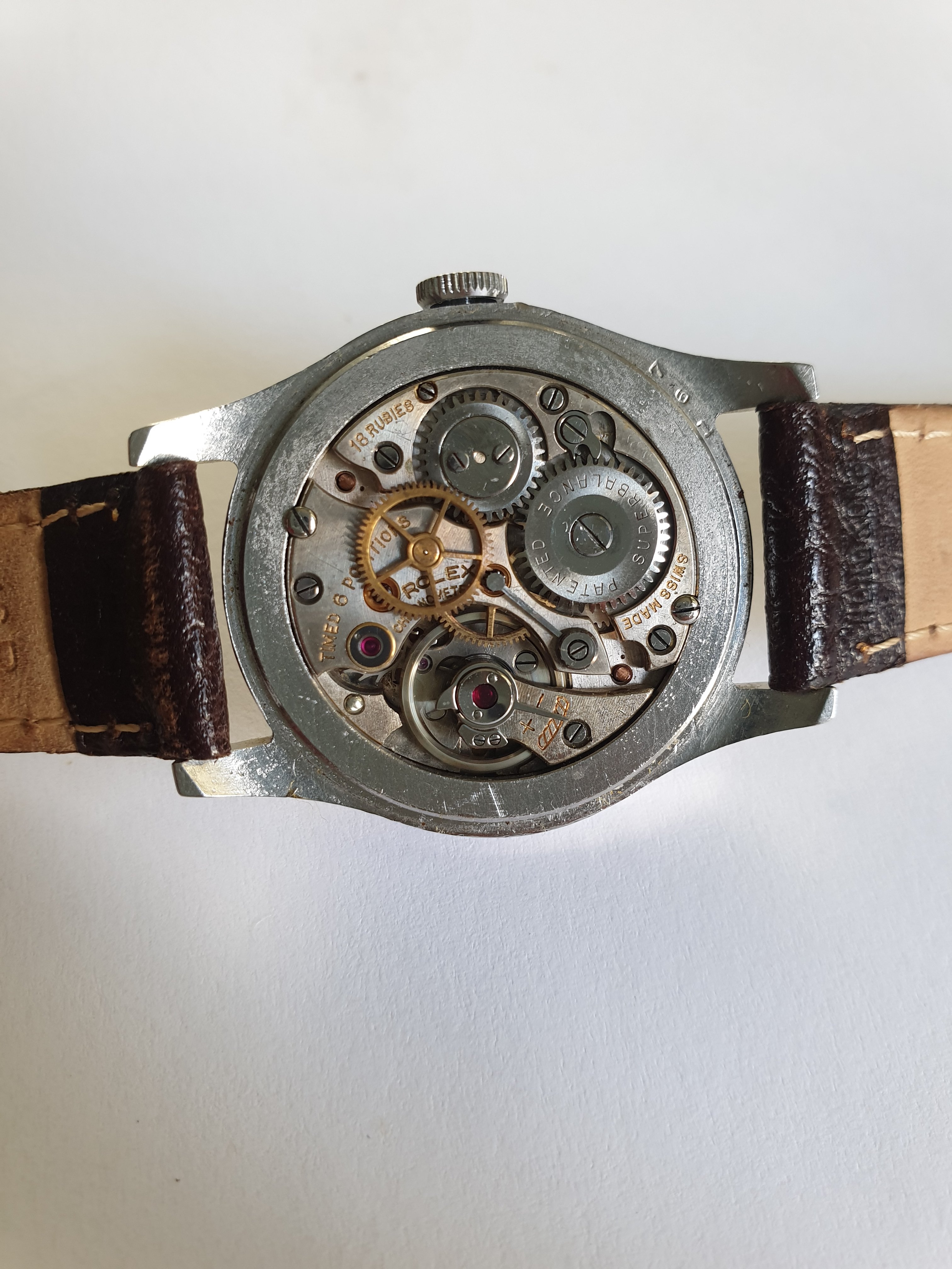 Vintage Rolex 1940's with a Chronometer movement in a stainless steel Dennison case ref 12325. The watch has patina and in original condition. Running perfectly well. The case is around 31 mm in diameter excluding the crown.