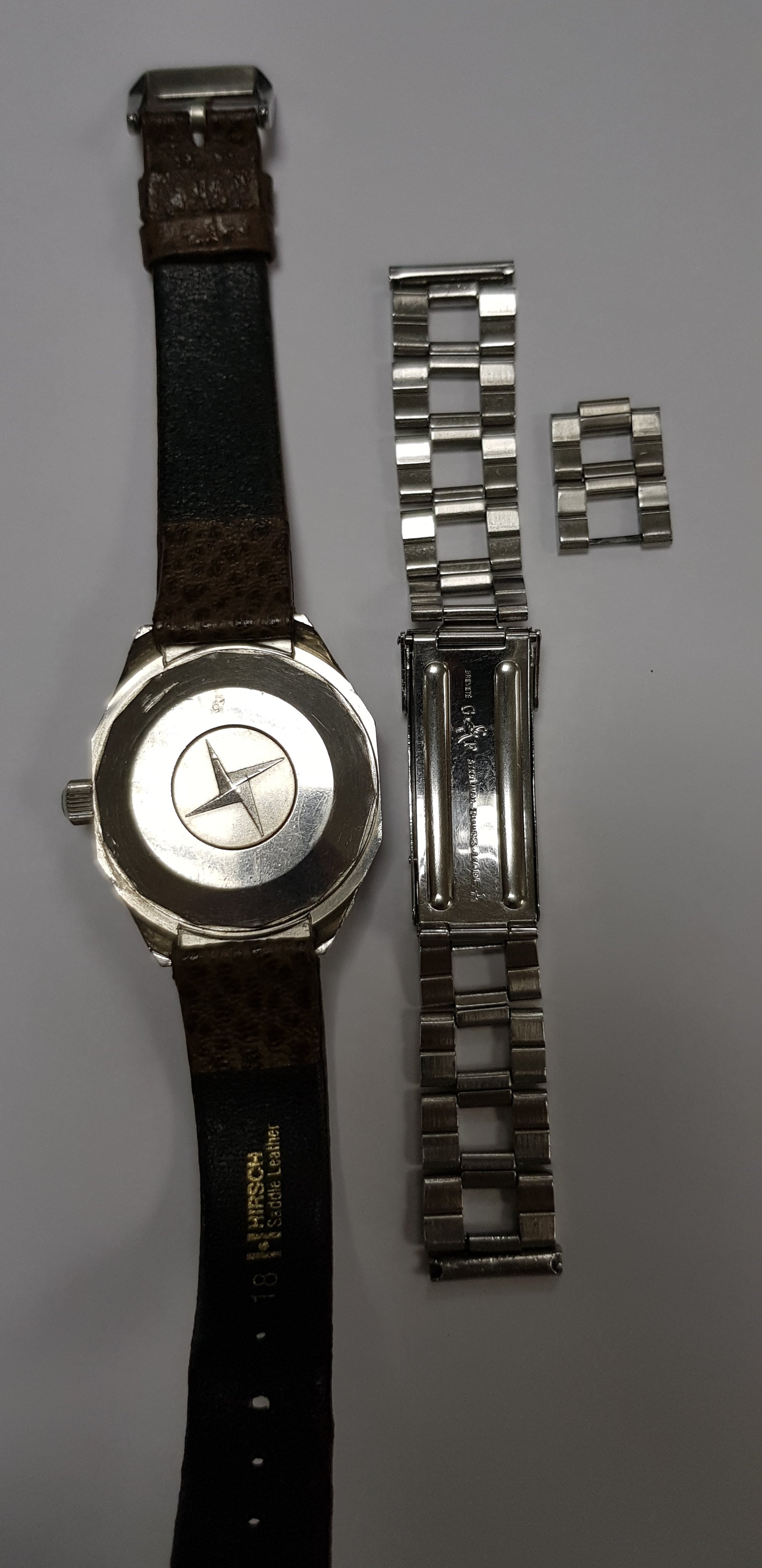 Strap: Gay Freres ladder bracelet stamped 1/71, aftermarket endlinks + a Hisch strap