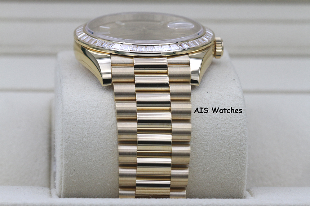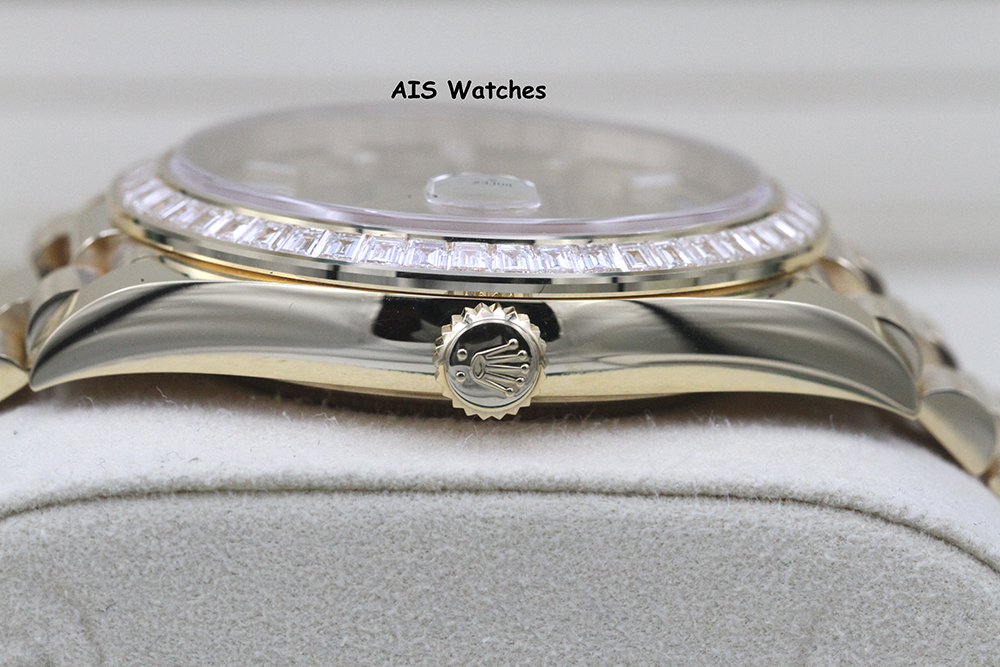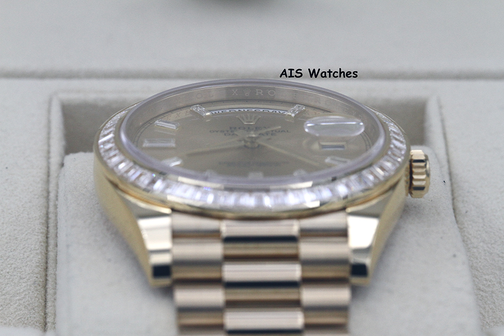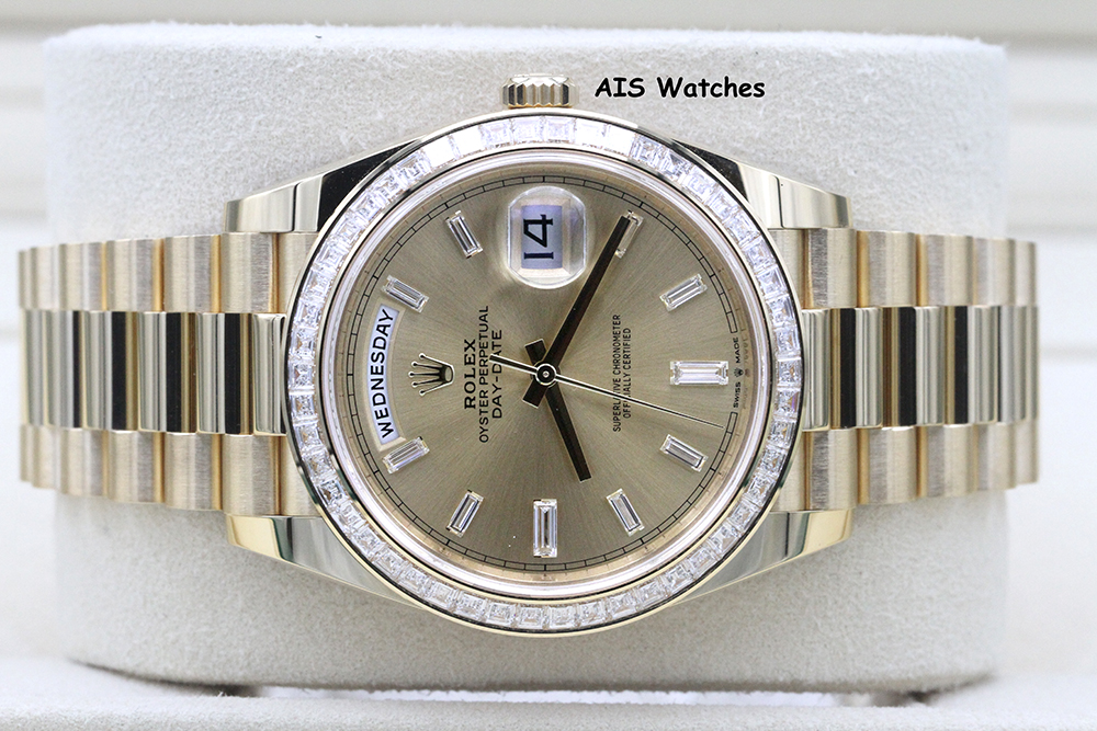 ** BNIB Rolex 228398 TBR DayDate 40MM DD40 Yellow Gold Champagne Baguette Diamond Dial and Bezel