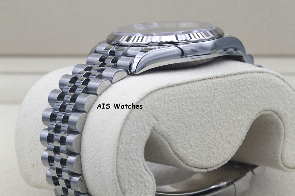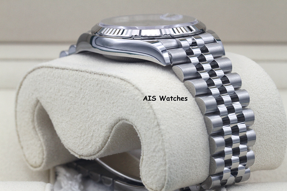 Up for sale is this Classic BNIB Rolex Datejust 36 MM 126234 on Jubilee Bracelet / Slate Grey Green Roman Wimbledon Dial Stainless Steel / 18K WG Fluted Bezel Box & Papers. The timepiece Unworn / Unsized / AD Took Stickers Off.