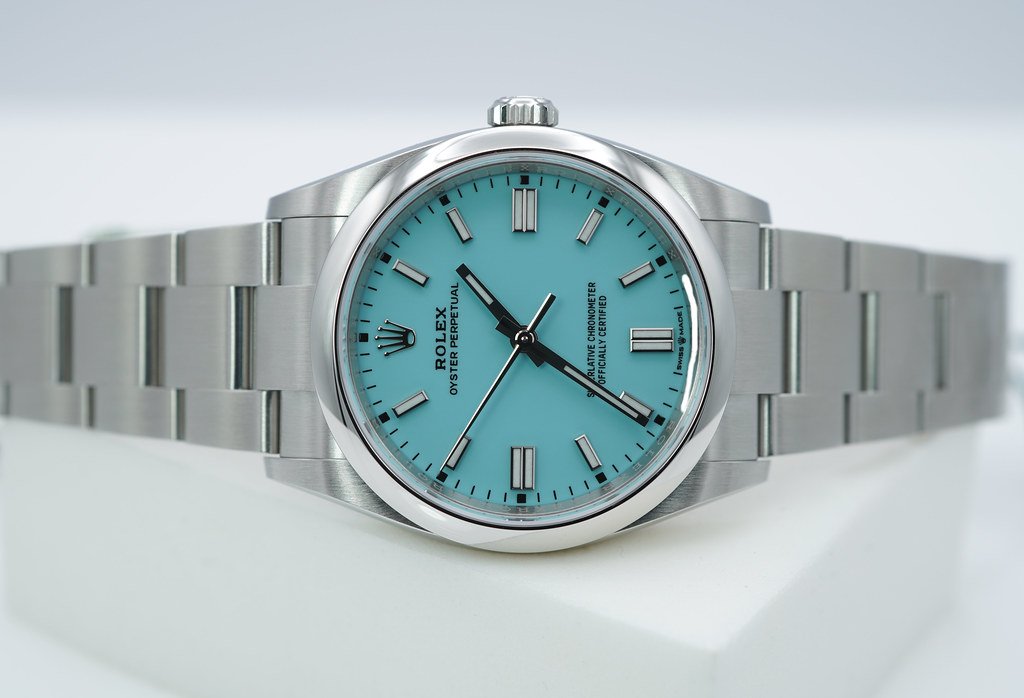 A Brand New In Box & Very Beautiful 2023 36mm Rolex 126000 Oyster Perpetual Stainless Steel with Beautiful Factory Turquoise Tiffany Blue Dial. Purchased from Rolex Authorized Dealer in 12.2023. Never Worn & Never Sized. Full Set & Under 5 Years Factory Warranty.