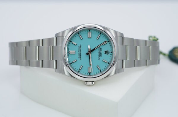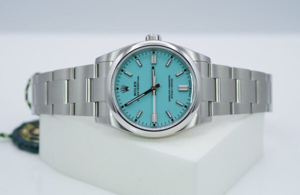 A Brand New In Box & Very Beautiful 2024 36mm Rolex 126000 Oyster Perpetual Stainless Steel with Beautiful Factory Turquoise Tiffany Blue Dial. Purchased from Rolex Authorized Dealer in 03.2024. Never Worn & Never Sized. Full Set & Under 5 Years Factory Warranty.