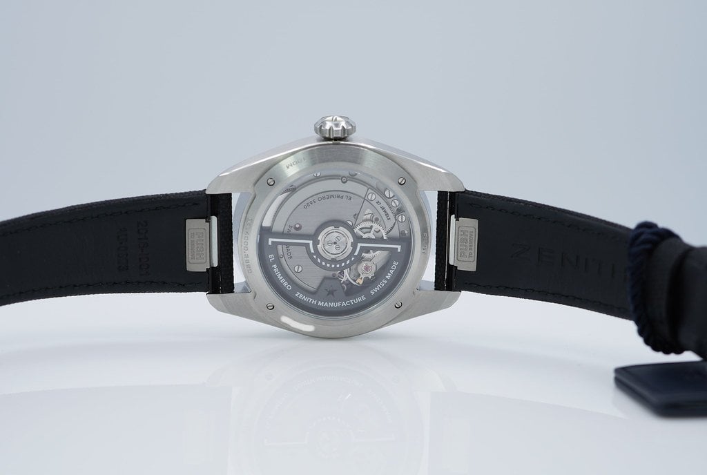 Complete Packages/Set (Triple Boxes, hangtag, polishing cloth), & Complete Manual/Papers with Zenith Warranty Card has Zenith USA AD’s Name Printed & Dated 02.2024. The Watch is Under Factory Warranty.
