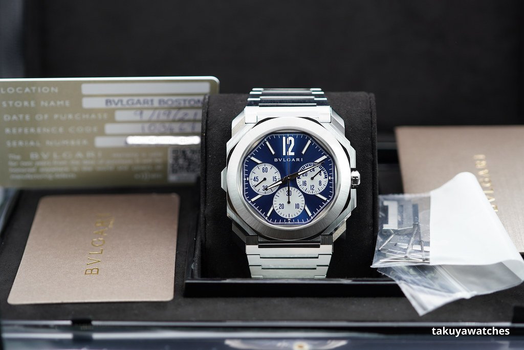 ·Bvlgari OCTO FINISSIMO CHRONOGRAPH GMT BLUE DIAL STAINLESS STEEL 2021 FULL SET