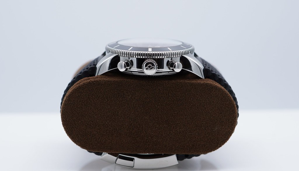 An Excellent Condition & Very Beautiful 44mm Breitling AB0162 SuperOcean Heritage B01 Chronograph, Stainless Steel Case with Black Ceramic Bezel and Blue Dial. Automatic Breitling Caliber B01 Chronograph Movement with Power Reserve Up To 70 Hours. Purchased from Breitling USA Authorized Dealer in 11.2019. Watch running perfect with Non Issues. Full Set & Under 5 Years Factory Warranty.